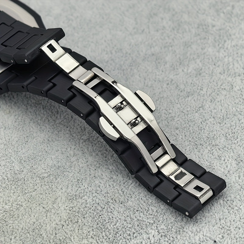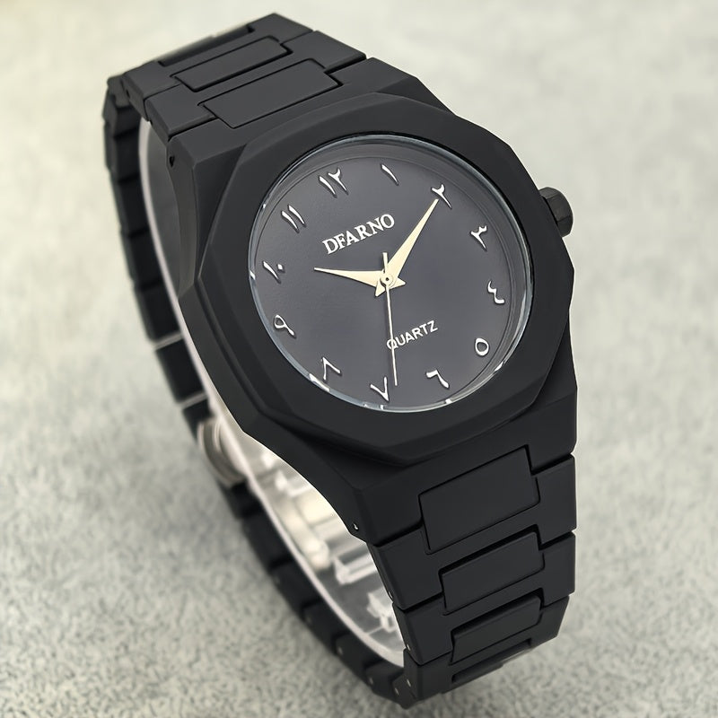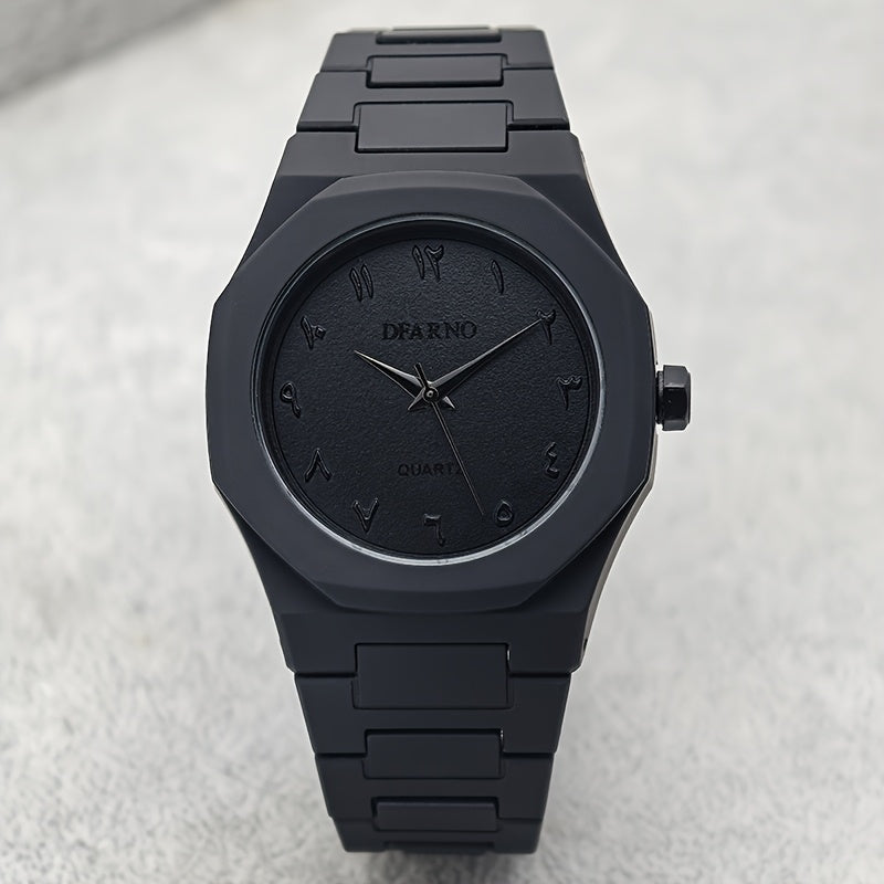 Men's Minimalist Quartz Watch with Black Arabic Dial & Polygonal Design - Durable Silicone Strap, Battery-Powered, Comfort Fit for Casual & Formal Wear - Perfect Holiday Gift for Father’s Day, Graduation, Independence Day,