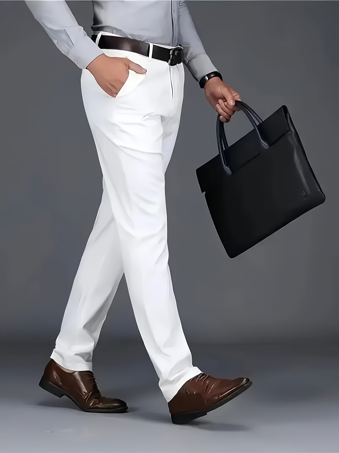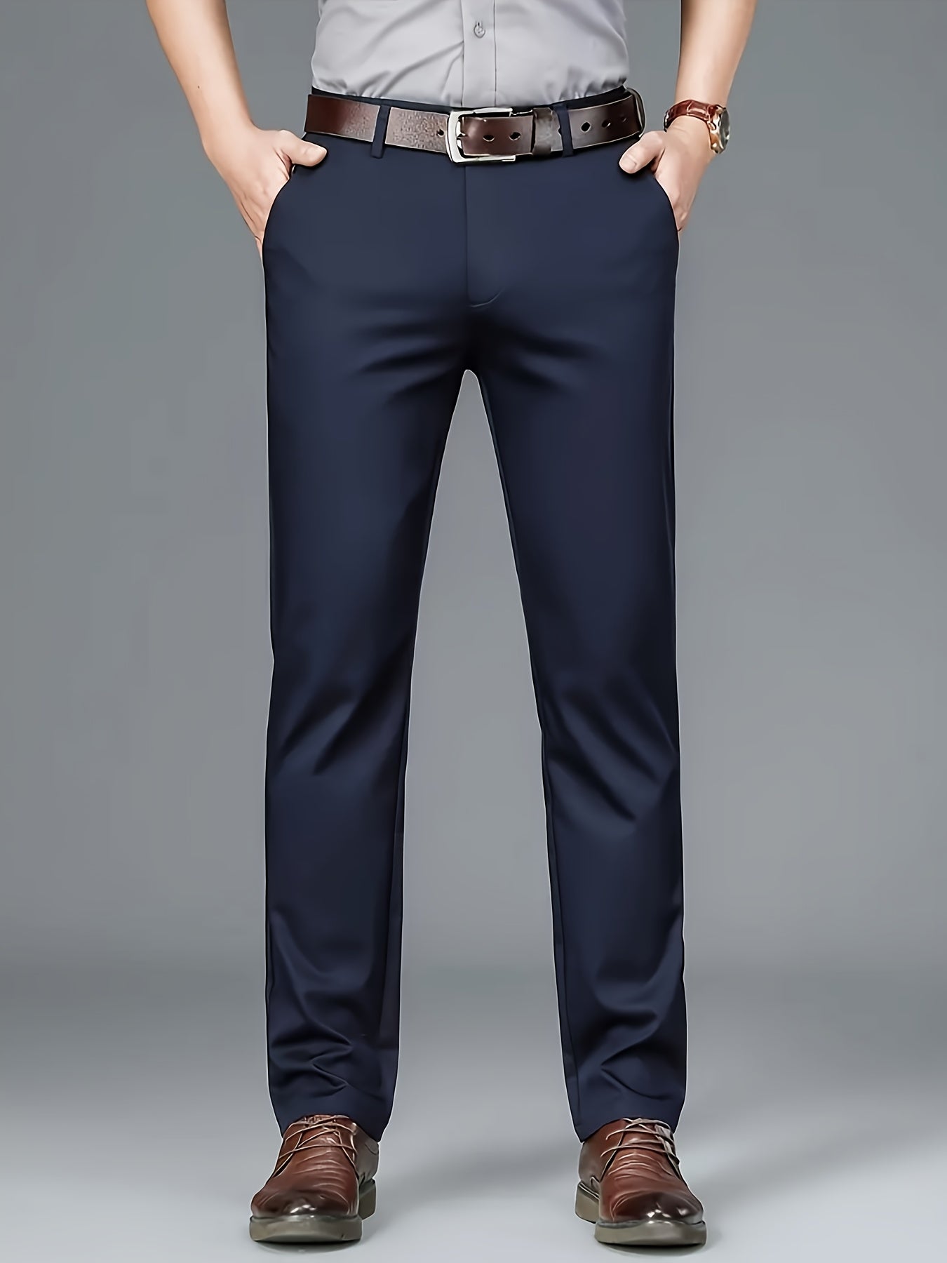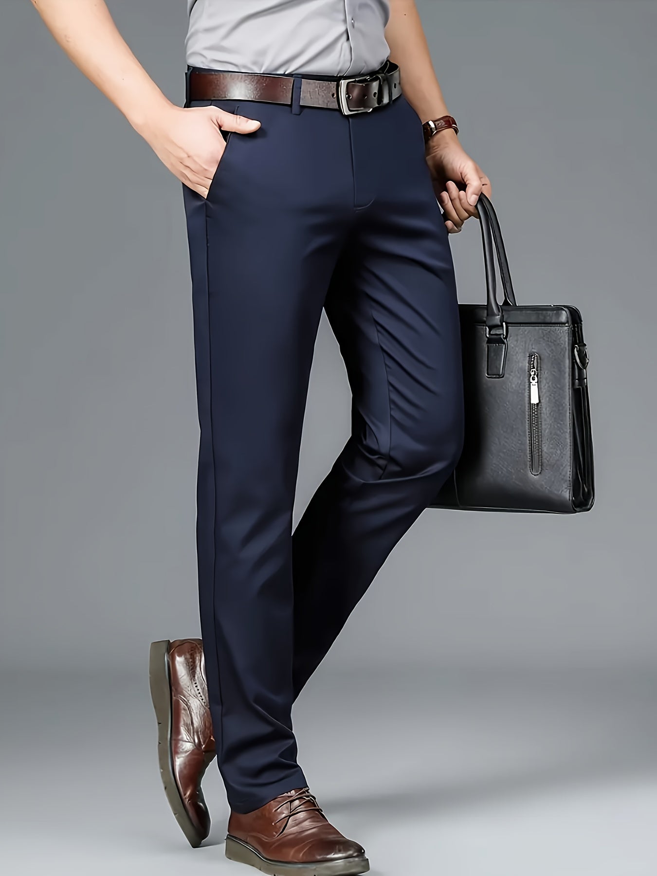 Men'S New Style Solid Color Suit Pants for All Seasons, Fashionable Business Stretch Straight-Leg Formal Trousers, Slim-Fit Casual Pants.