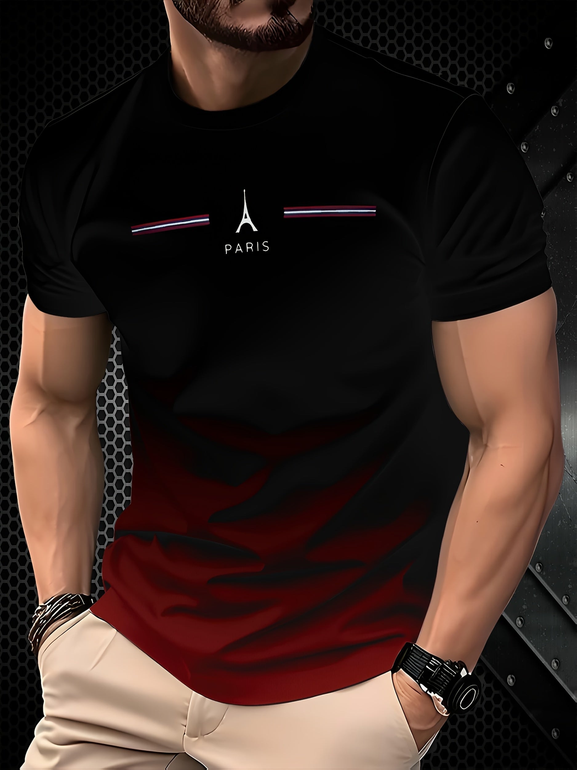 Men's Paris Eiffel Tower 3D Print T-Shirt - Casual Short Sleeve, Summer Outdoor Tee with Gradient Design