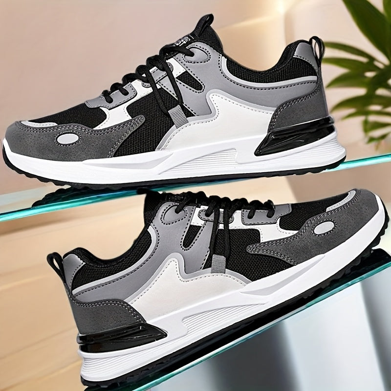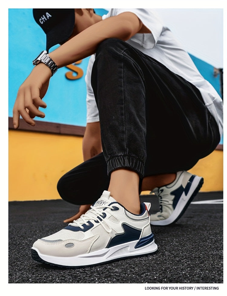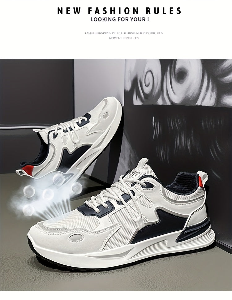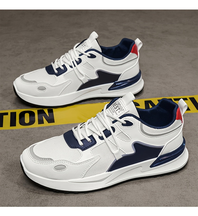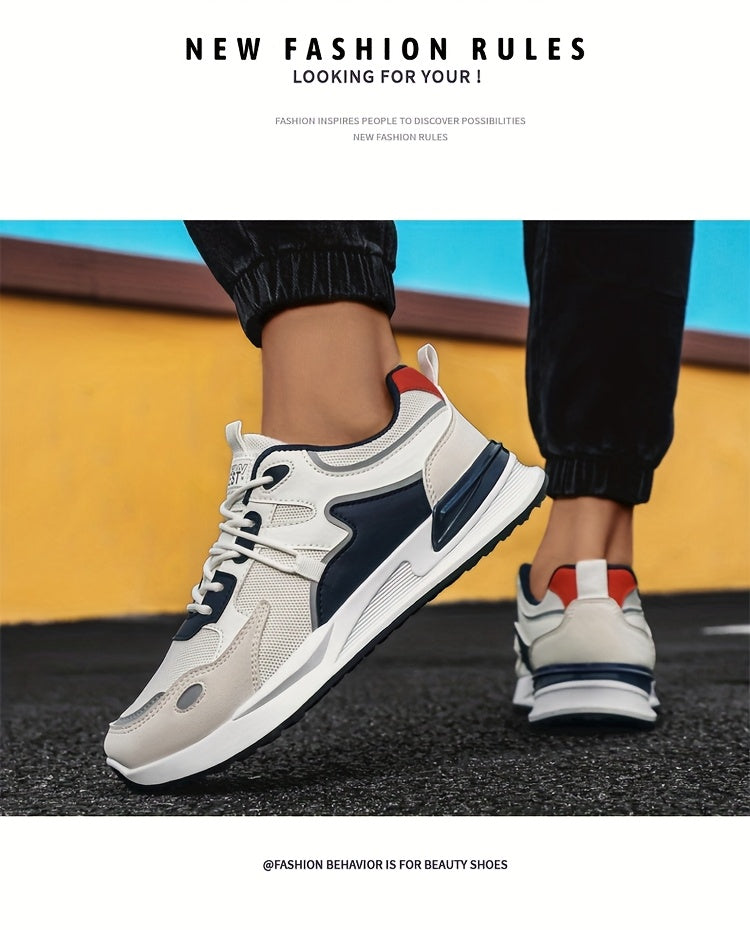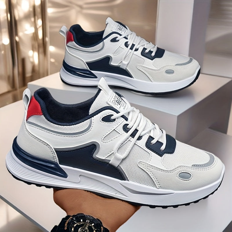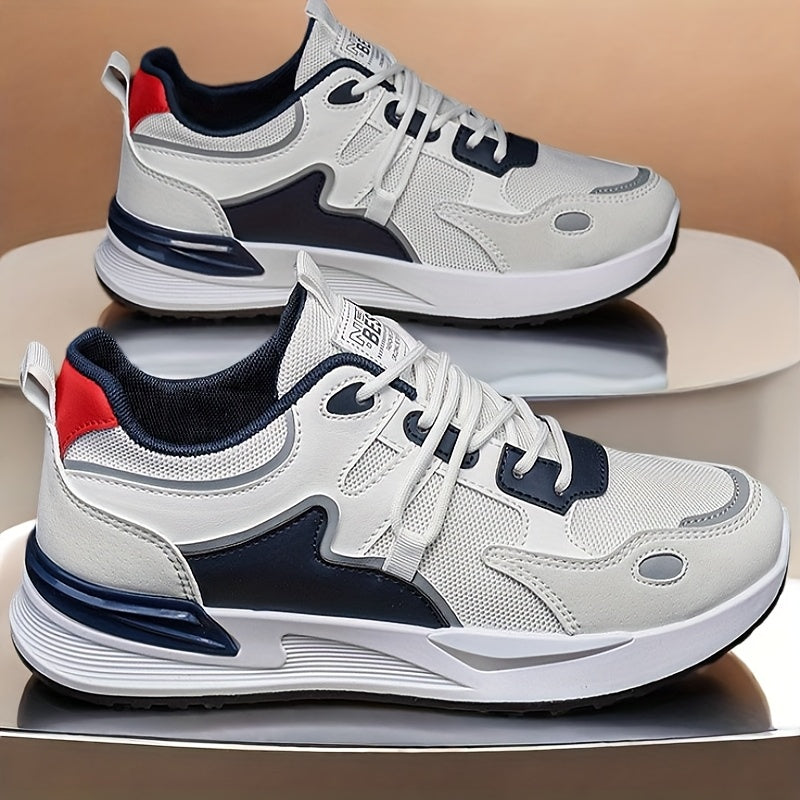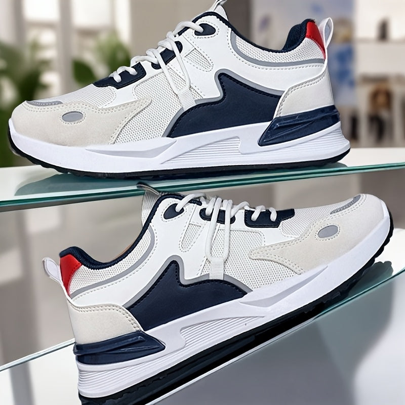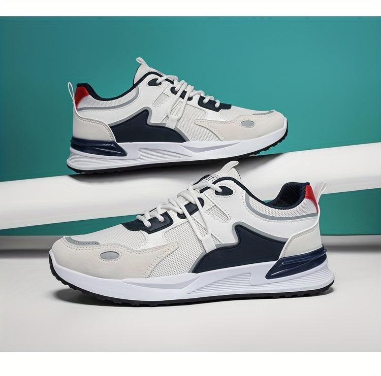 Men's Plus Size Breathable Mesh Casual Sneakers - Low-Top Lace-Up Walking Shoes with Cushioned PVC Sole, All-Season Outdoor & Daily Wear in White/Navy/Red Accents, Outdoor Footwear | Modern Sneakers | Durable Fabric Shoes