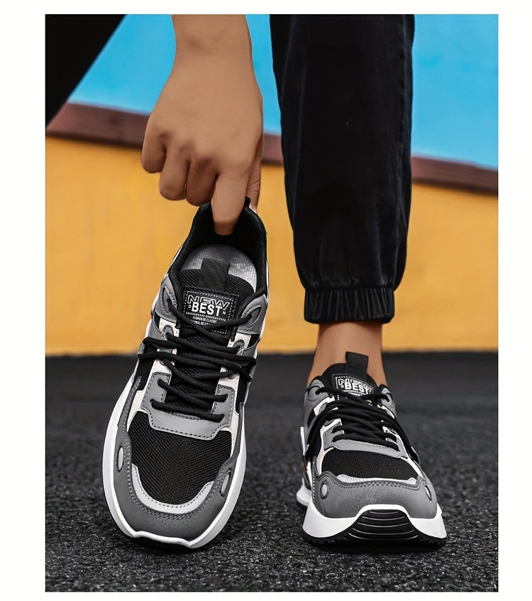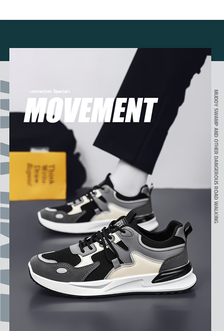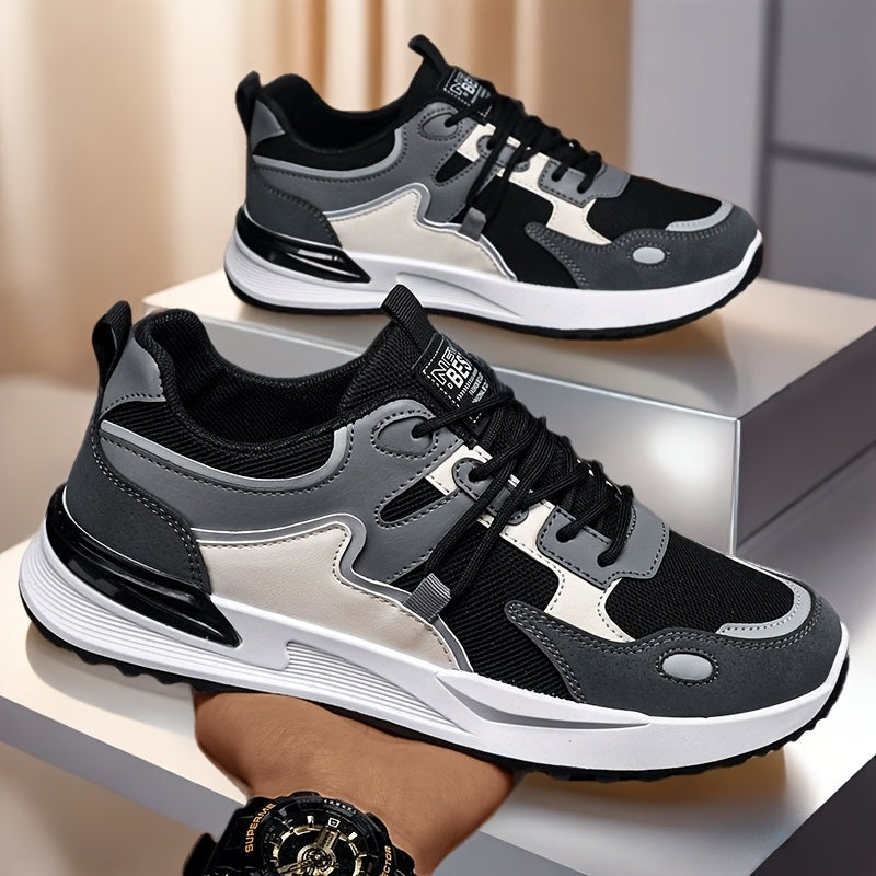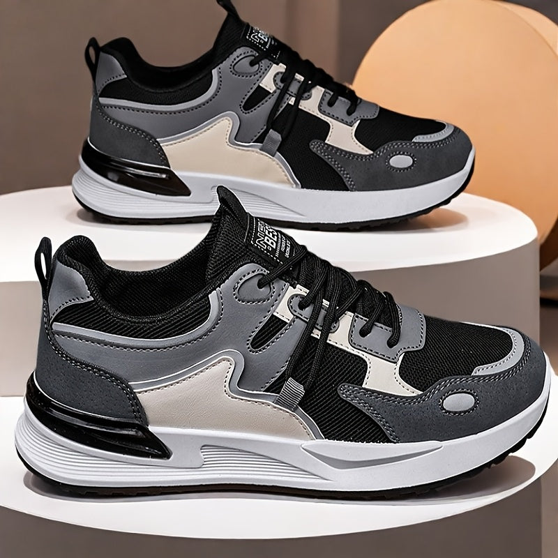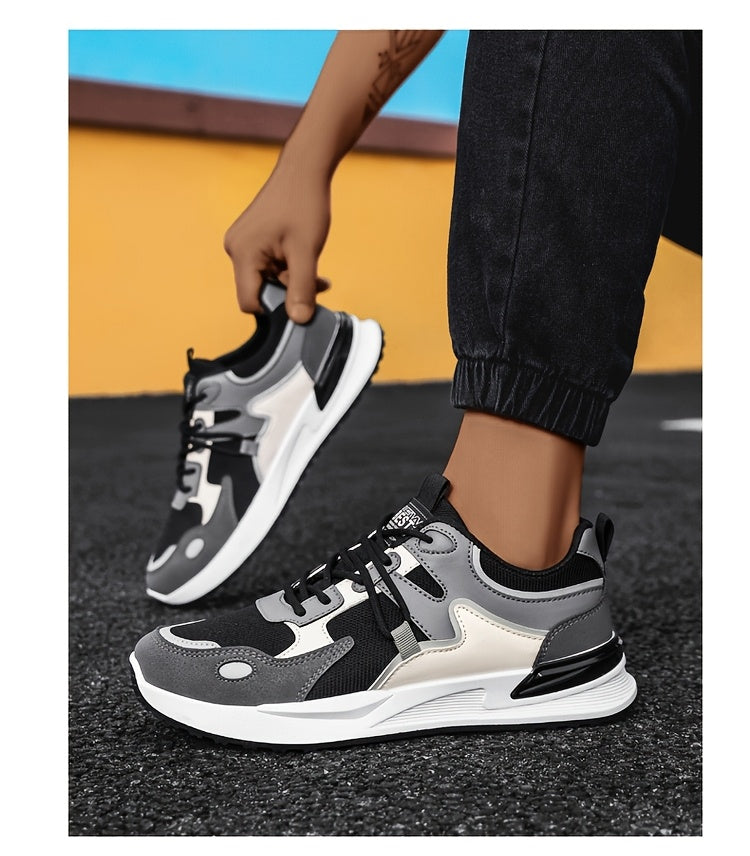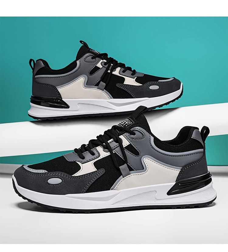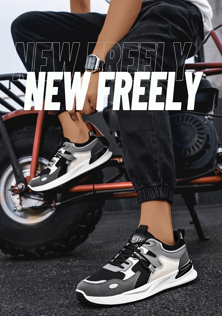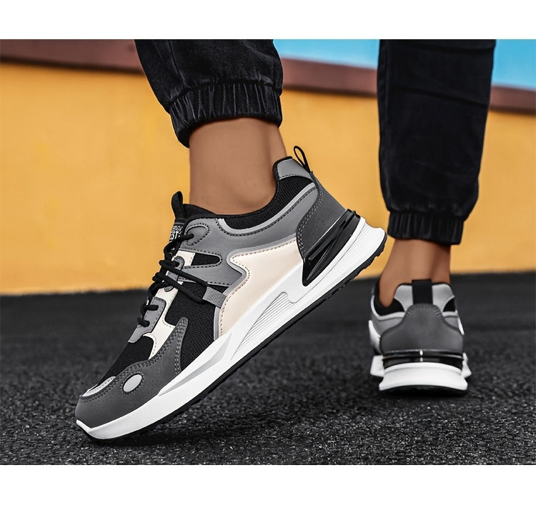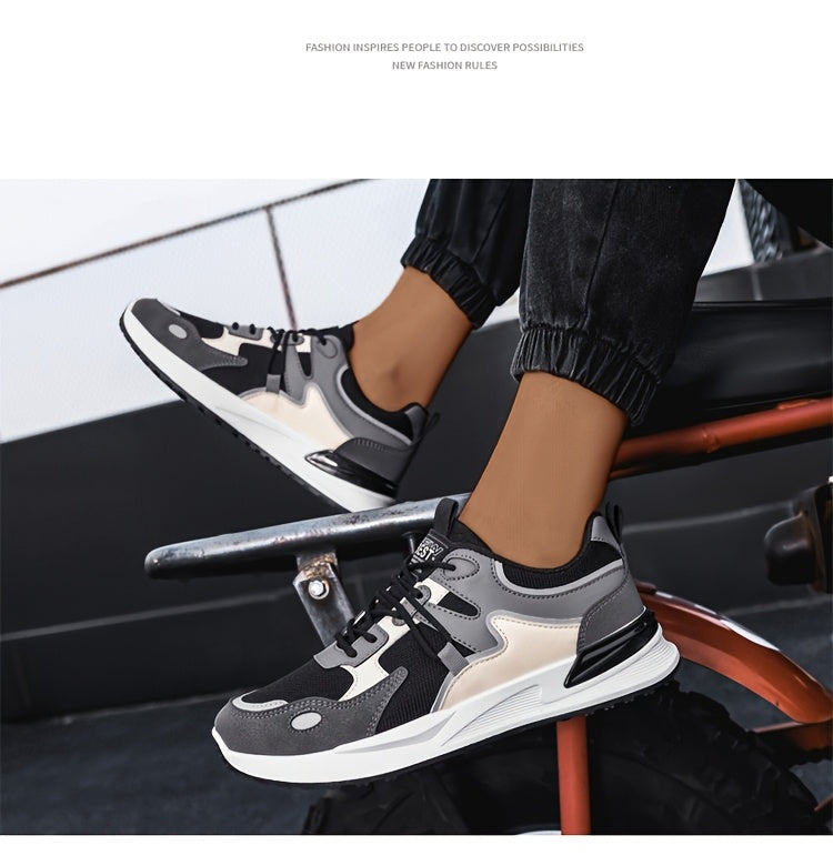 Men's Plus Size Breathable Mesh Casual Sneakers - Low-Top Lace-Up Walking Shoes with Cushioned PVC Sole, All-Season Outdoor & Daily Wear in White/Navy/Red Accents, Outdoor Footwear | Modern Sneakers | Durable Fabric Shoes