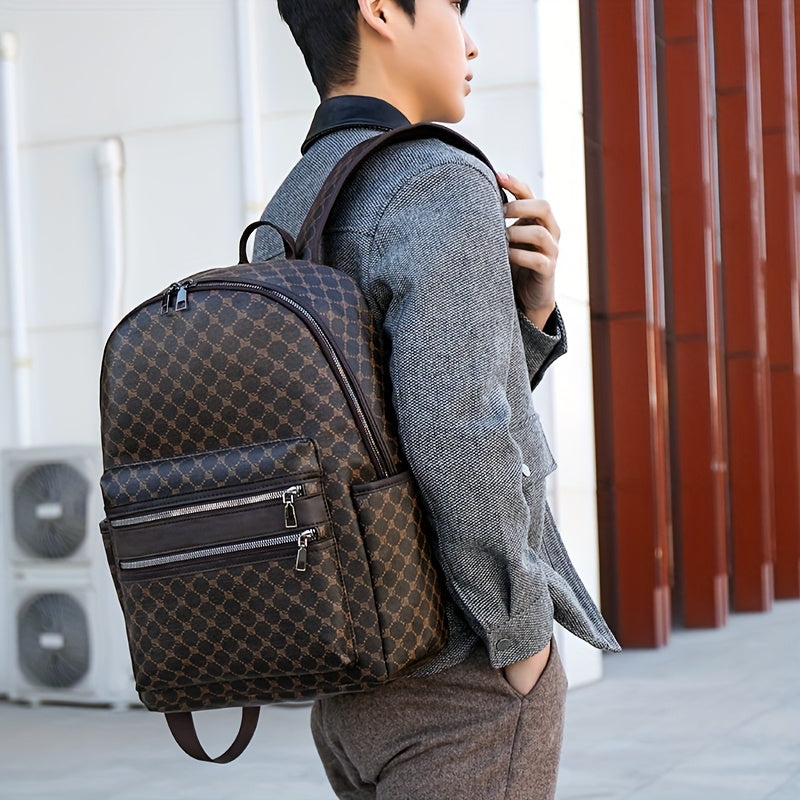 Men's Professional Laptop Backpack - Large Capacity Business Travel Backpack with 39.62cm Laptop Compartment, Multiple Zippered Pockets - Durable Backpack for Work, School, College - Elegant Brown Accent Design - Compatible w