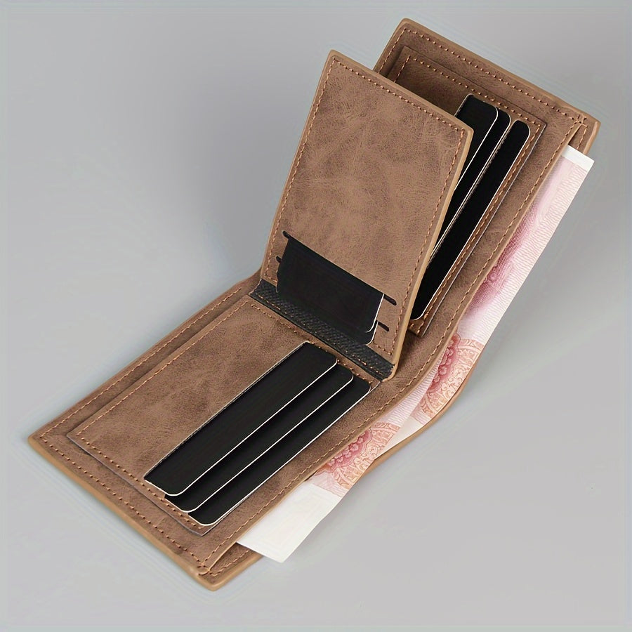 Men's PU Leather Short Wallet With Interlayer Coin Purse Multiple Card Slots Purse Large Capacity Card Cash Holder, Great Gift For Men