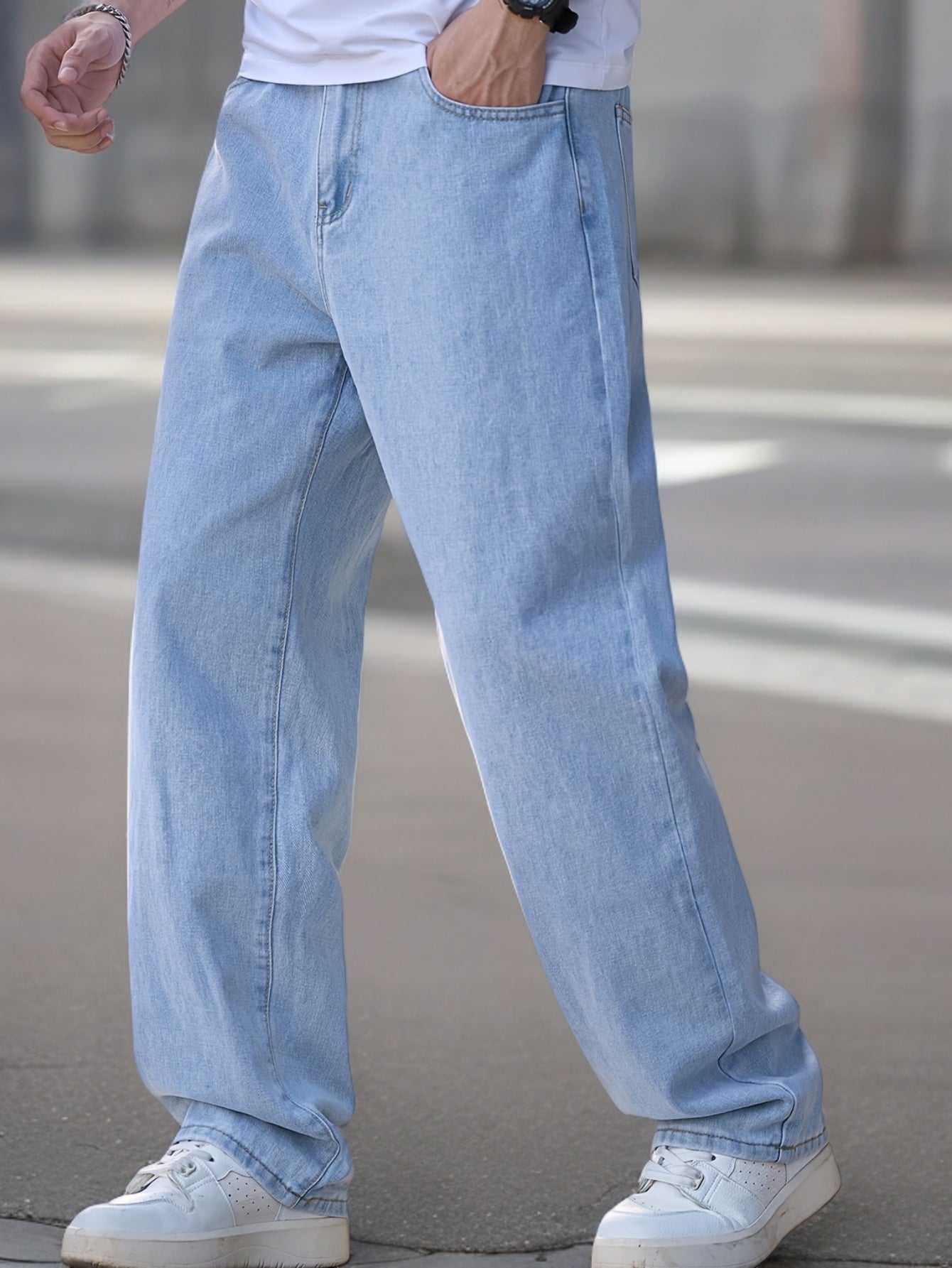 Men's Relaxed Fit Light Blue Denim Jeans - Casual Straight Leg Blend Pants, Machine Washable, Comfortable for Casual Attire, Casual Wear Jeans | Relaxed Fit Jeans | Blend Denim