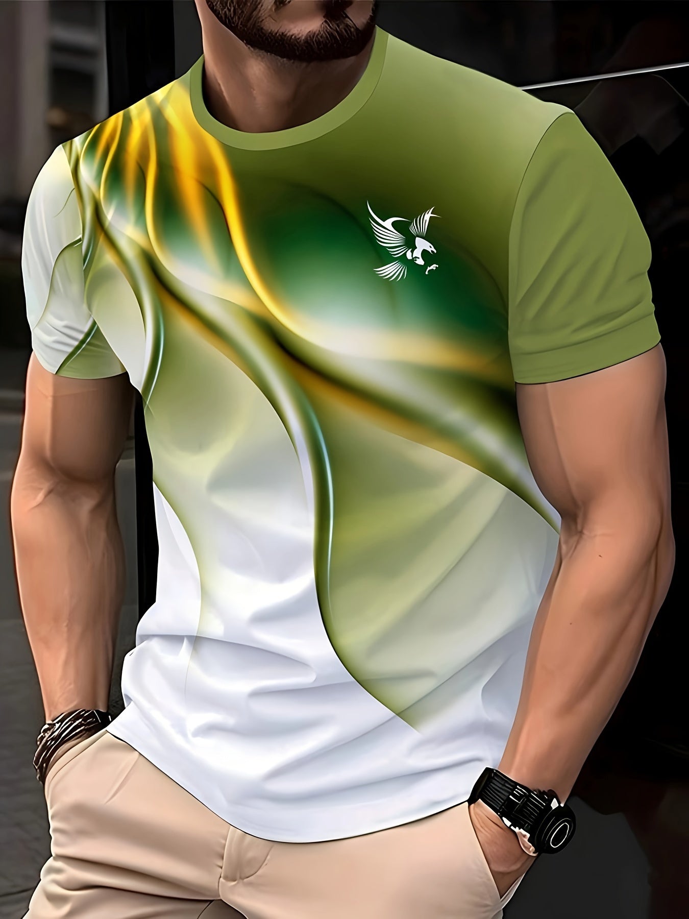 Men'S Round Neck T-Shirt with a Simple Multicolored Bird Pattern Print in Trendy Style.