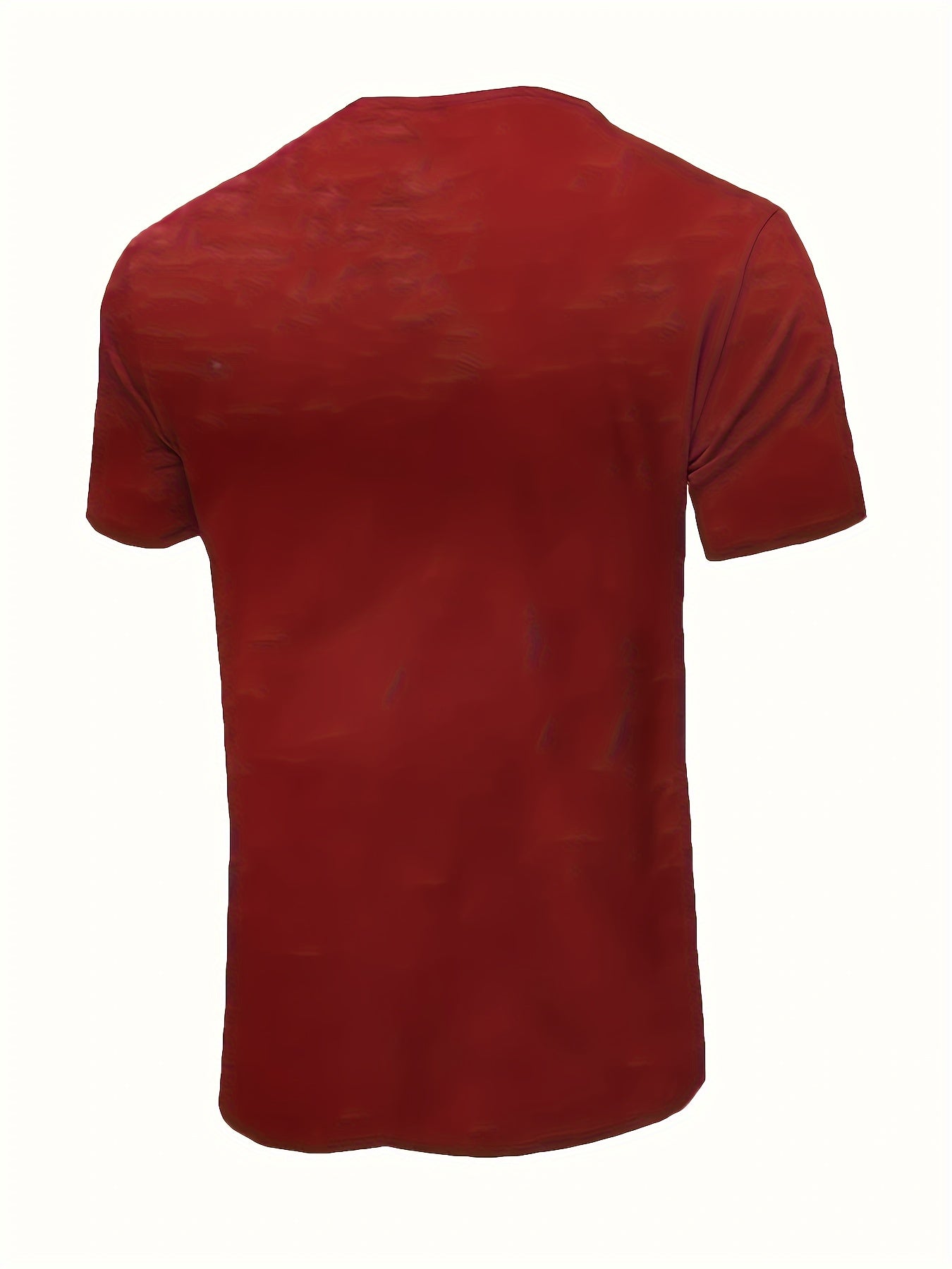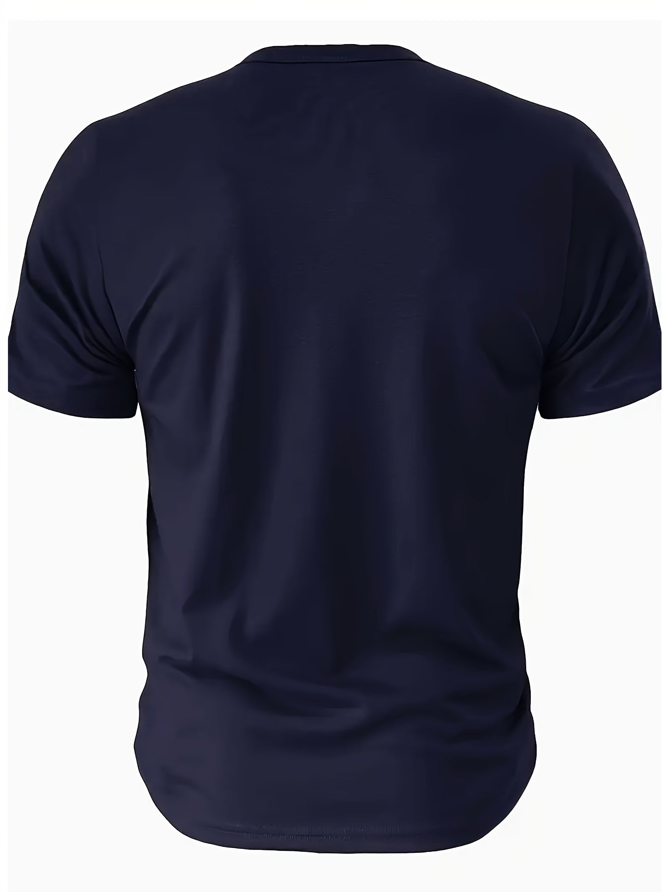 Men's Script Letter Print Short Sleeve Henley Shirt, Business Fashion Top For Male's Casual And Daily Wear