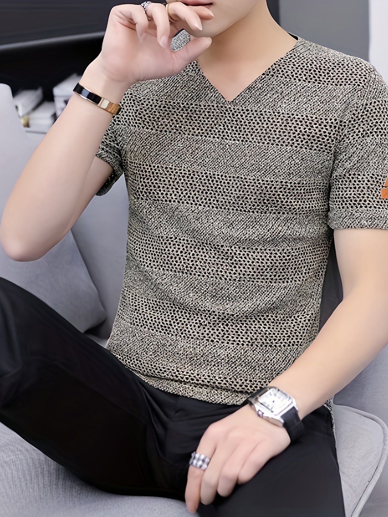 Men's Short-Sleeve T-Shirt Summer Hollow-Out Cool High-End Half Sleeve Breathable Non-See-Through