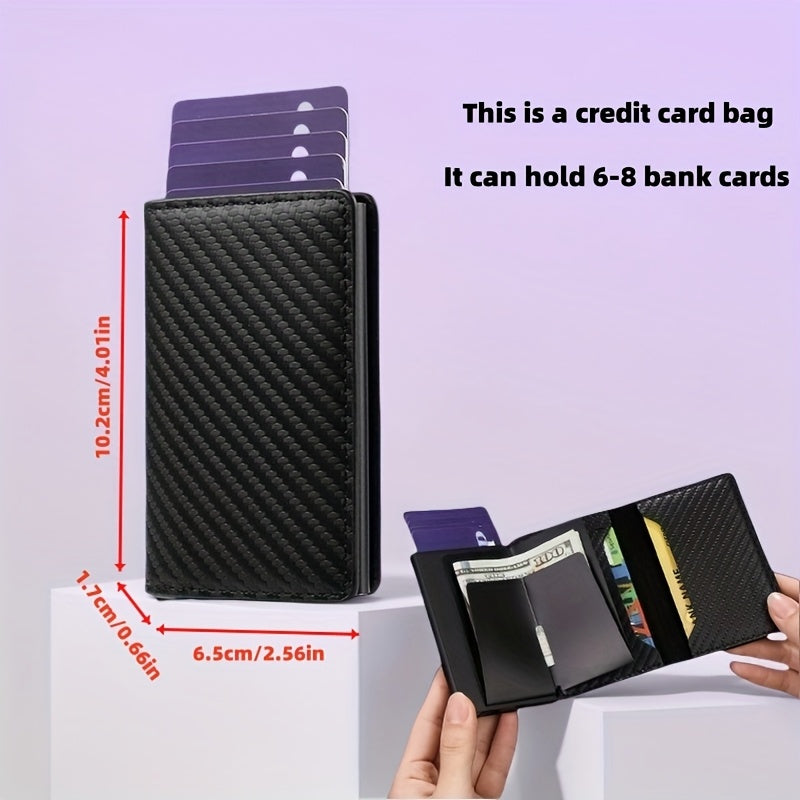 Men'S Short Wallet, Automatic Pop-Up Credit Card Holder, Short Wallet, Ideal Gift for Men, Multi-Functional Men'S Card Holder, Stylish, Trendy, Minimalist Credit Card Holder, Pop-Up Card Holder, High-Quality Faux Leather, Cap