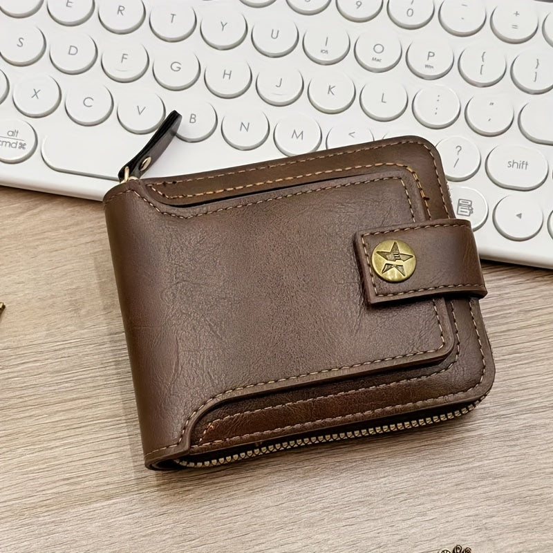 Men's Sleek Faux Leather Wallet with Tree Pattern - Compact Zippered Credit Card Holder & Coin Purse, Light Brown
