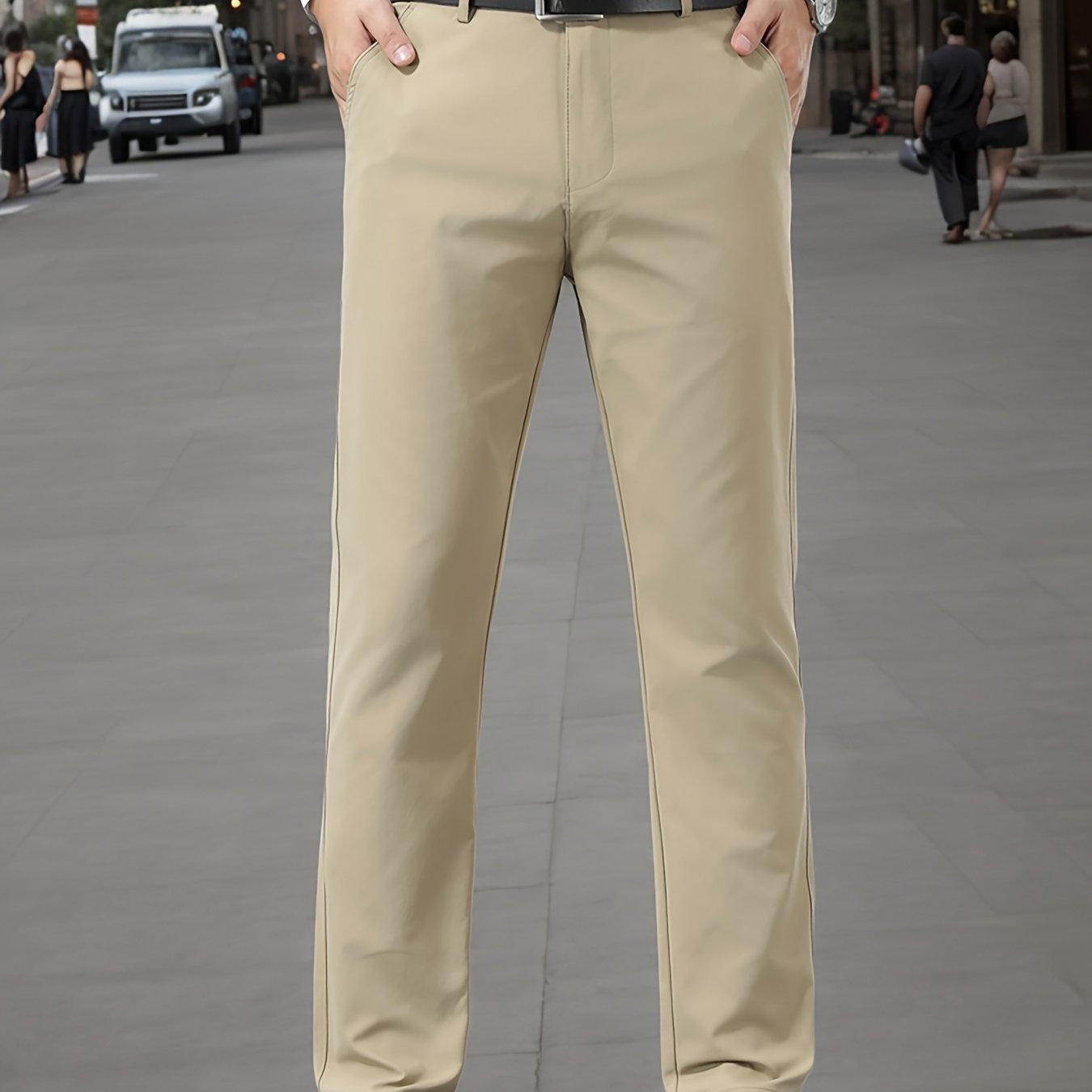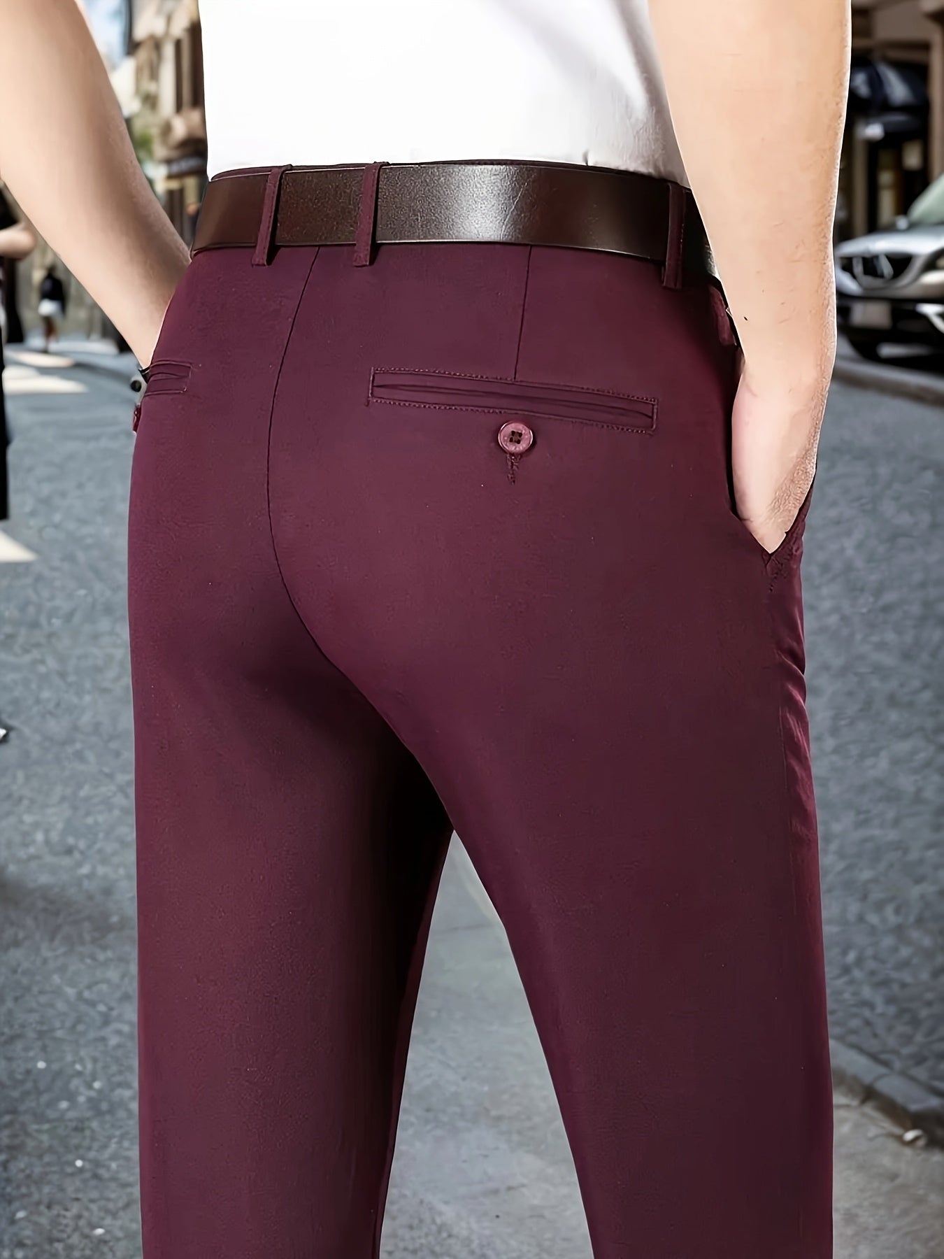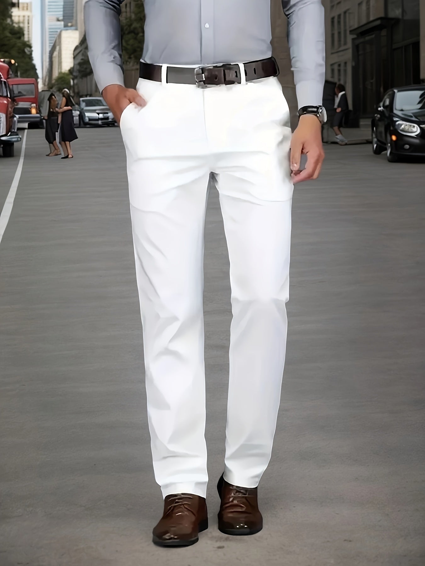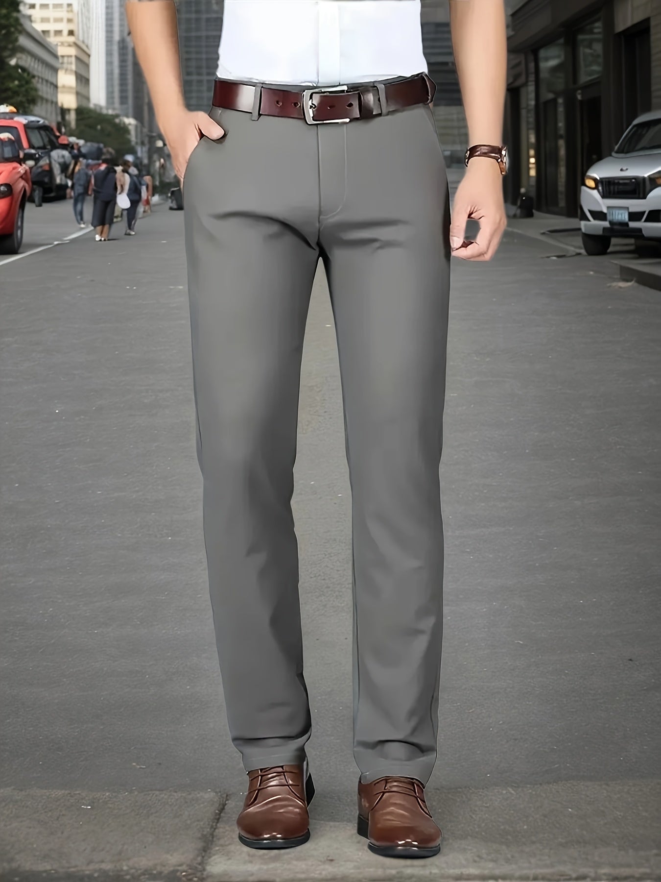 Men's Sleek Stretch Dress Pants - Solid Color Black, Comfort Fit with Subtle Stretch, Polyester Fabric, Mid-Rise, Machine Washable, Perfect for Business Casual & All-Season Wear, Business Casual Pants | Sleek Trousers | Easyc
