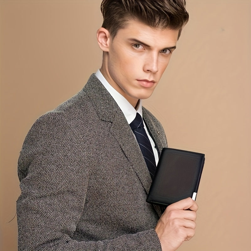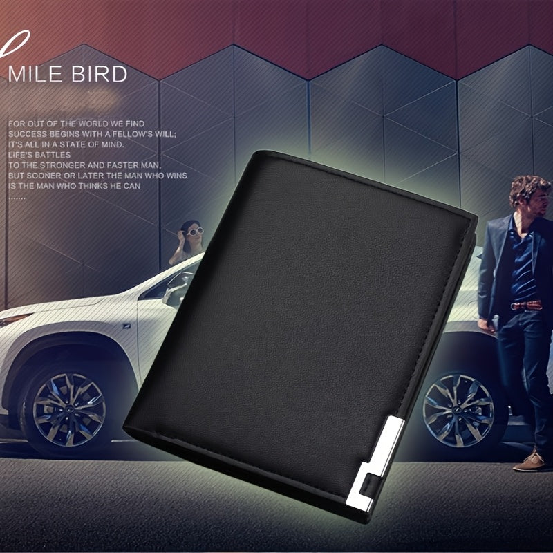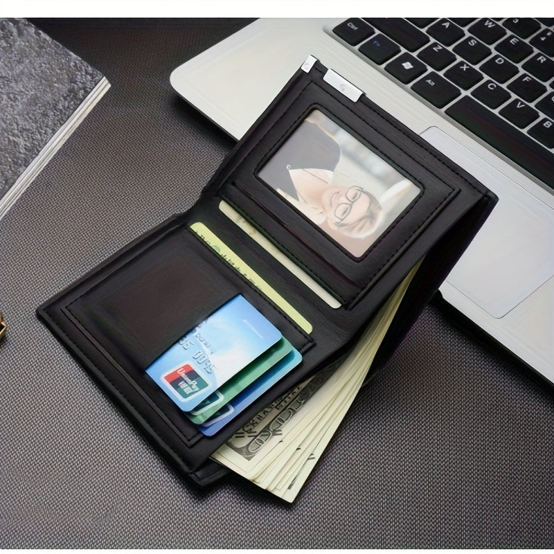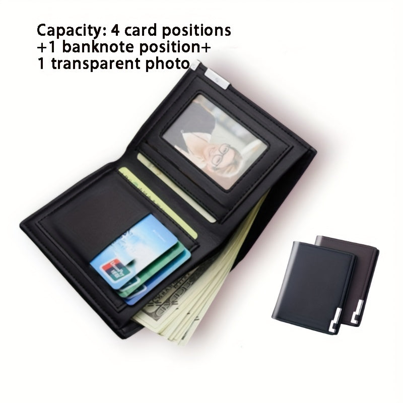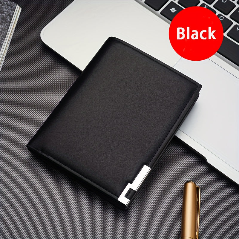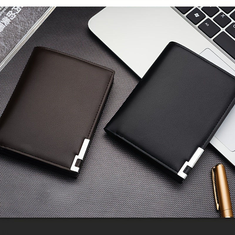 Men's Slim Faux Leather Wallet with Iron Edge - Trendy Korean Style, Black & Brown, Compact Design with Card Slots, Photo Holder & Large Banknote Compartment, Perfect for Everyday Use, Cardholder | Modern Look | Metallic Trim