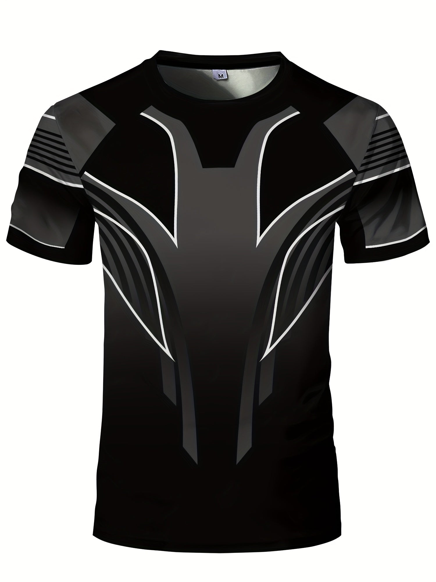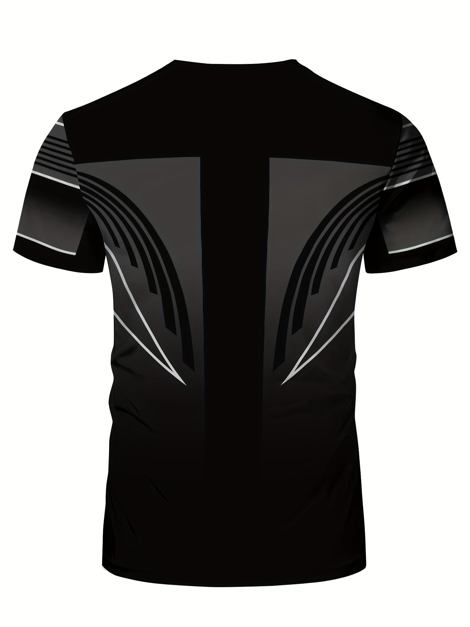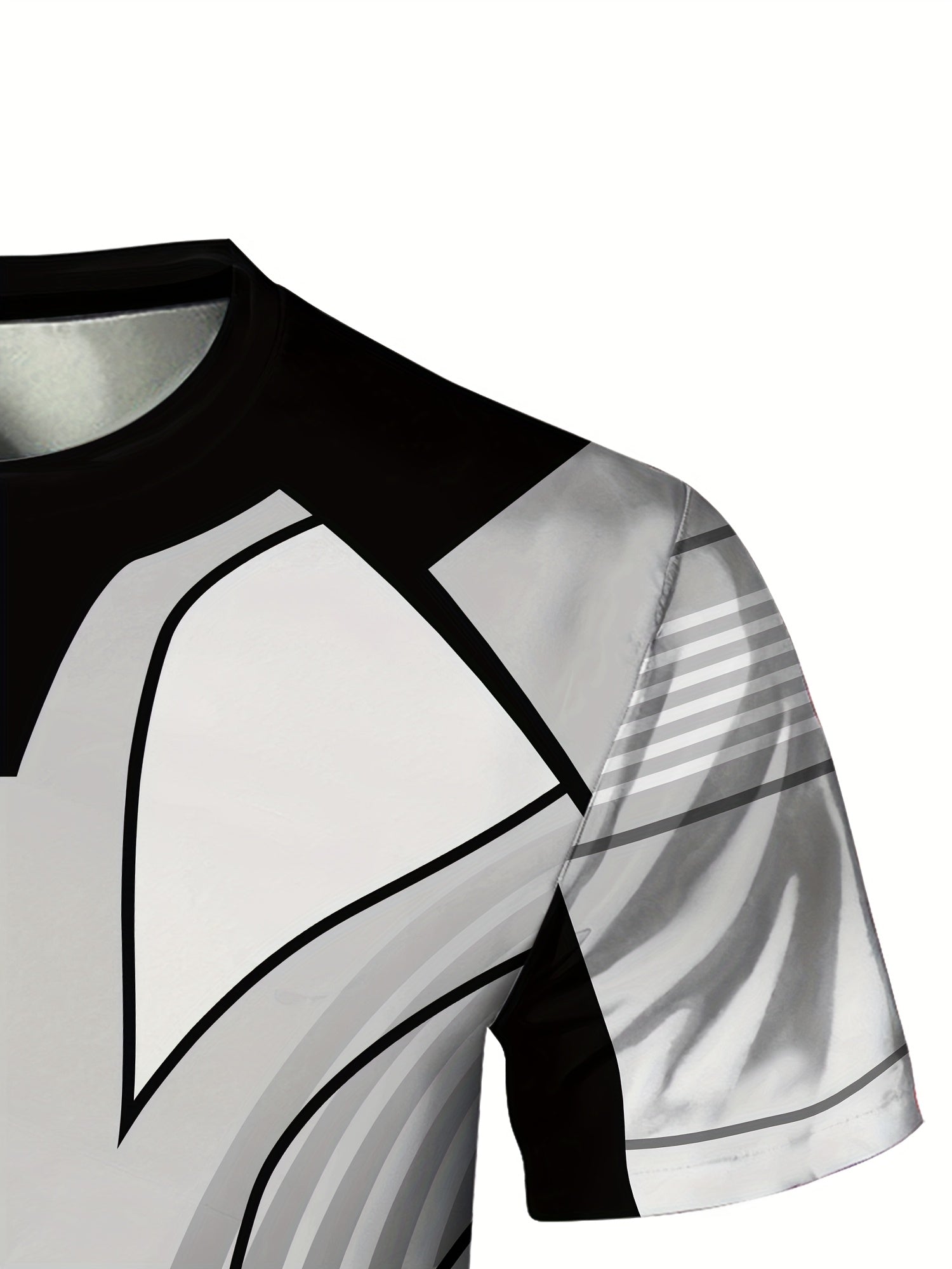 Men'S Slim Fit Breathable T-Shirt with Intricate Black White Geometric Print - Moisture-Wicking Polyester-Spandex Blend, Machine Washable, Round Neck Short Sleeve for Summer Casual Wear, Gym, Hiking Outdoor Activities