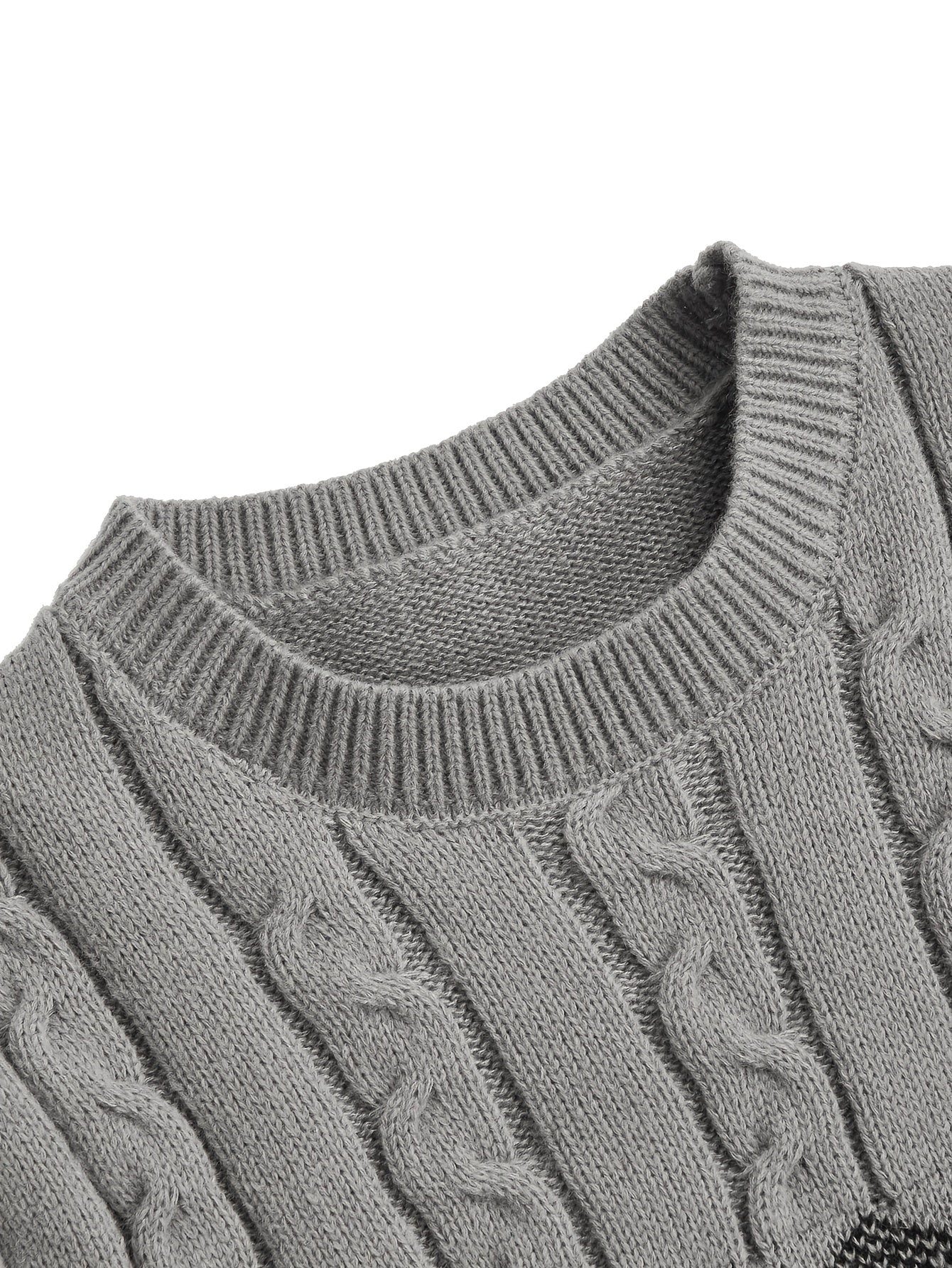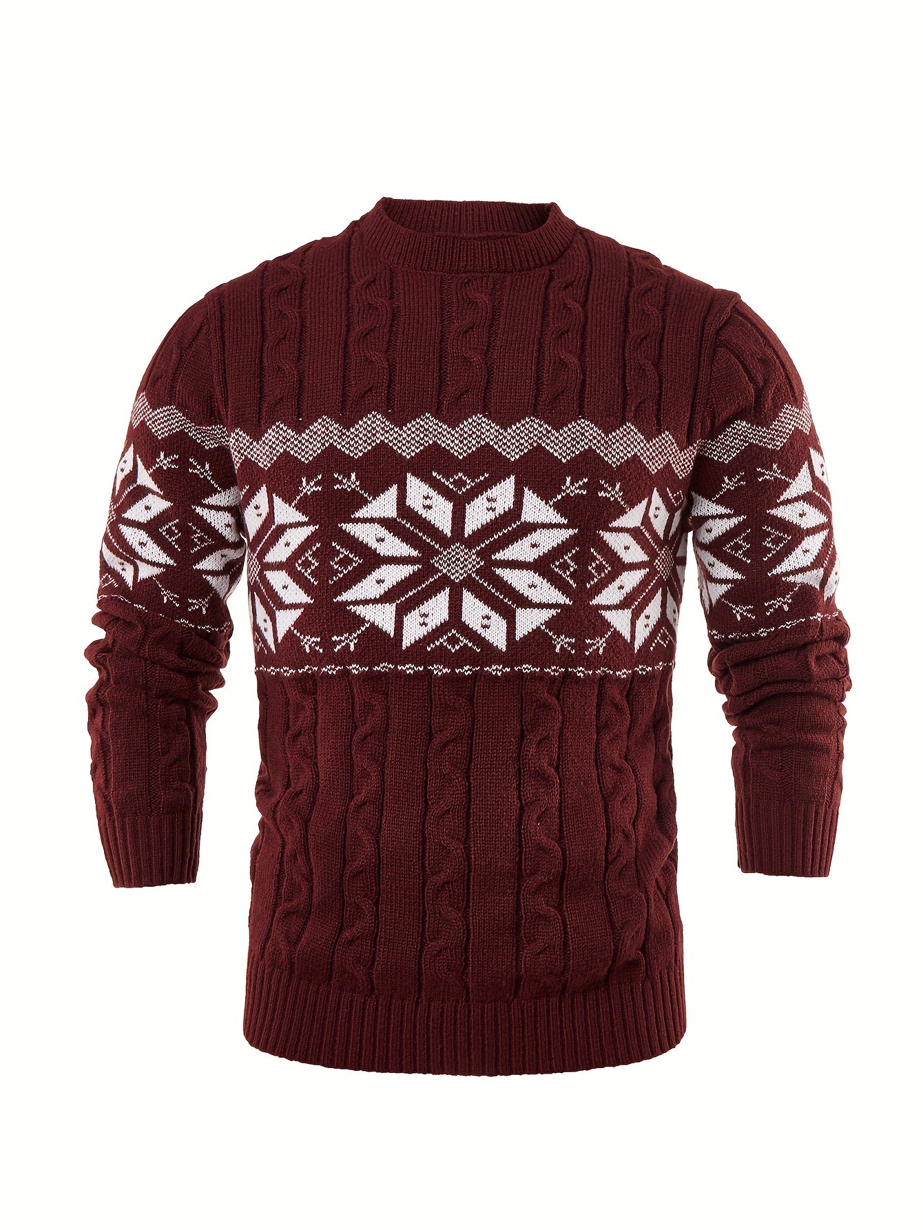 Men's Slim-Fit Cable Knit Sweater - Winter Warm Pullover with Geometric Corduroy Clasp (Adjustable Rope), Round Neck Long Sleeve Casual Sweating for Fall/Winter Layering - Hand Washable Knitwear for Smart-Casual Outfits (Not