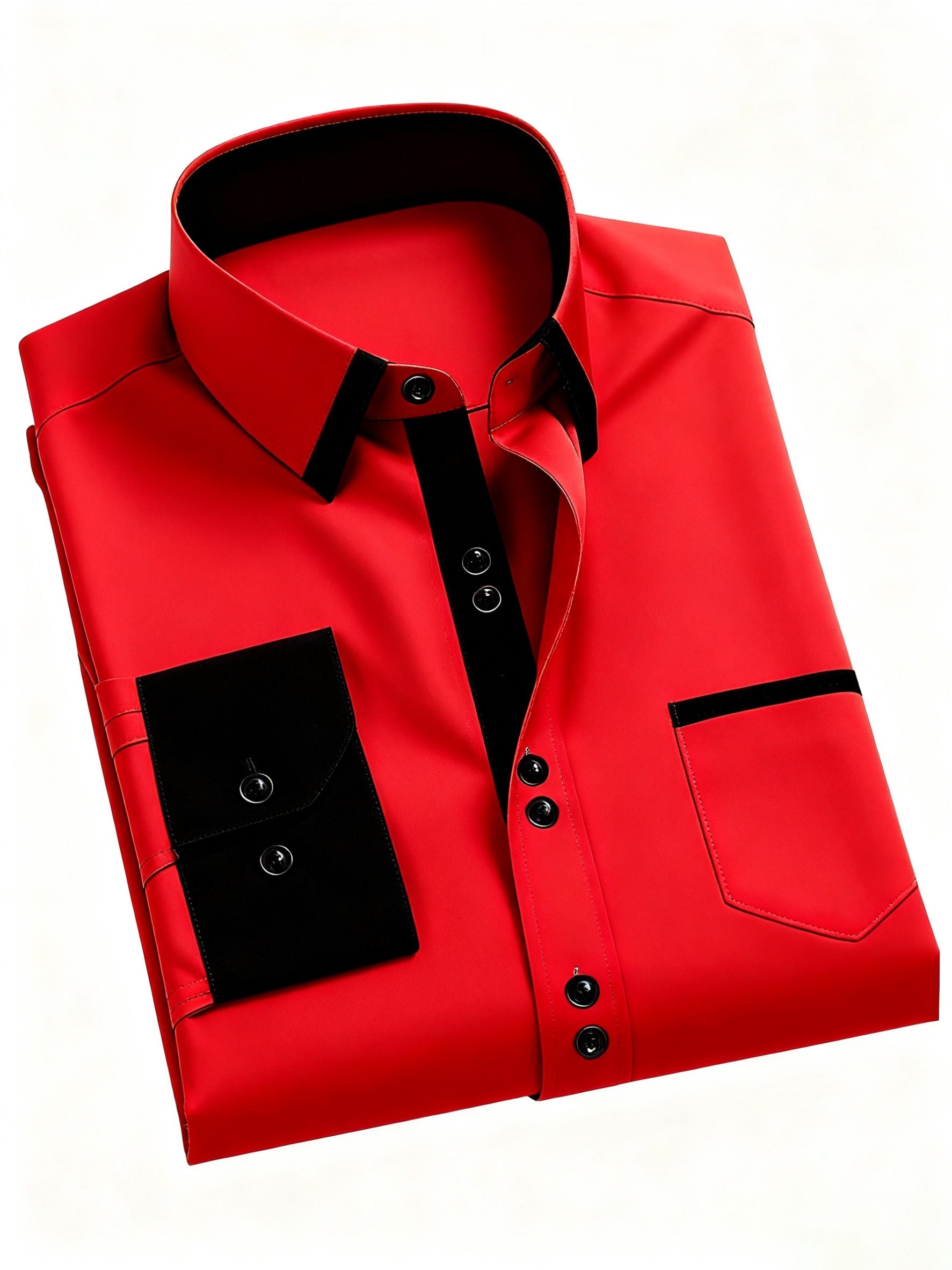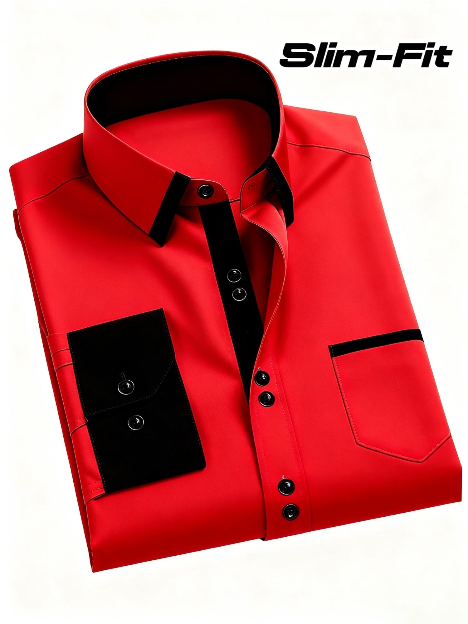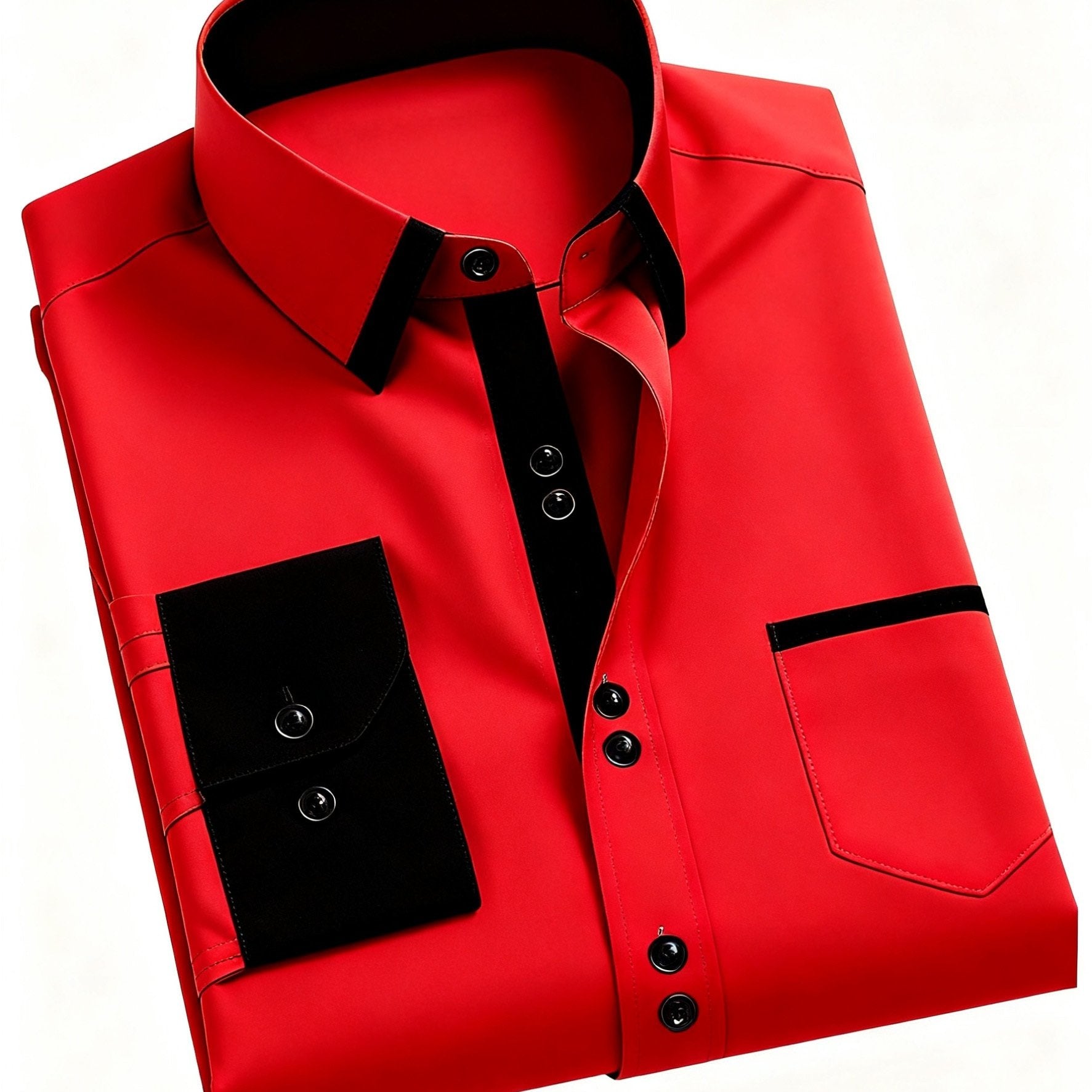 Men's Slim-Fit Wrinkle-Resistant Business Dress Shirt - Classic Collar & Contrast White/Black/Tan/Gray/Navy - Tailored Office Wedding Suit Jacket Coat, Machine Washable All-Season Formal Wear