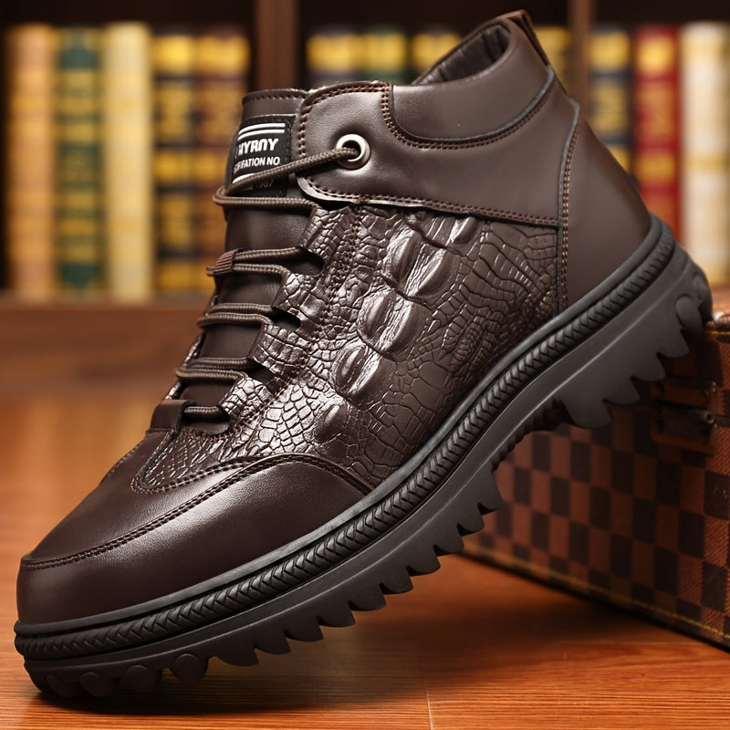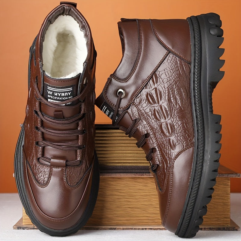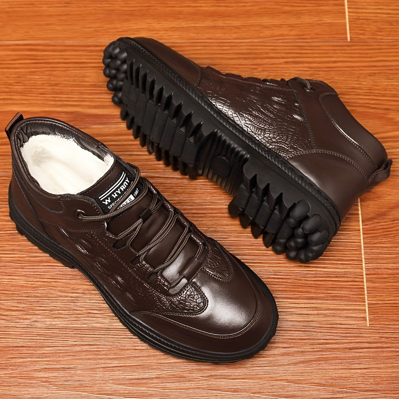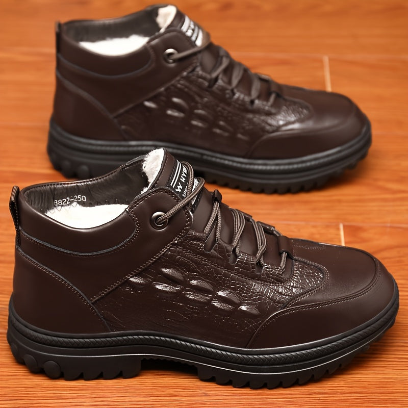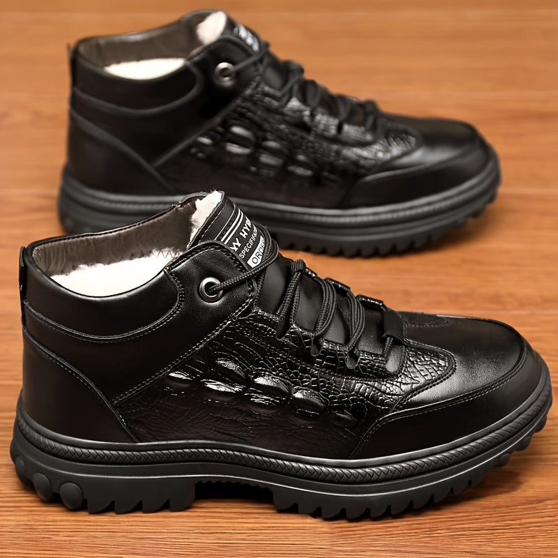 Men's Slip-On Ankle Snow Boots with Plush Lining & Thick Rubber Sole - Thermal Insulated Winter Boots, Microfiber Upper, Cushioned PU Insole, Solid Color Design for Cold Weather, Winter Shoes