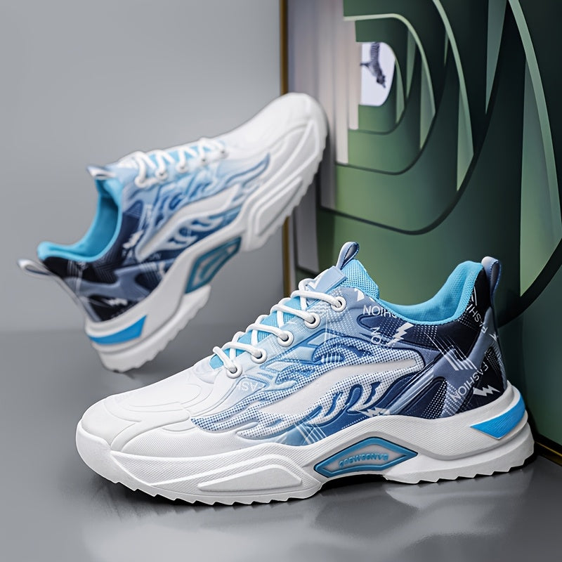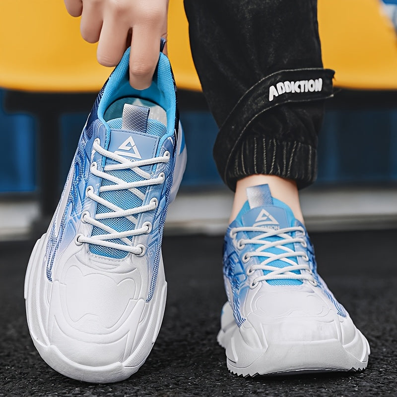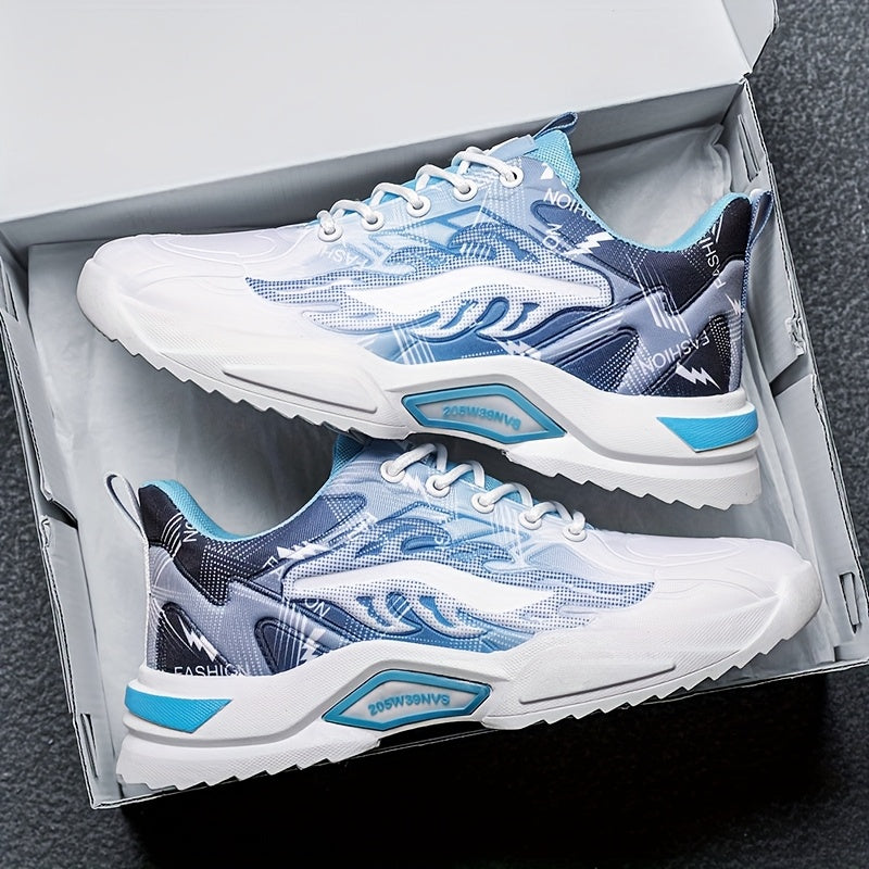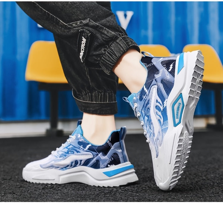 Men's Sneakers - Lightweight Cushioned Platform Sneakers with Lace-Up Closure, Non-Slip PVC Sole - Breathable Gym, Running, Casual Shoes in Grey/Black colorway - for Everyday Light Hiking, Gym Shoes