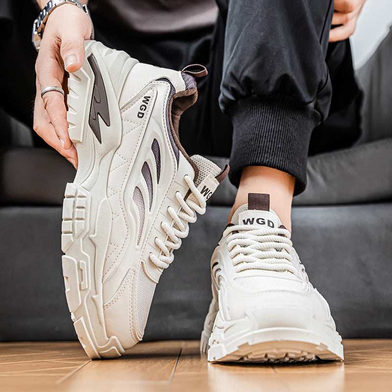 Men's Sneakers - Lightweight Cushioned Platform Sneakers with Non-Slip PVC Outsole, Breathable Low-Top design for Gym, Running, Casual - All-Season Everyday Formal Shoes - Black, Sleek Shoe Design, Fabric Lined Interior