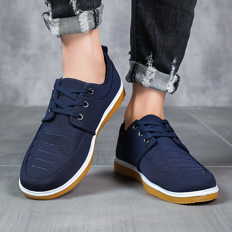Men's Solid Color Classic Canvas Shoes, Comfy Non Slip Casual Business Style Lace Up Walking Shoes For Men's Outdoor Activities