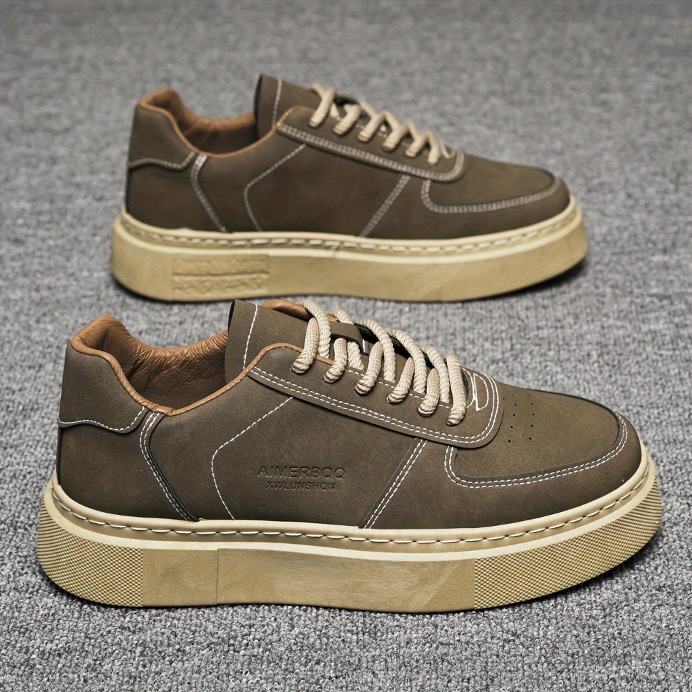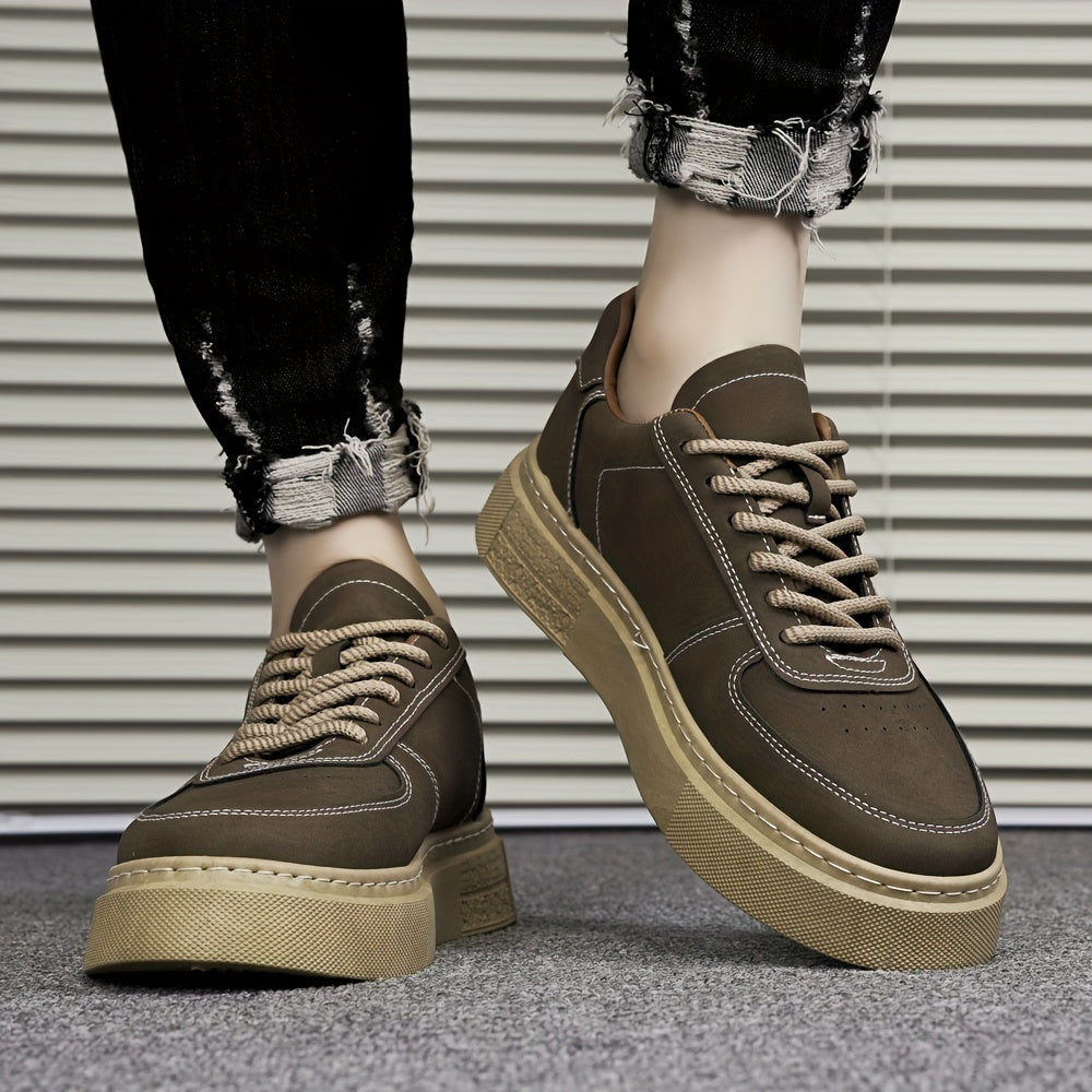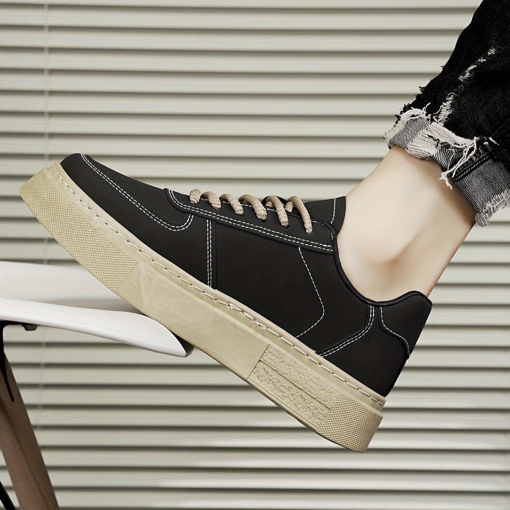 Men's Solid Colour Platform Skateboard Shoes, Comfy Non Slip Durable Lace Up Sneakers For Men's Outdoor Activities