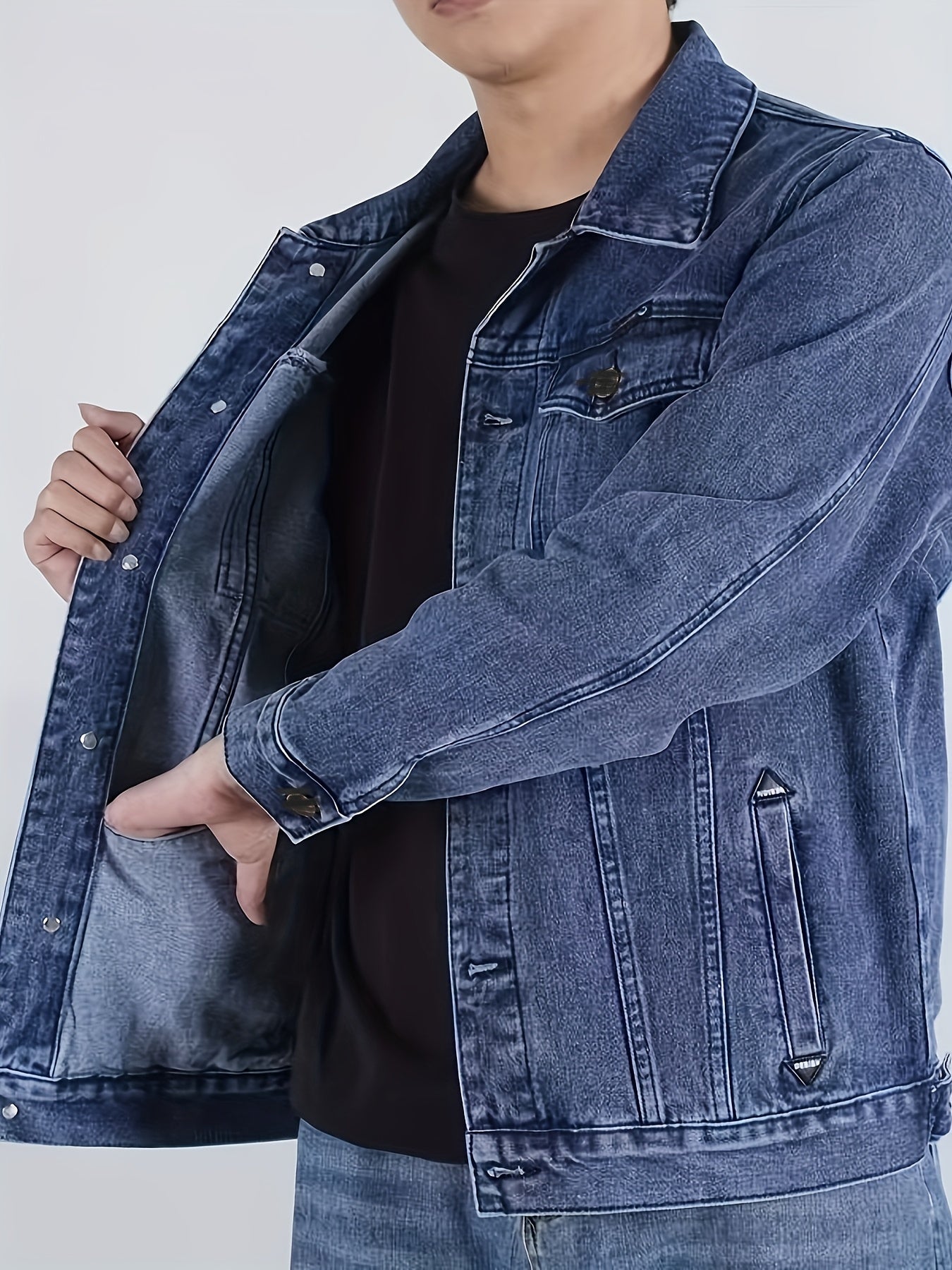 Men's Spring/Autumn Denim Jacket - Casual Chic Style, Black Blend with Red Accents, Button-Up with Flap Pockets, Long Sleeves, Ideal for Hiking & Casual Attire, Outdoor Apparel|Classic Denim Style|Durable Fabric