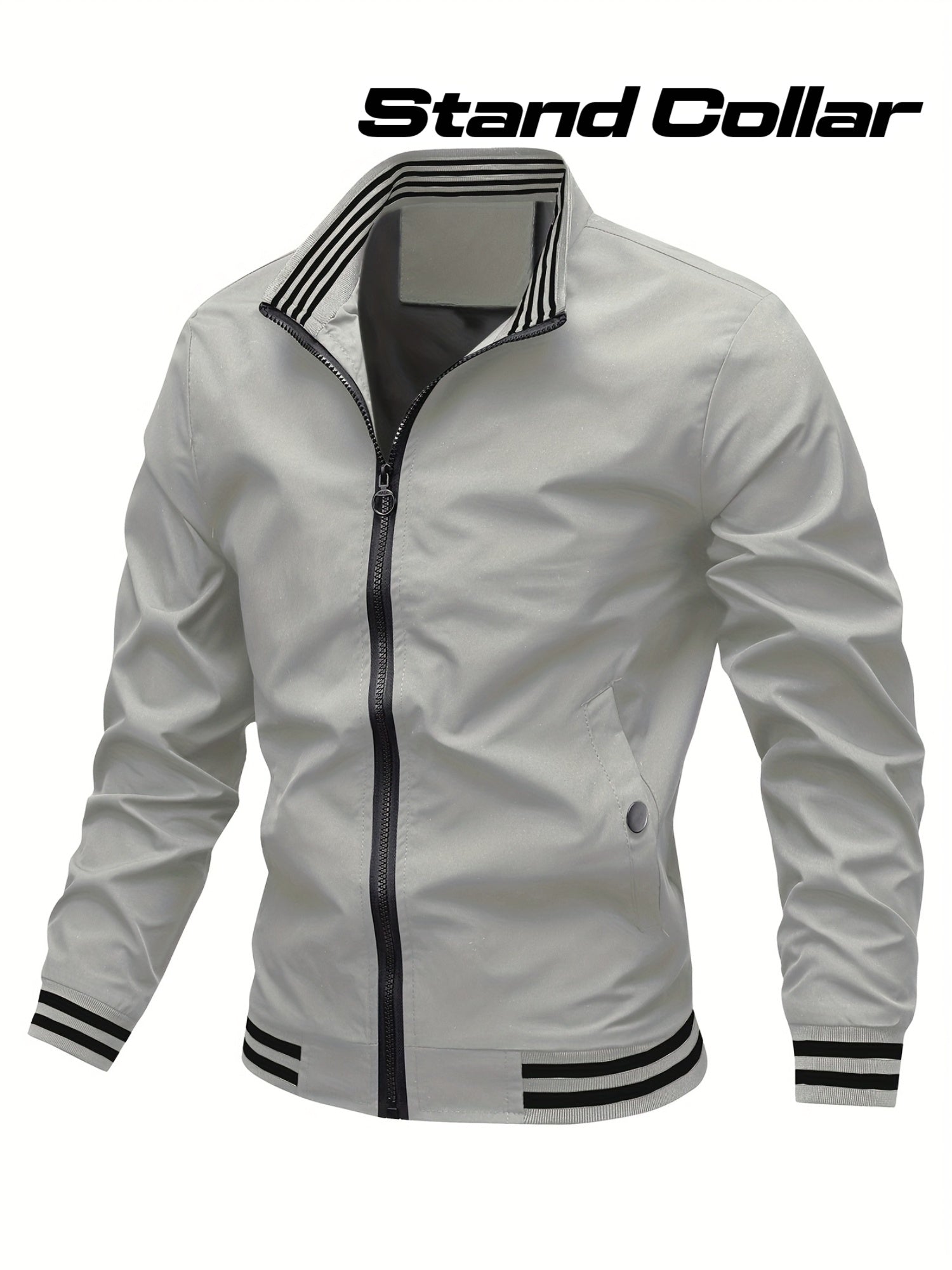 Men's Stand Collar Long Sleeve Zip Up Sports Jacket With Contrast Trim Design, Men's Spring Fall Outwear, As Gifts