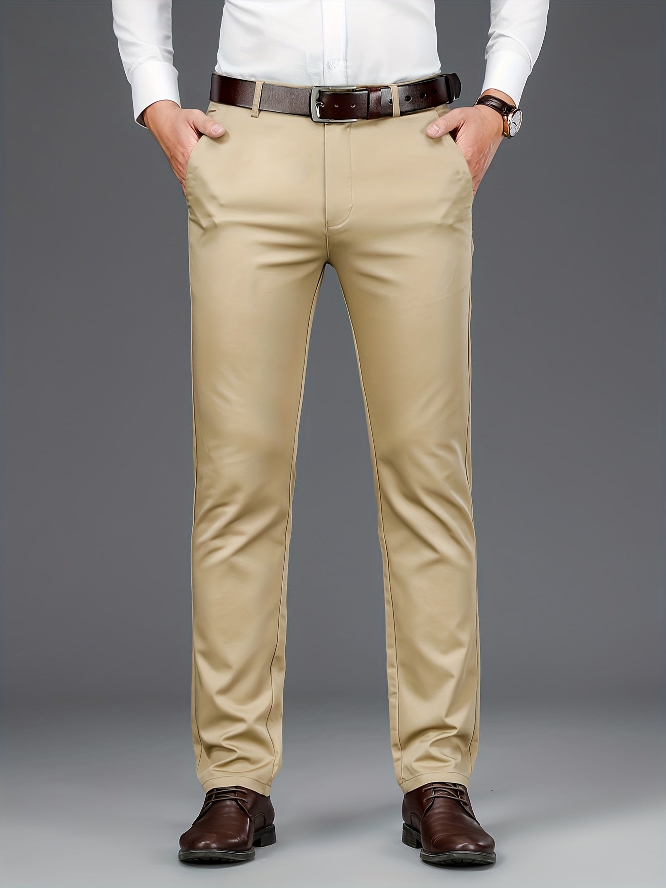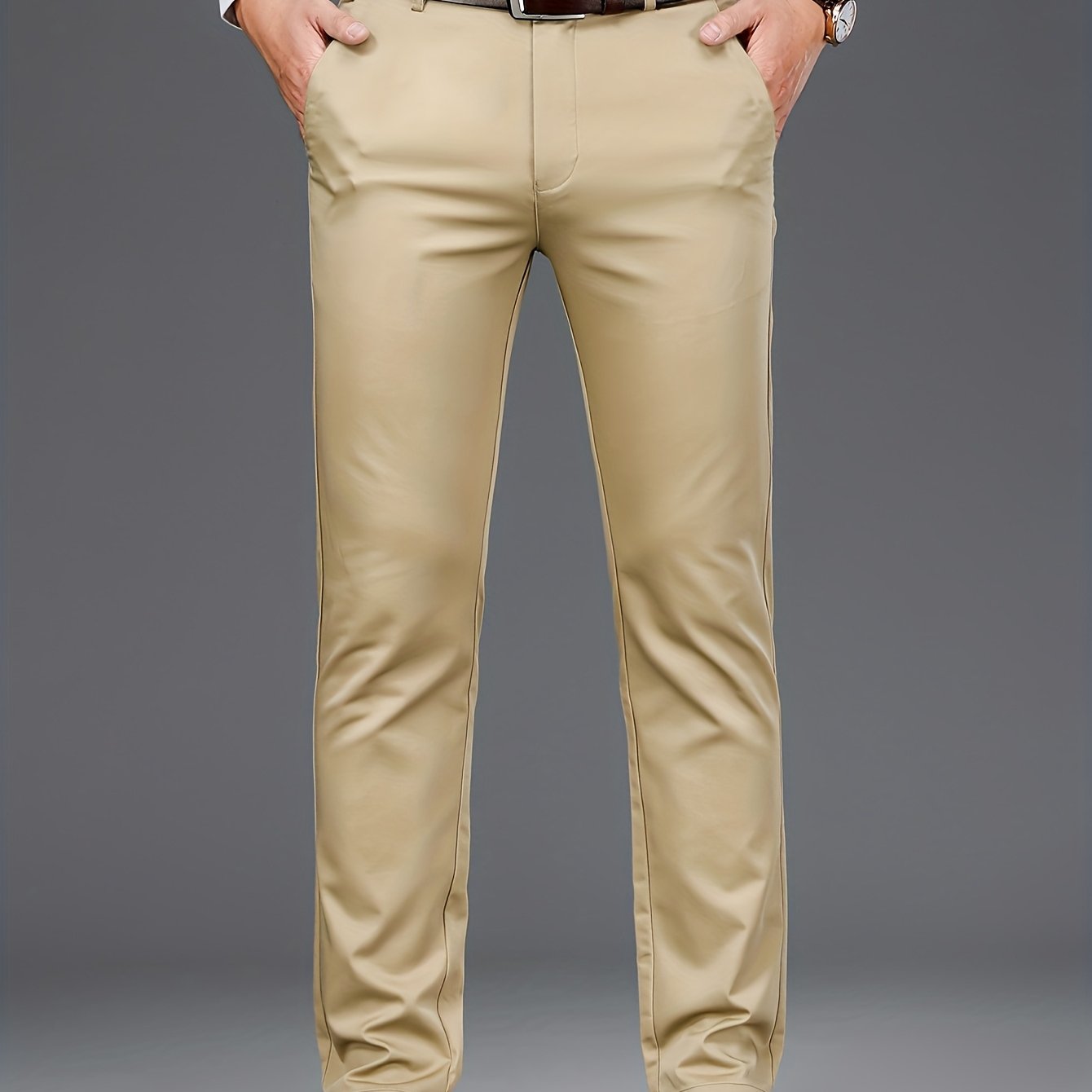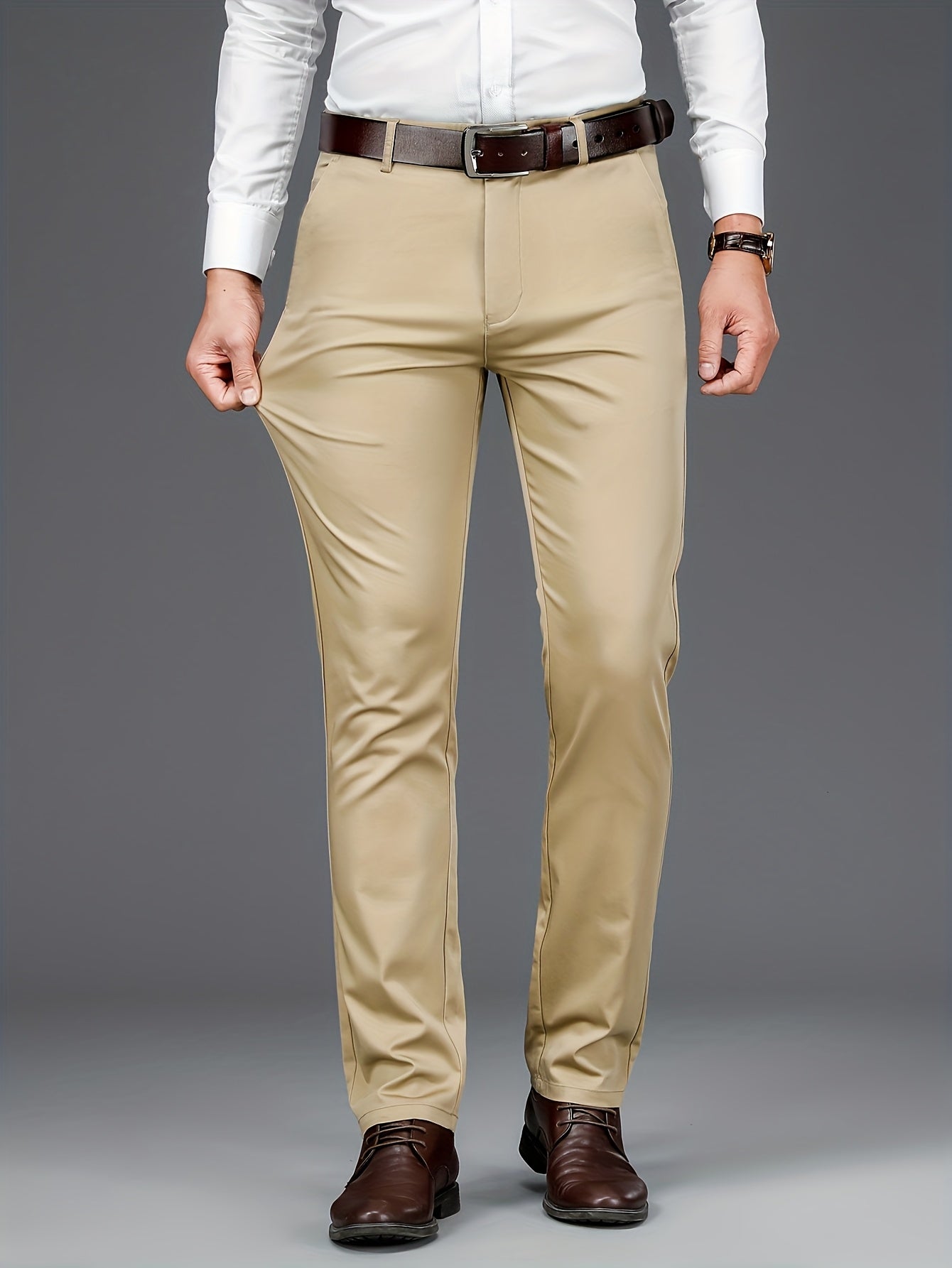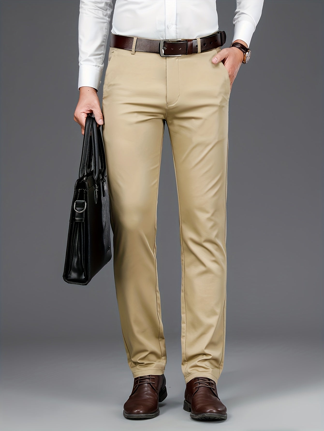Men'S Stretch Fit Straight-Leg Trousers - Beige Business Casual Pants with Elastic Waistband, Perfect for Spring & Fall, Office Attire|Sleek Formal Attire|Comfortable Fit