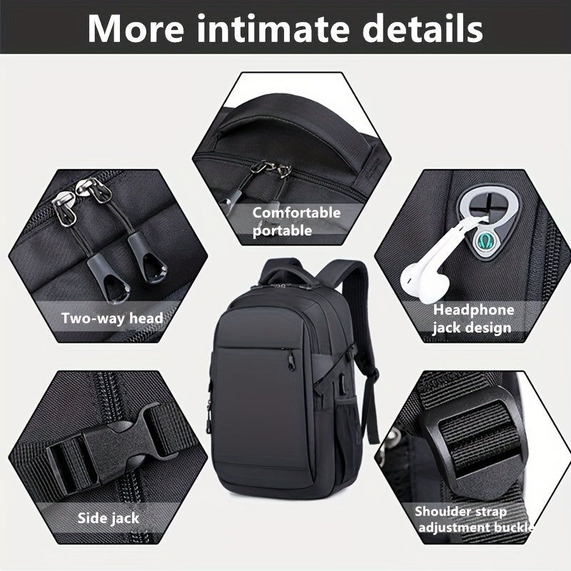 Men's Stylish Black Backpack - Multifunctional Business Laptop Bag with Adjustable Straps, Travel Compartments & Mesh Bottom for Daily Commute, Outdoor Adventures & Work, Business Backpack | Stylish Backpack | Secure Compartm