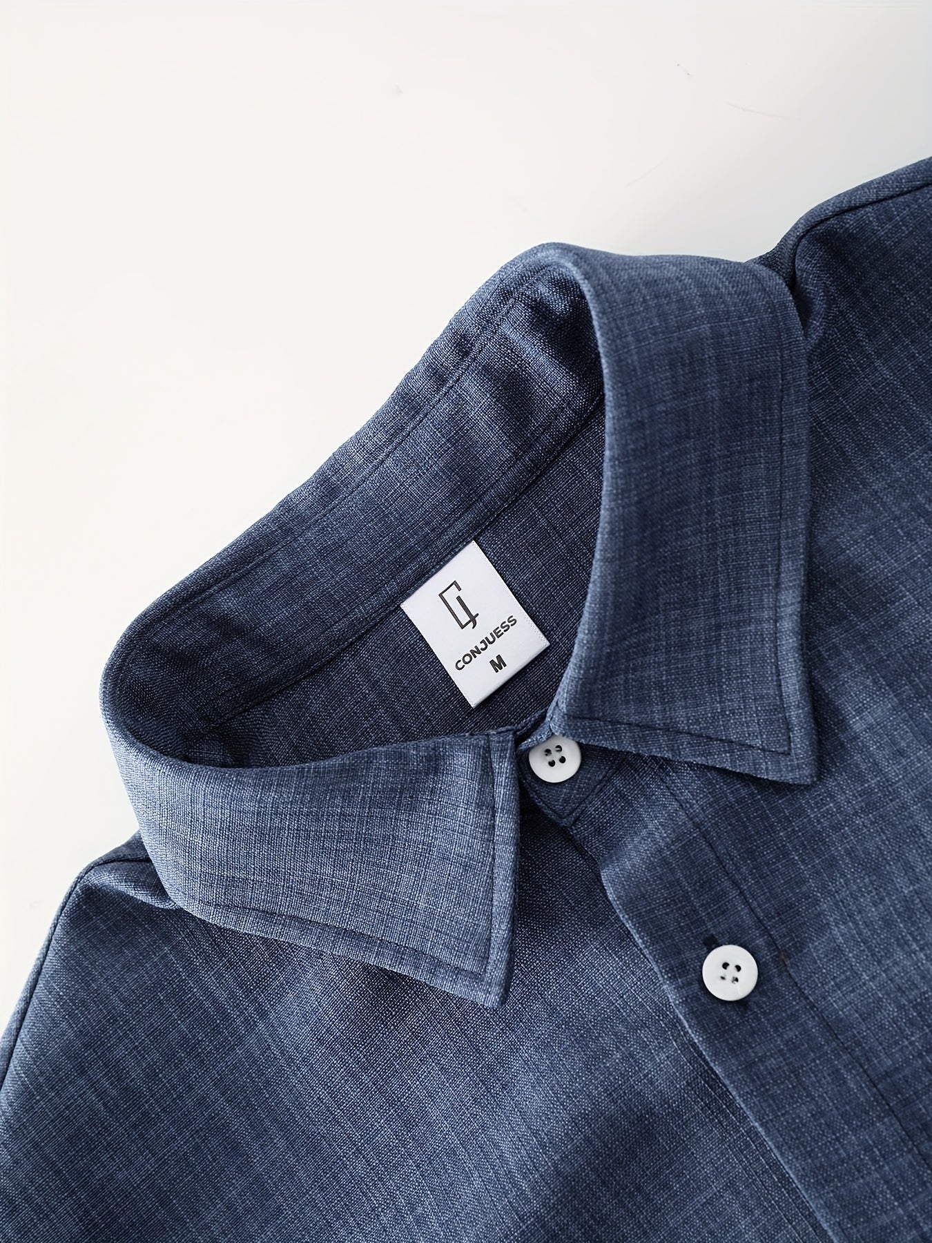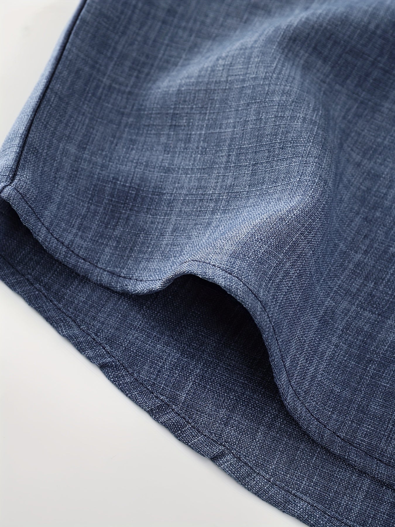 Men'S Summer Casual Short Sleeve Shirt and Drawstring Shorts Set, Solid Color, Lapel Collar, Button Detail, Regular Fit, 100% Polyester, Woven Fabric, Medium Stretch