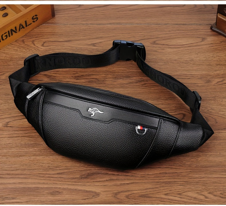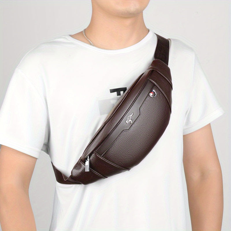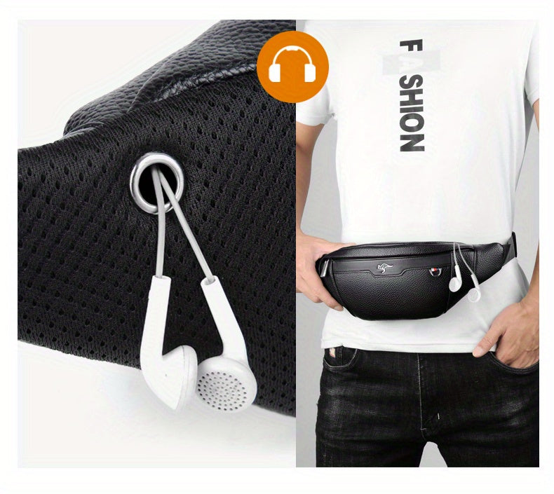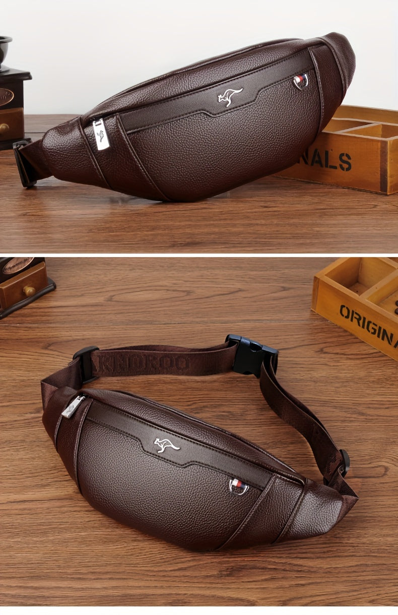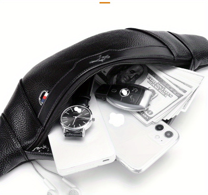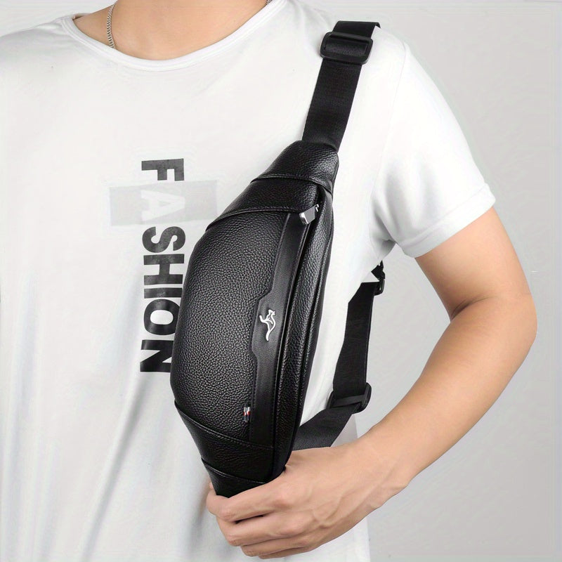 Men's Synthetic Leather Crossbody Bag - Adjustable Strap, Multiple Compartments, Lightweight Waist Pack for Hiking, Cycling & Daily Commute, Black, Cycling Bag | Modern Crossbody Bag | Adjustable Strap Bag