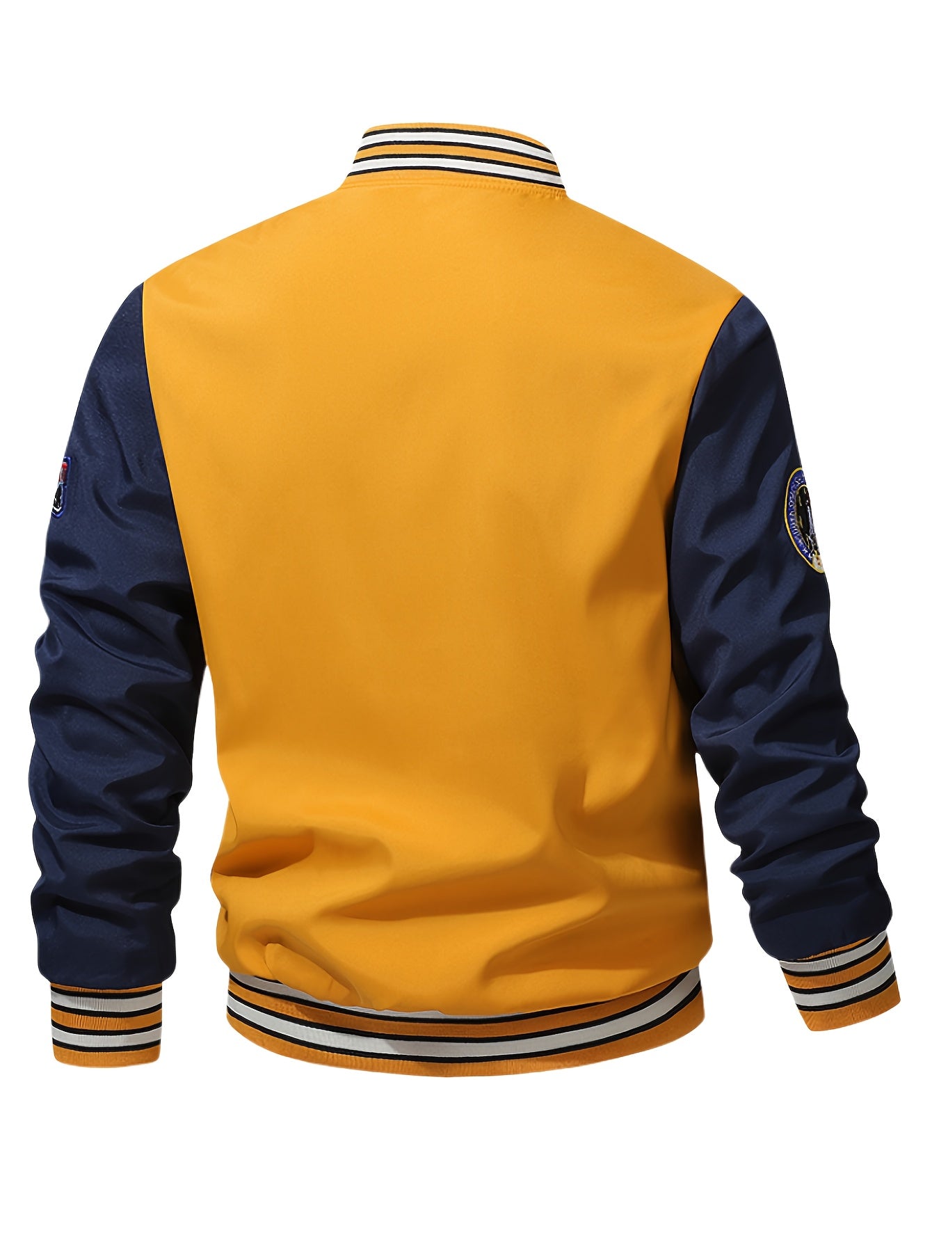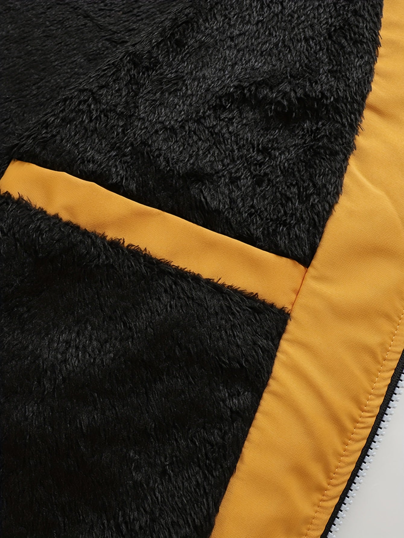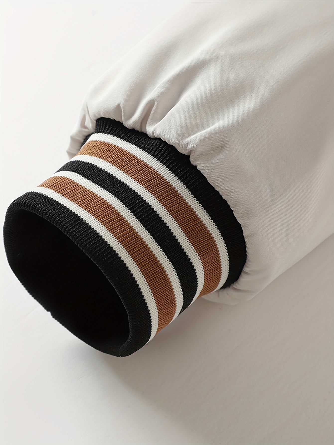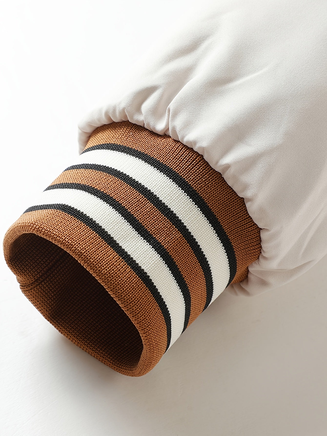 Men's Thermal Insulated Full-Zip Baseball Jacket with Full-Zip Closure - Heavyweight Winter Coat, Brown/White colorblock, Lining - Streetwear Outerwear for Casual & Formal Events - Compatible with Hoodies & Jackets (Men's Fas