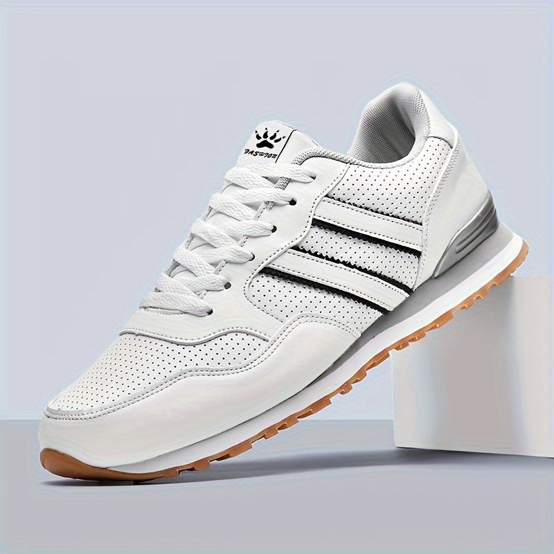 Men's Trendy Sneakers Solid Striped Running Shoes Low Top Lace Up Non Slip Comfy For Jogging Workout Outdoor Casual Activities All Seasons