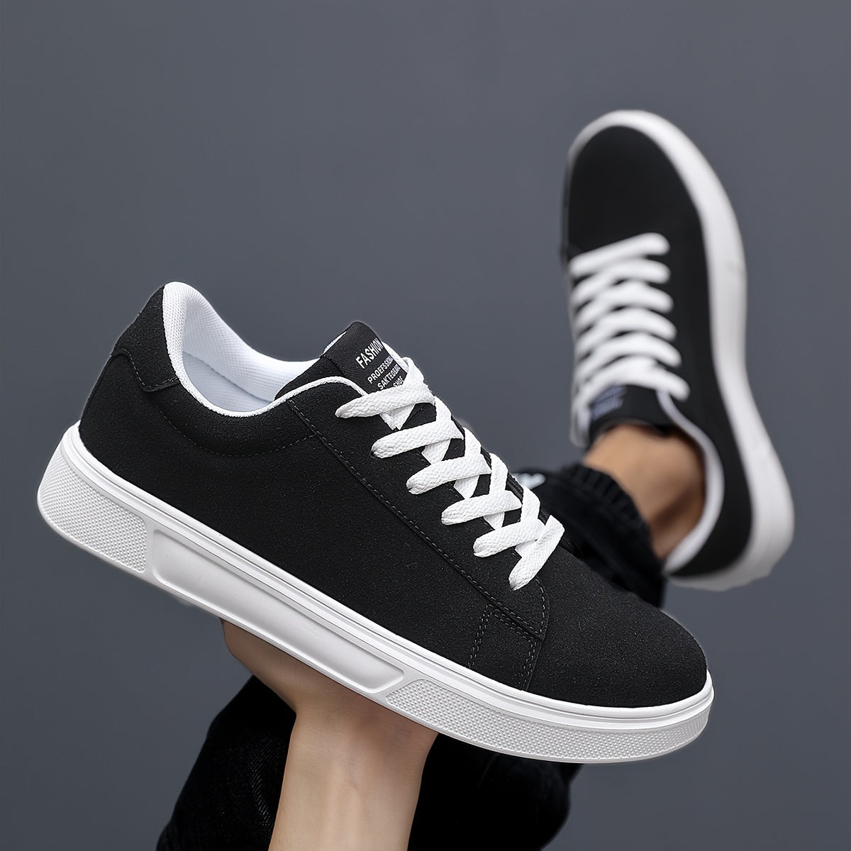 Men's Trendy Solid Skate Shoes, Comfy Non Slip Casual Lace Up Sneakers For Men's Outdoor Activities