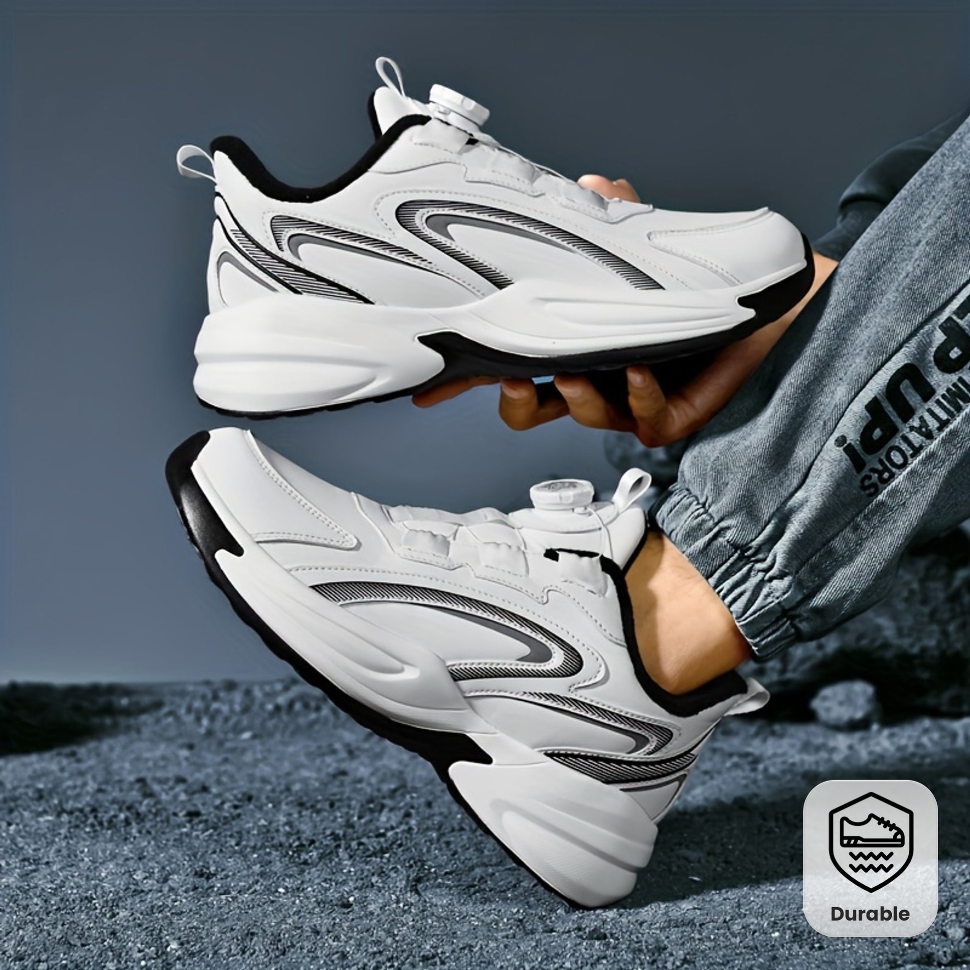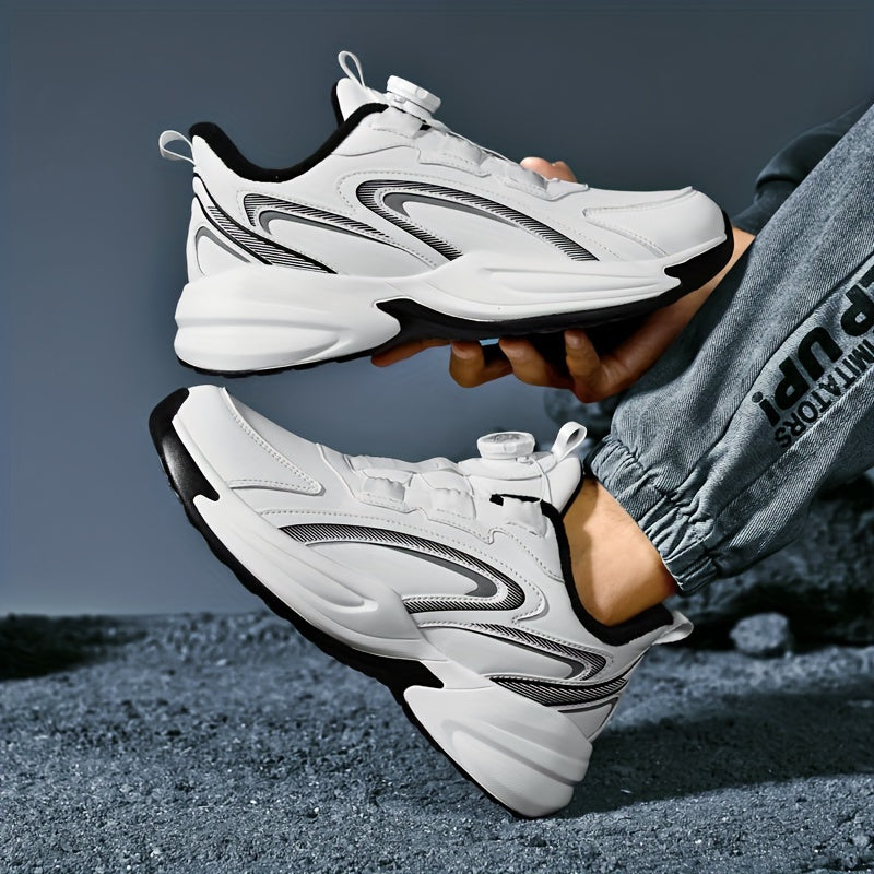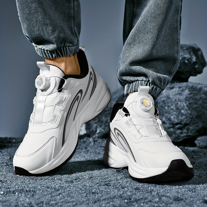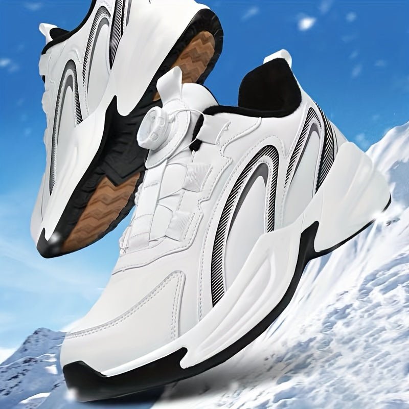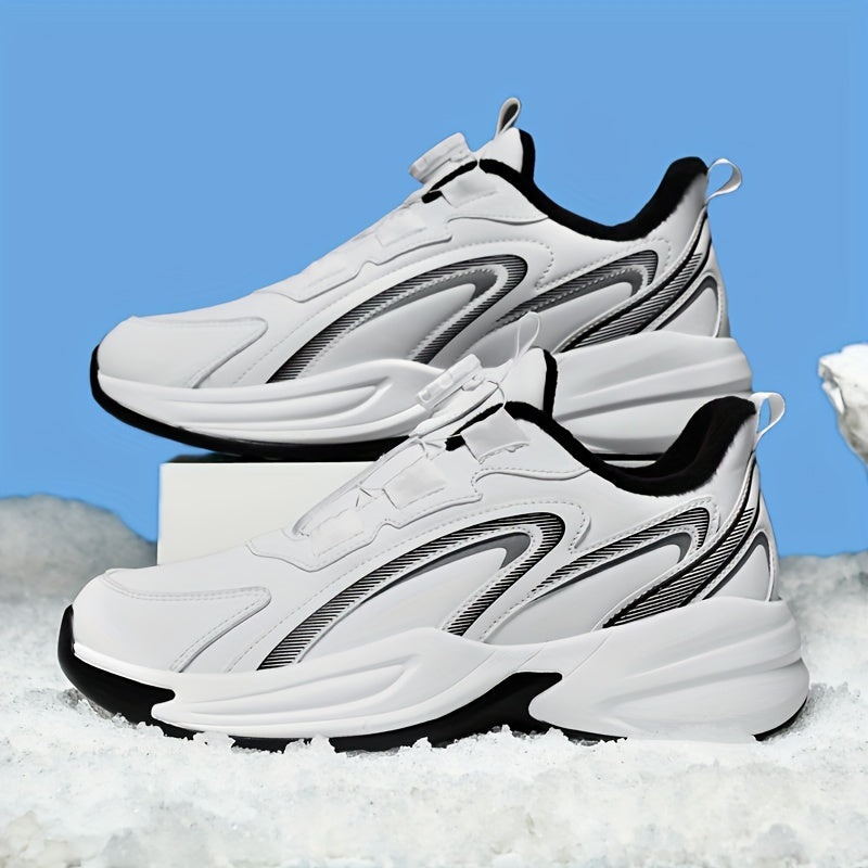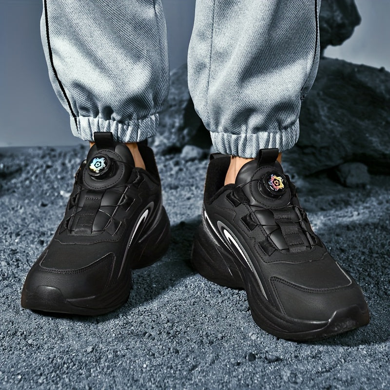 Men's Warm Fleece-Lined Casual Running Shoes - Stylish Black with Blue & Turquoise Accents, Durable Rotating Buckle Closure, Comfortable Non-Slip Sole for Hiking & Outdoor Activities, Fall/Winter