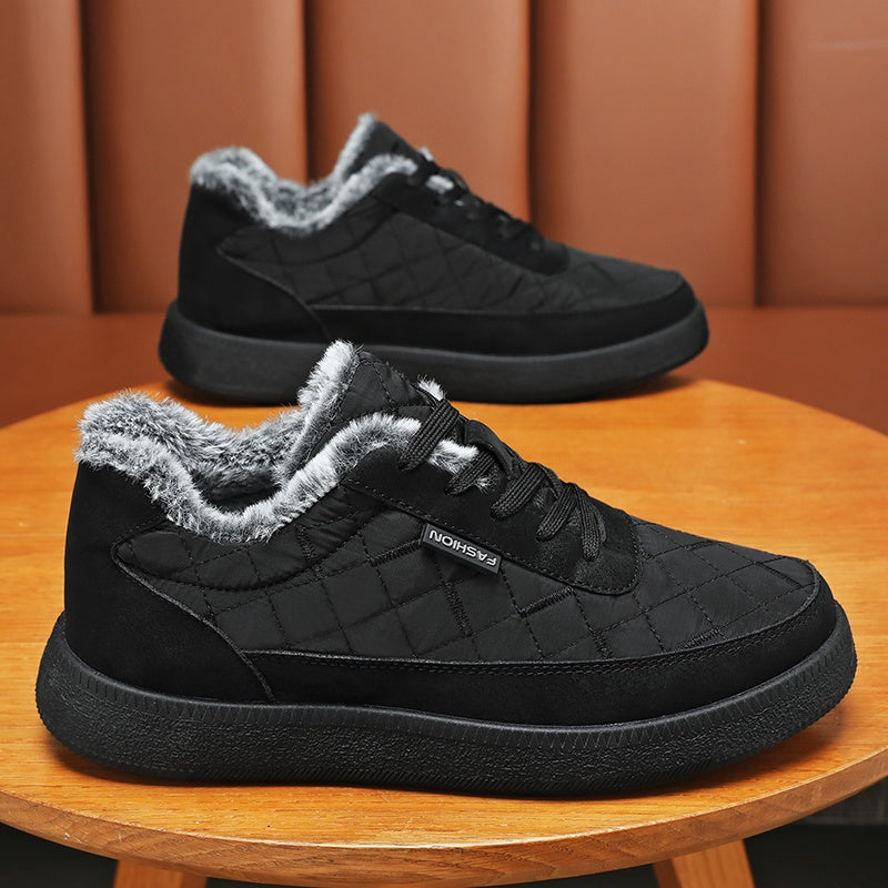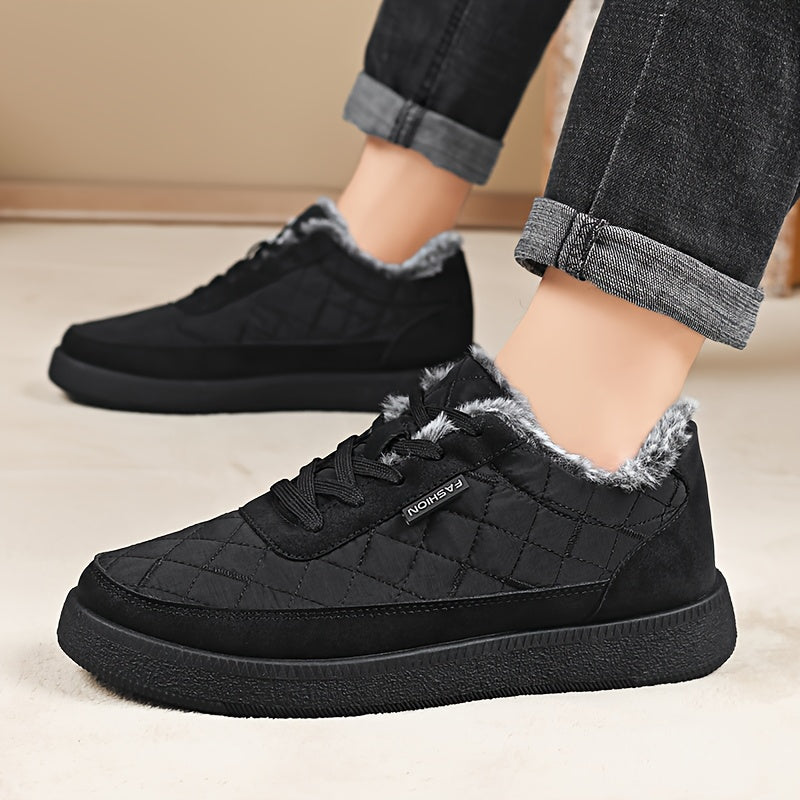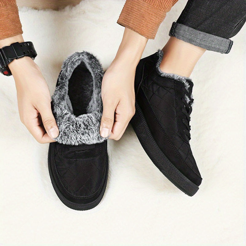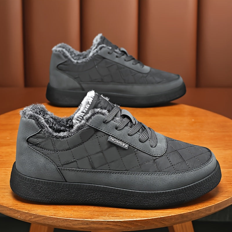 Men'S Winter Boots - Thermal Insulated Cold Weather Shoes with Cushioned Rubber Sole, Lace-Up Ankle Support - Slip-Resistant Traction for Ice, Snow, and Everyday - Low-Top Design in Black/Gray/ - Ideal for Hiking, Travel, Hom