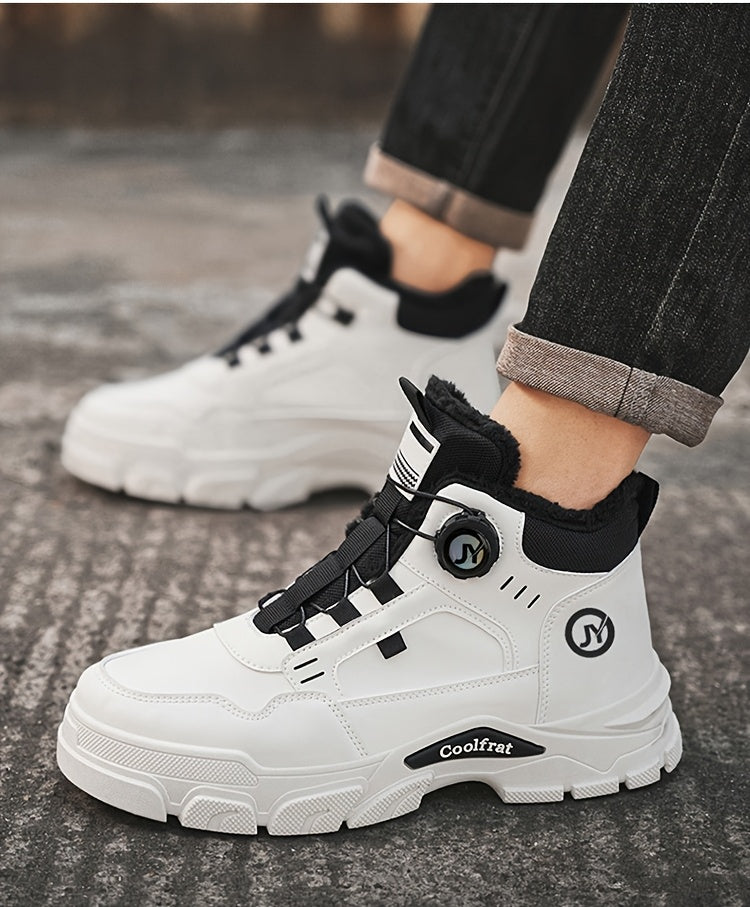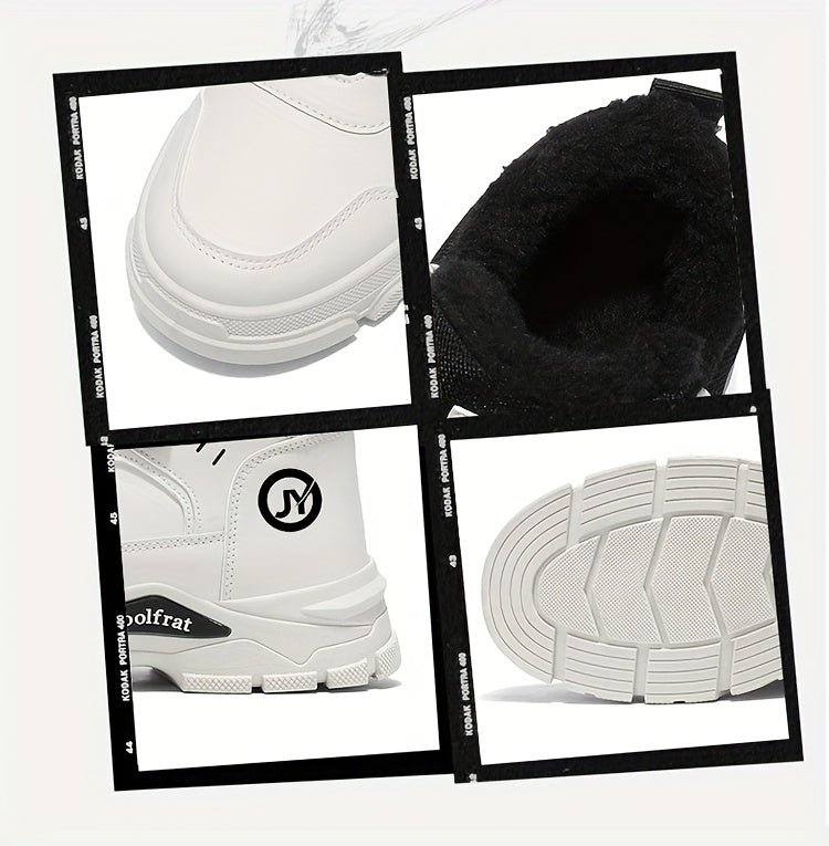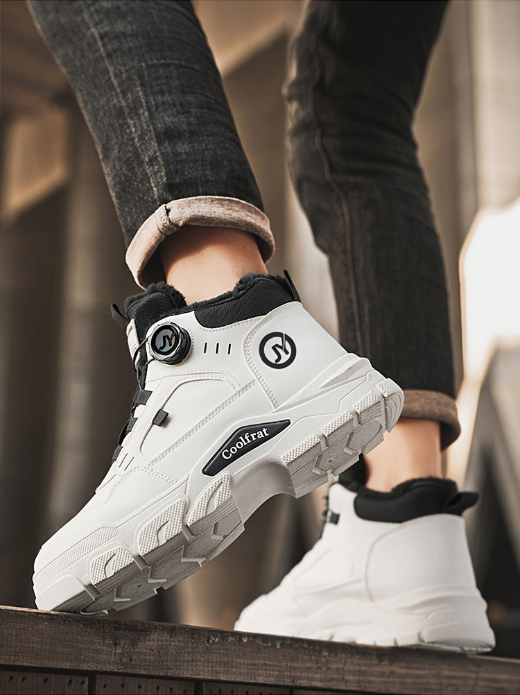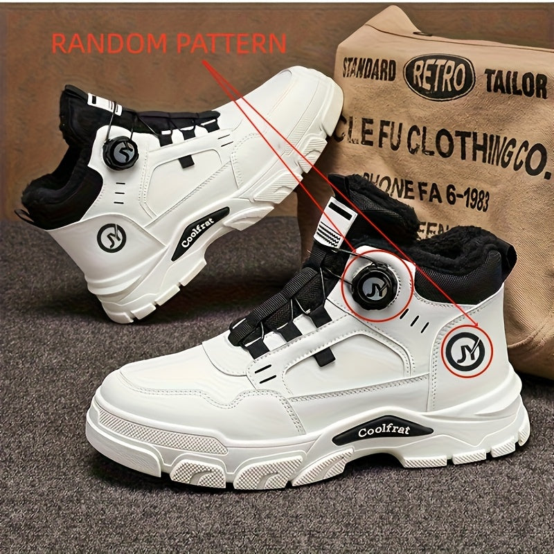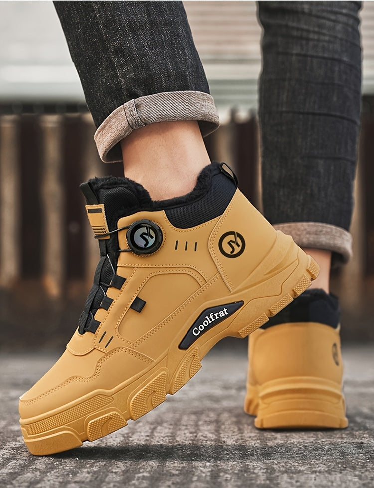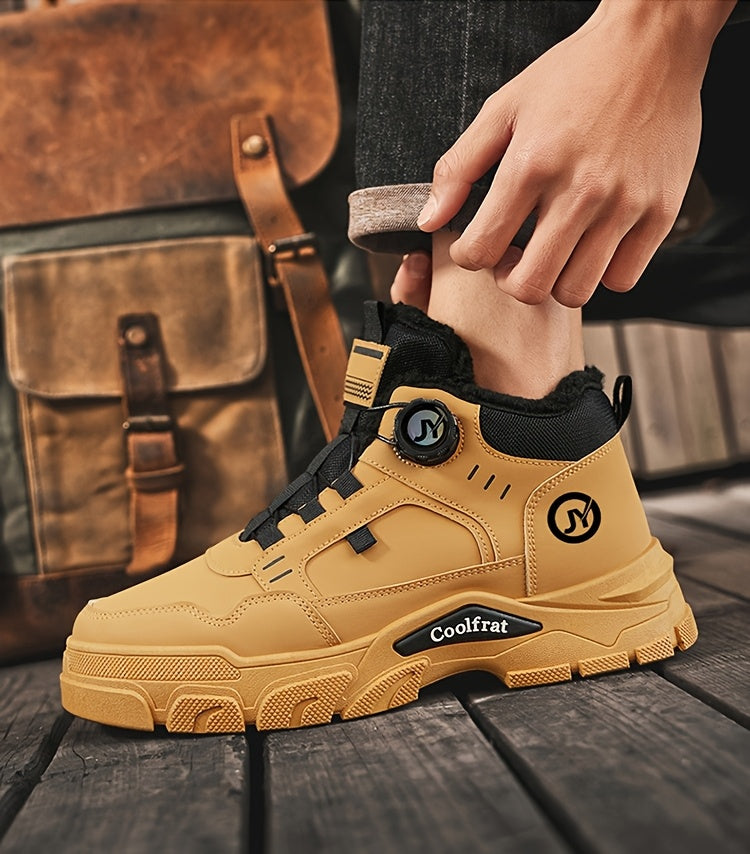 Men'S Winter Fleece-Lined High-Top Boots - Thick Rubber Sole, Warm Lace-Up Ankle Boots with Round Toe & Synthetic Synthetic Faux Upper for Hiking, Outdoor & Casual Wear, Hiking Boots, Durable Footwear, Winter Shoe For Men, Me