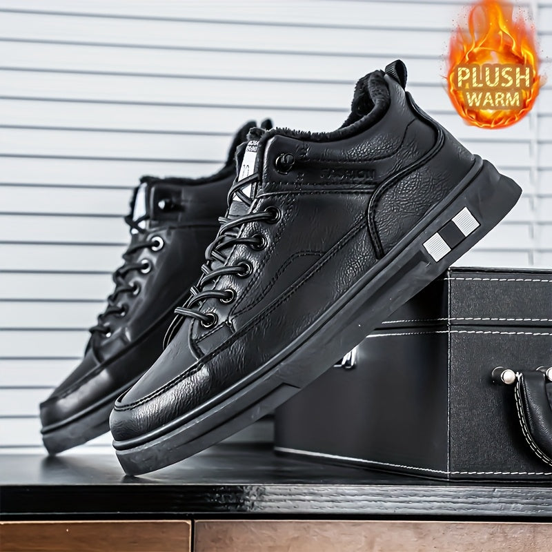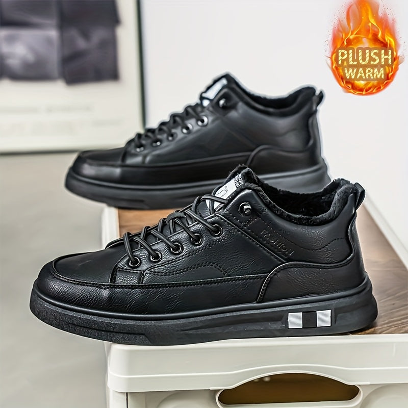 Men'S Winter Warm Fleece-Lined Low-Top Sneakers - Thermal Insulated Snow Boots with Arch Support, Lace-Up Closure, Non-Slip PVC Sole - All-Season Outdoor Hiking