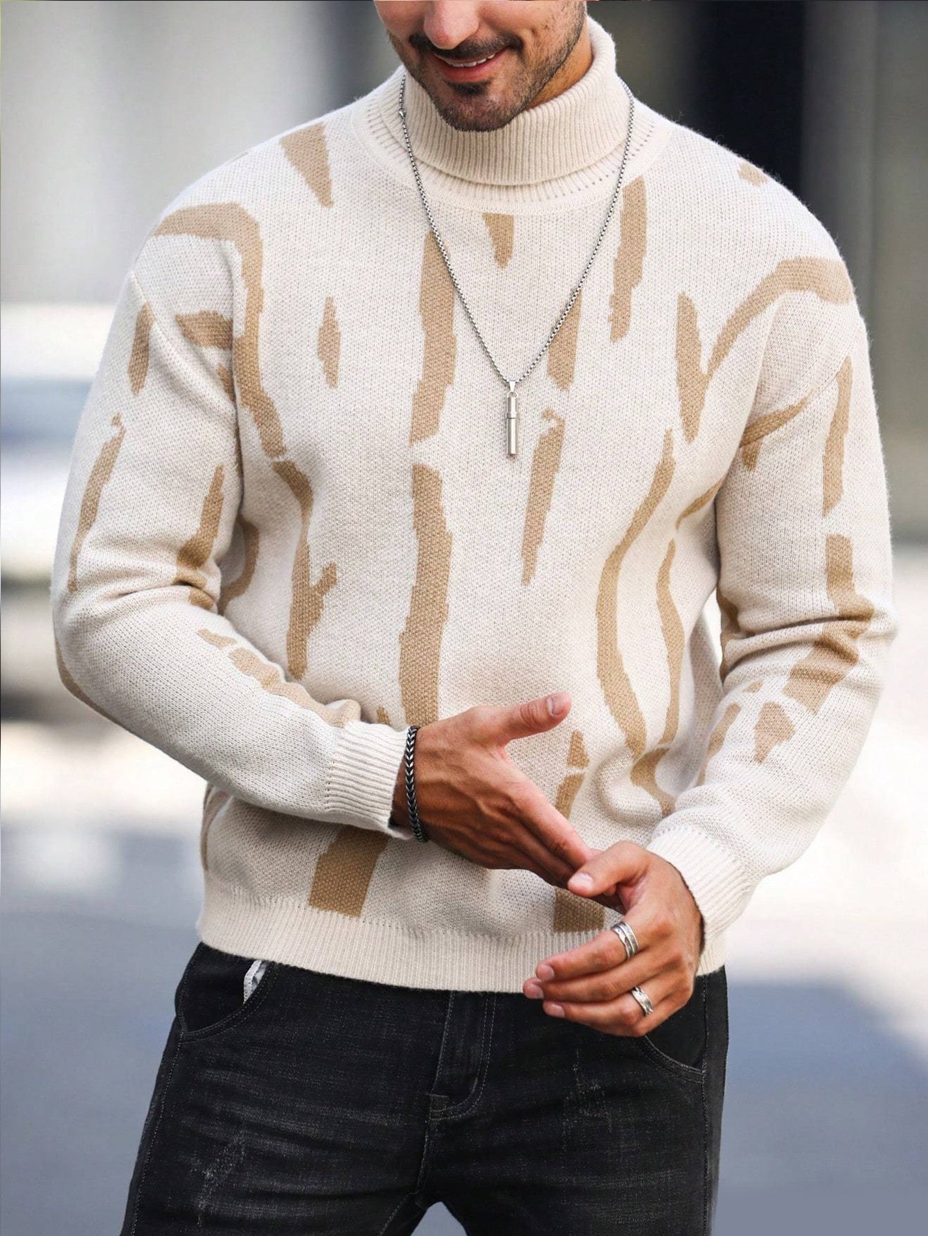 Men's Zebra Stripe Knit Sweater - High Neck Winter Pullover with Zebra Stripes, Warm Casual Sweaters for Weather, Hand Washable Fall/Winter Wardrobe Essential (Regular Fit)