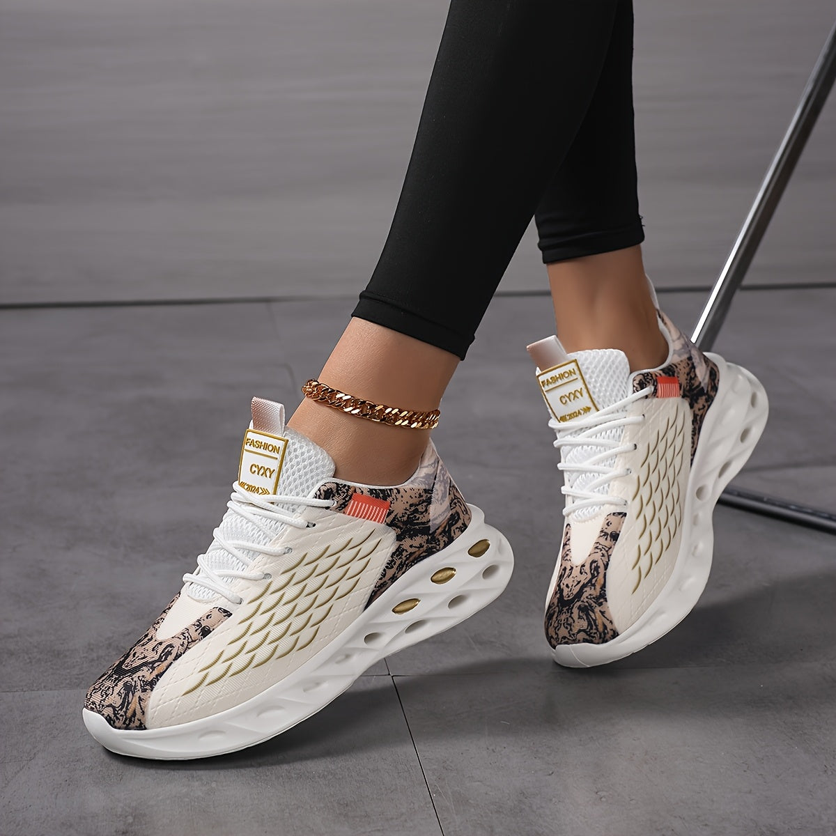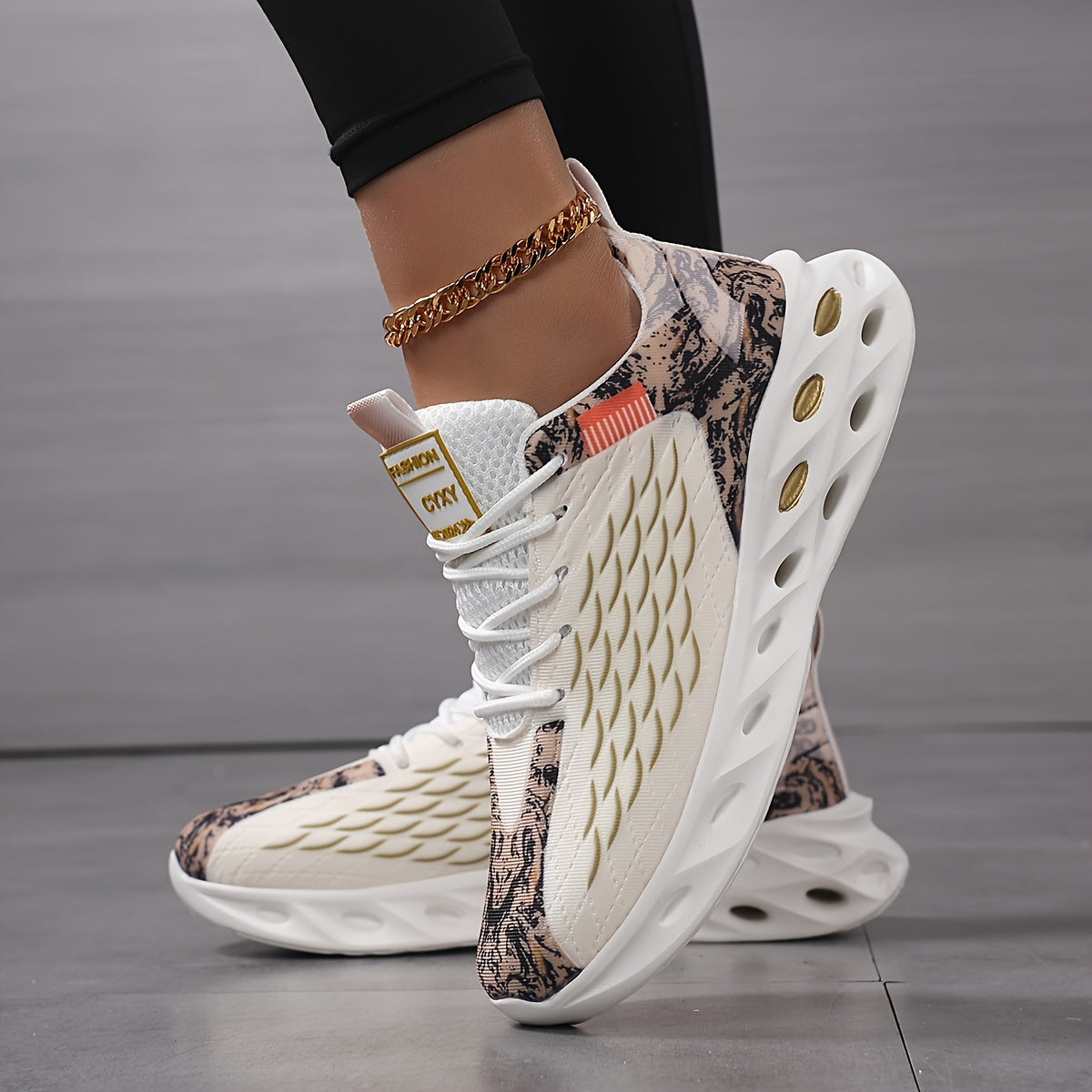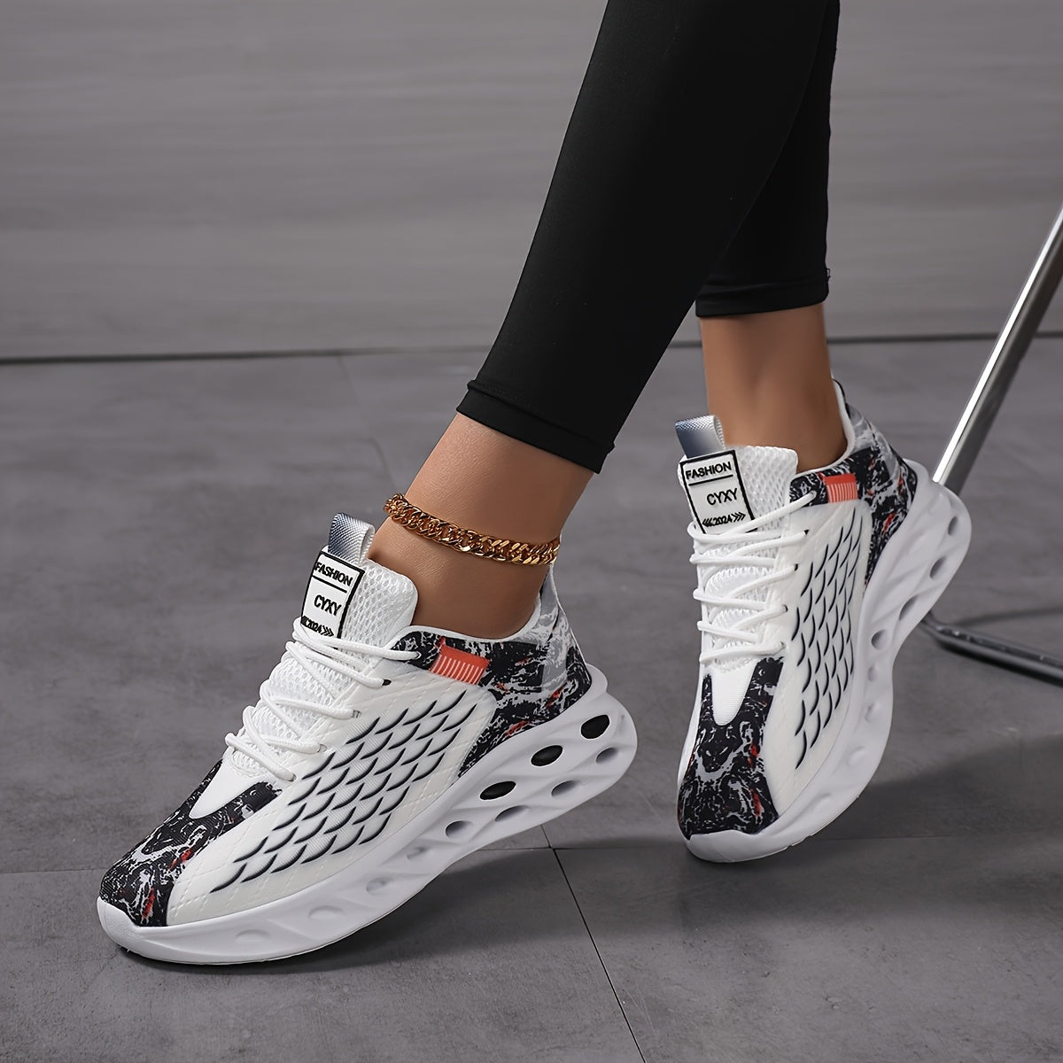 New Fish Scale Large Size Women's Couple Lace-Up Breathable Knitted Running Shoes, Fashion Casual Trendy Sports Sneakers with Perforated Soles and Comfortable High-Top Coconut Design