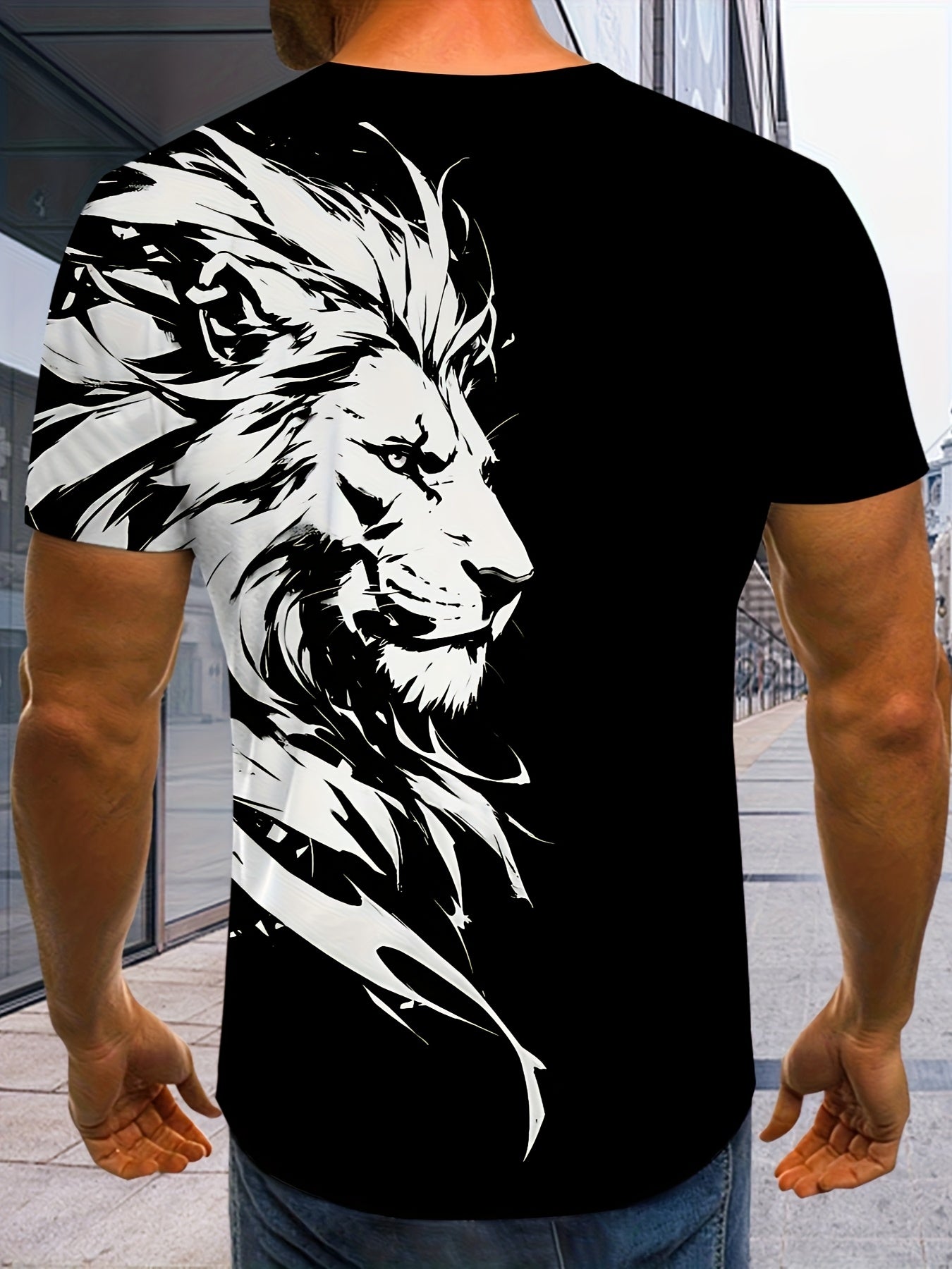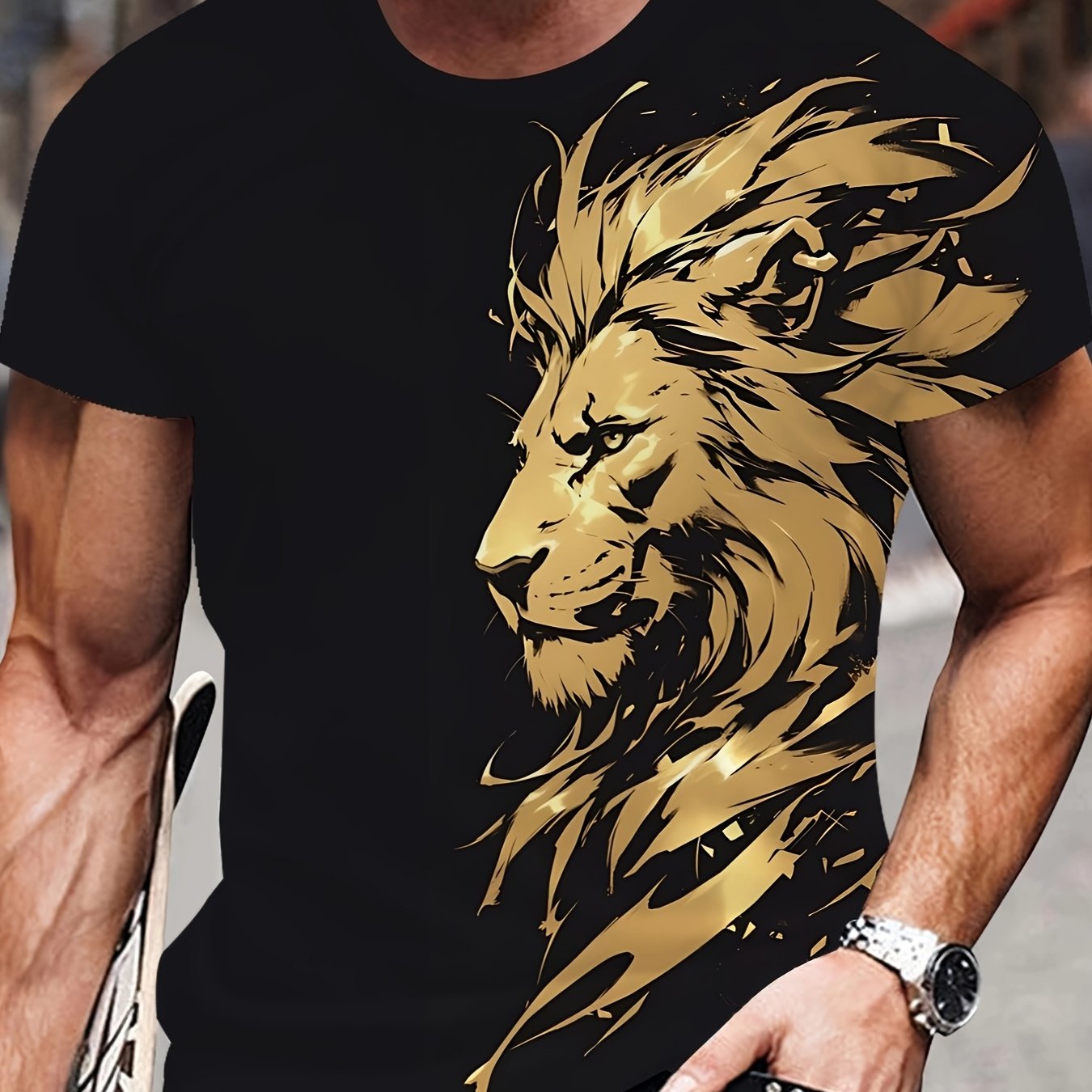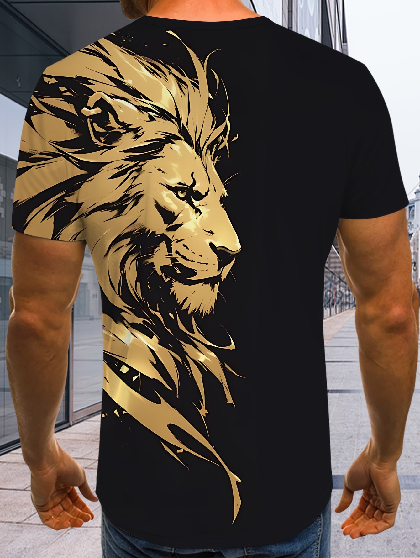 New Lion 3D Print Pattern, Casual Short Sleeve Round Neck T-Shirt, Outdoor Men's Clothing