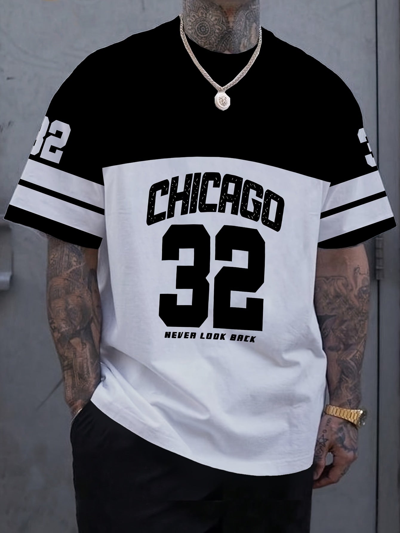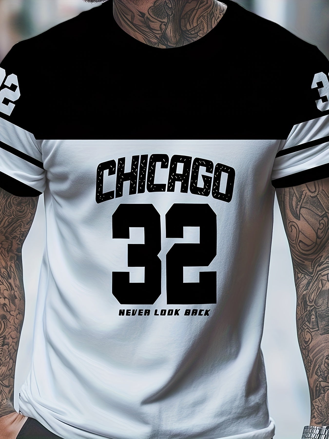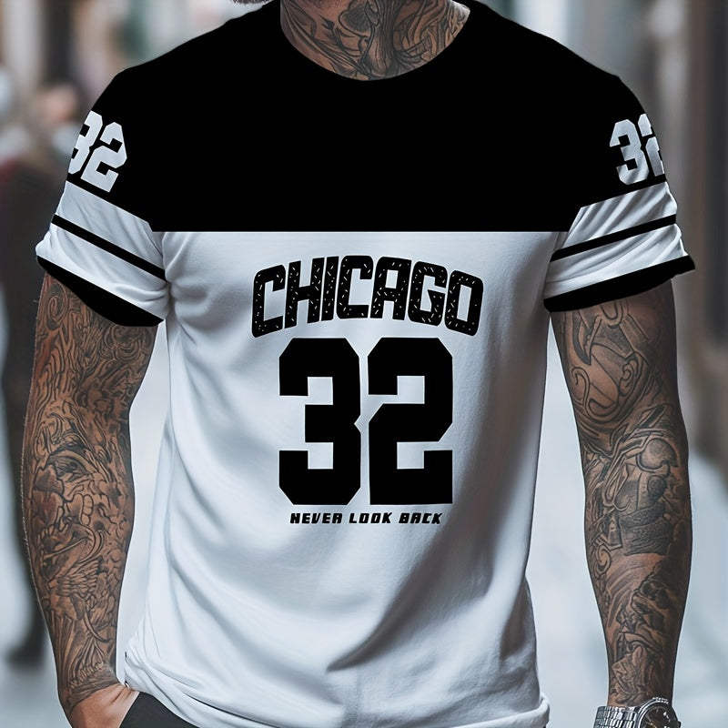 OBM Men's Chicago 32 Graphic Print T-Shirt - 100% Polyester Casual Short Sleeve Tee with Bold Numerals, Machine Washable Summer Streetwear Top, Chicago T Shirt, Urban Style, Sporty Look, Durable Material, Urban Lifestyle