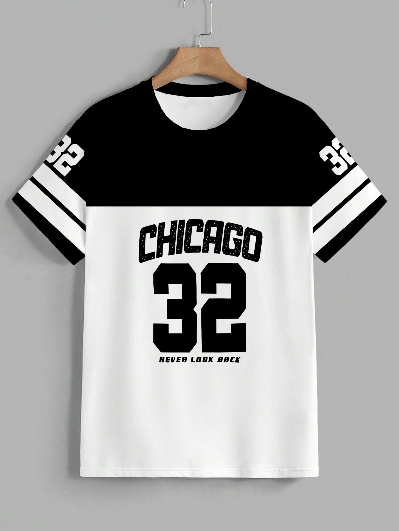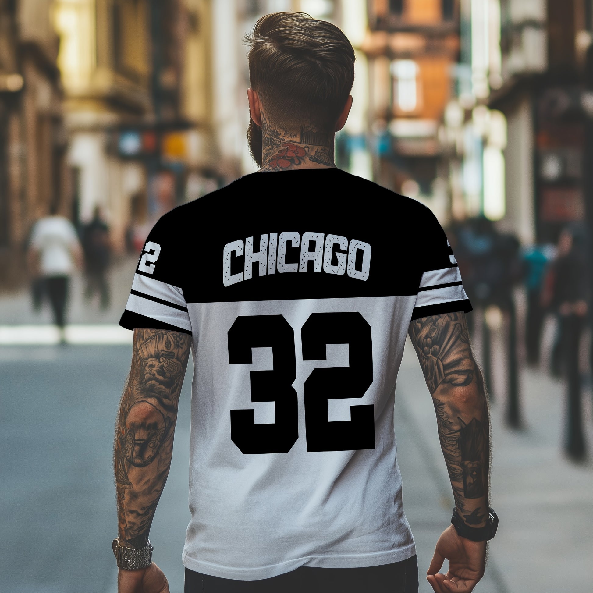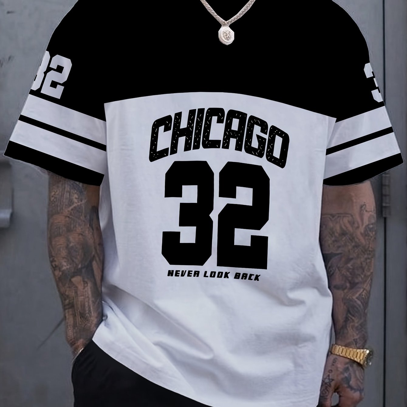 OBM Men's Chicago 32 Graphic Print T-Shirt - 100% Polyester Casual Short Sleeve Tee with Bold Numerals, Machine Washable Summer Streetwear Top, Chicago T Shirt, Urban Style, Sporty Look, Durable Material, Urban Lifestyle
