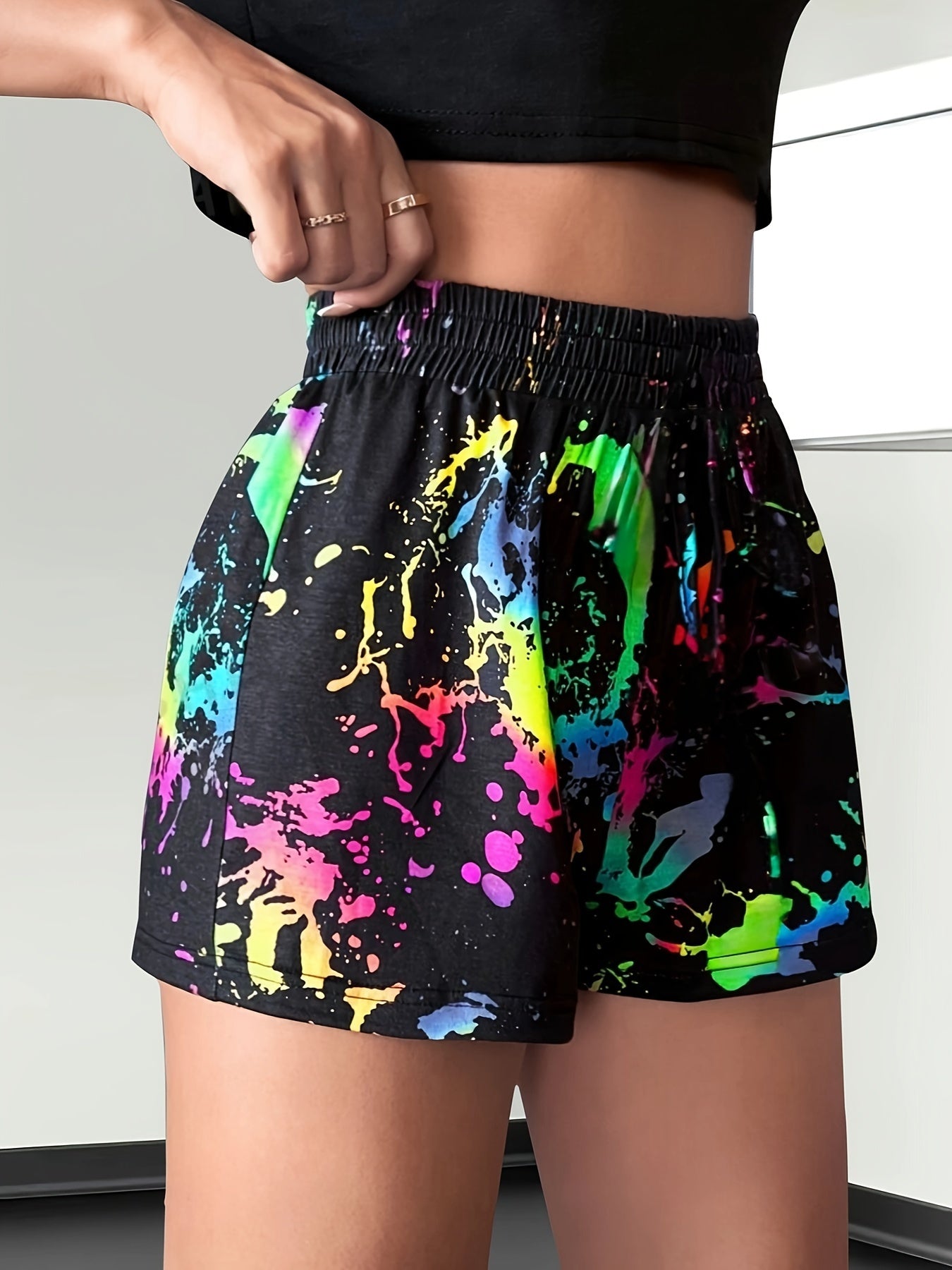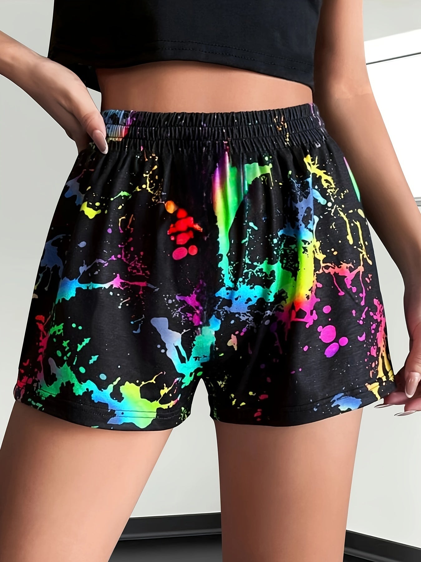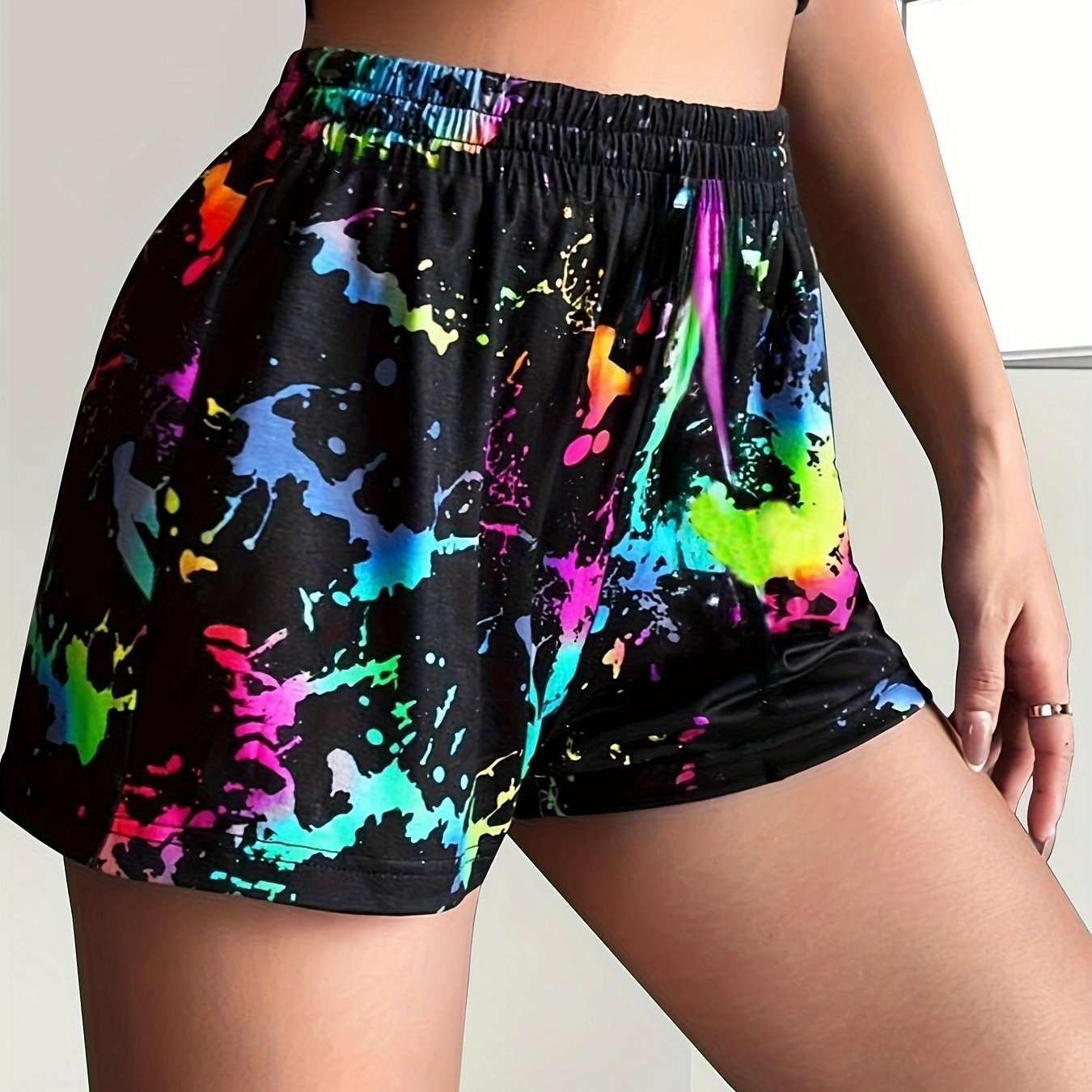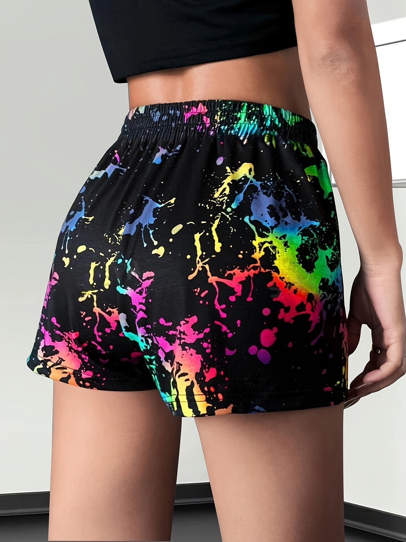 Patchwork Print Elastic Waist Shorts, Casual Skinny Shorts For Spring & Summer, Women's Clothing