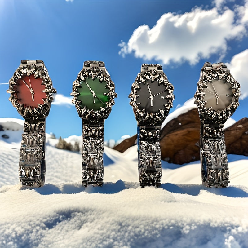 PINTIME Men'S Fashion Vintage Style Quartz Watch, Round Dial, Alloy Case, Pointer Date Display, Battery Powered, Non-Rechargeable Button Battery, with Calendar, for Men, Birthday Gift, Father'S Day, Mardi Gras Day, Campus Wea