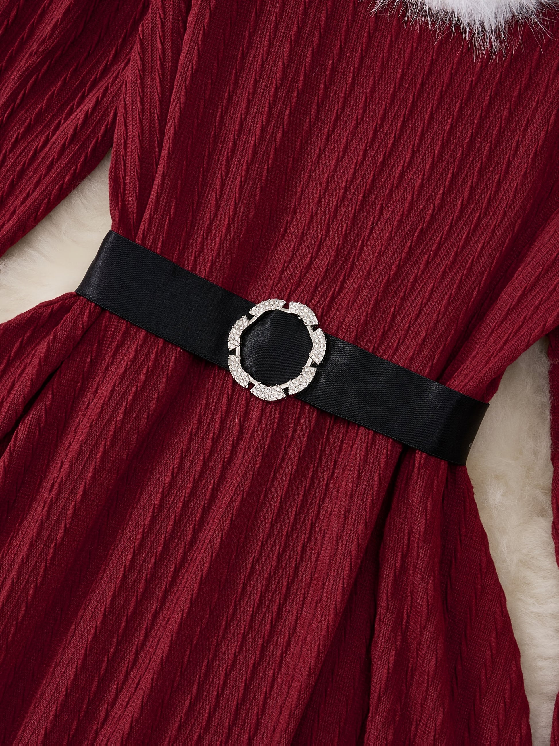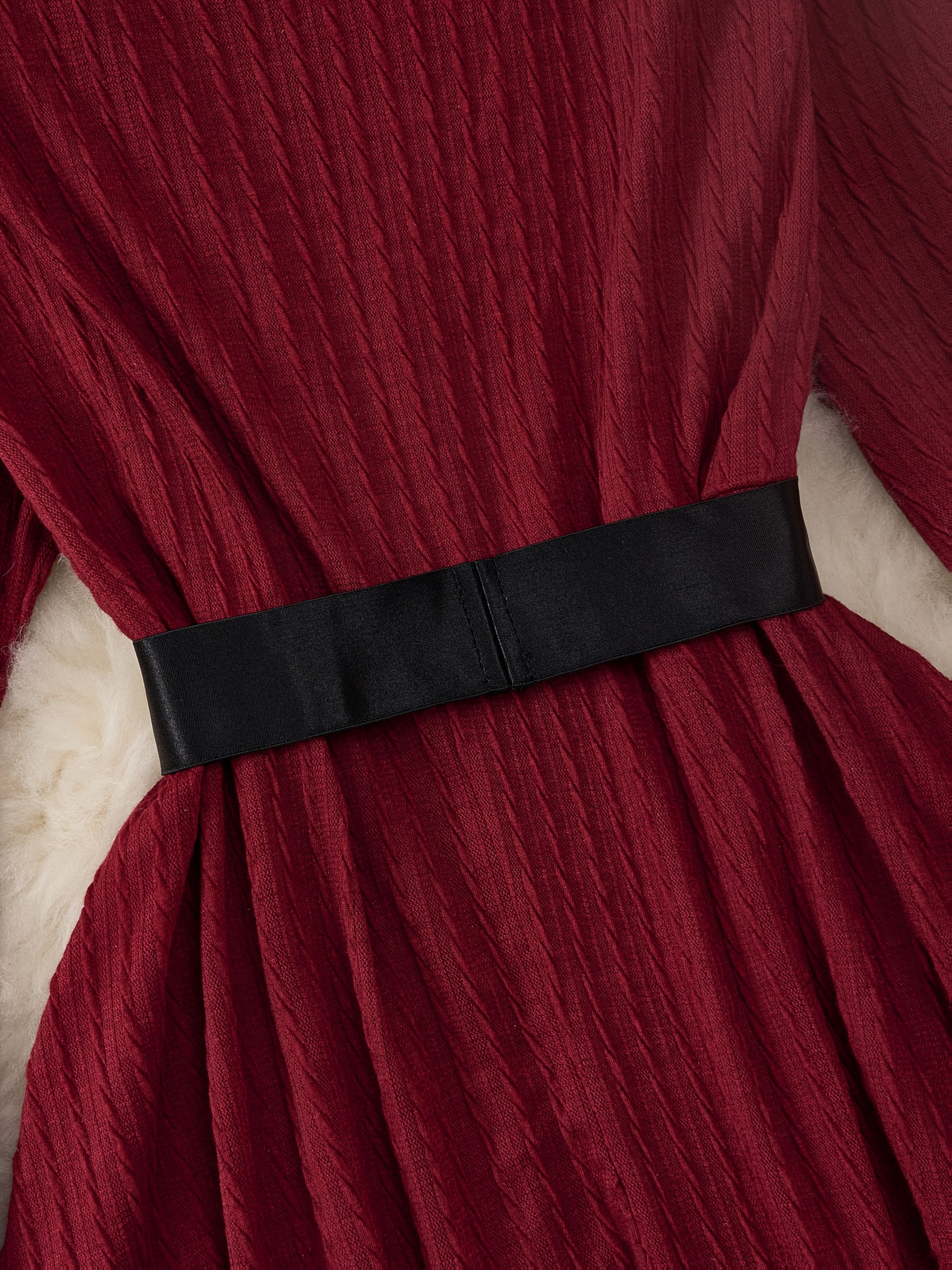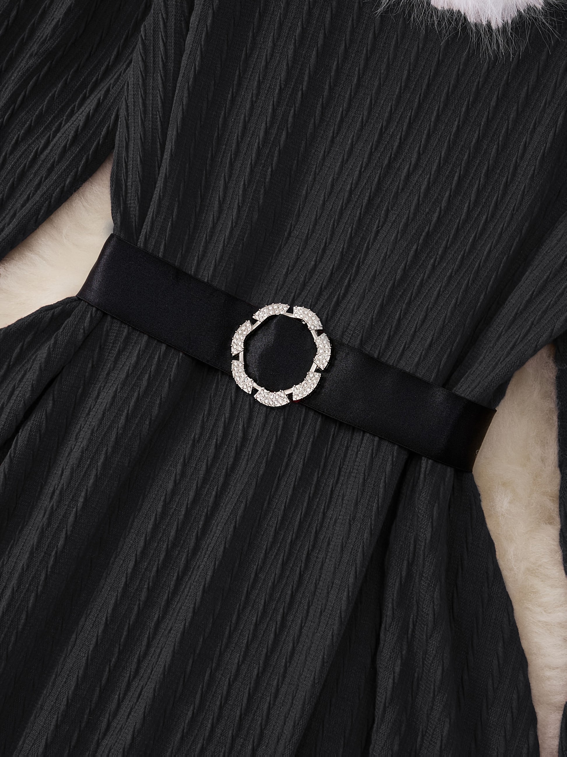 Plus Size - Plus Size, Women'S Elegant Formal Party Dress - Long Sleeve V-Neck with Adjustable Waist Belt, Flared Skirt - Elegant Evening Gown for Christmas, Galas, Weddings - Plus Size Friendly - Black Formal Attire, Formal
