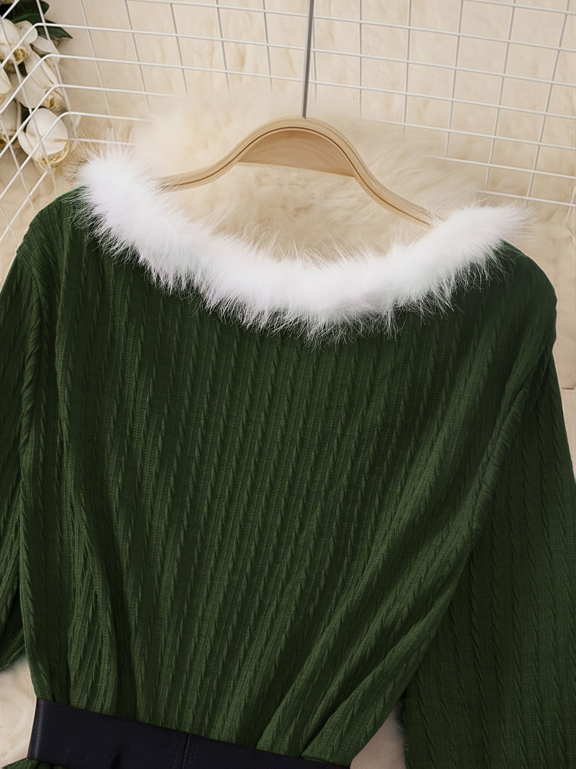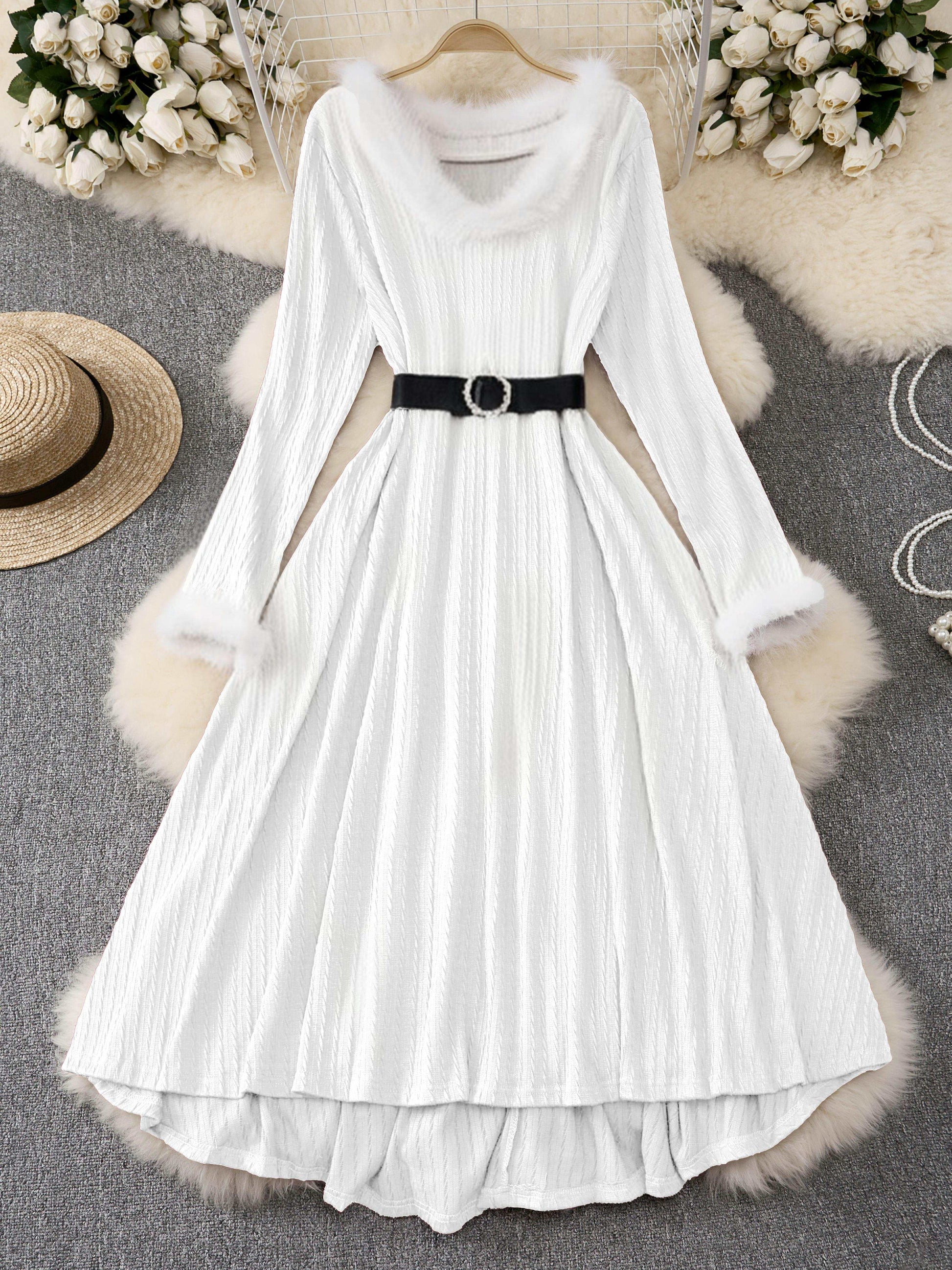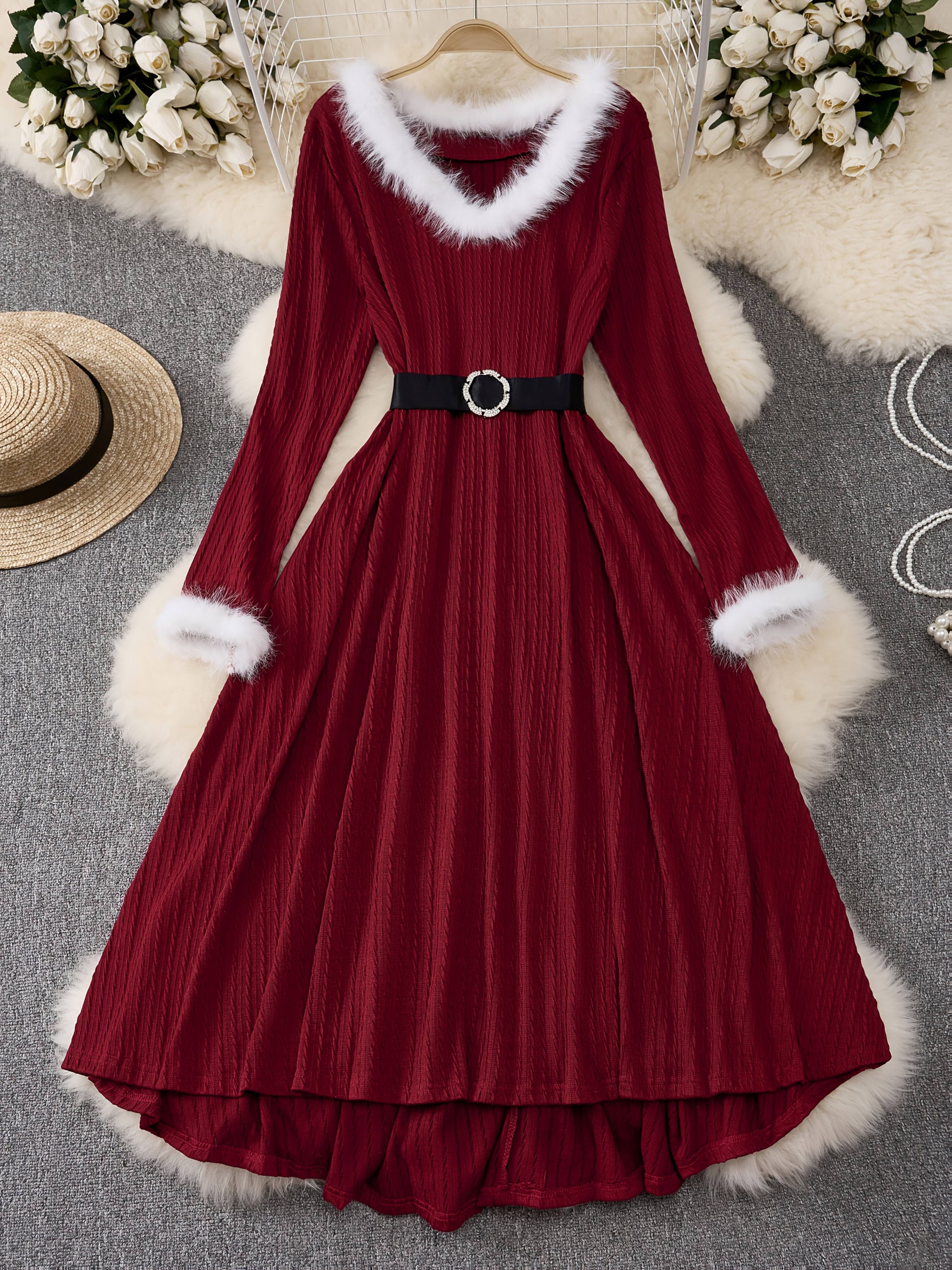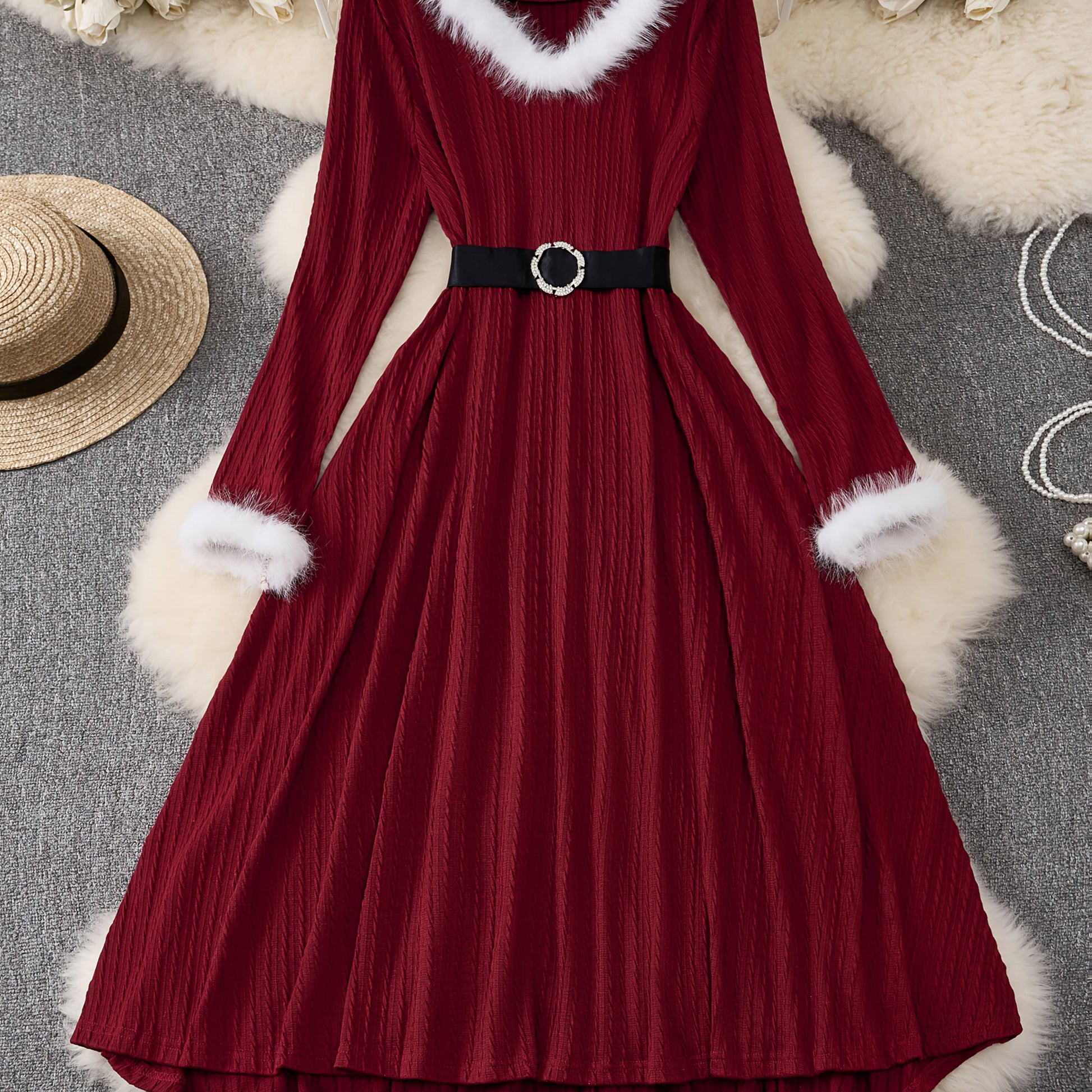 Plus Size - Plus Size, Women'S Elegant Formal Party Dress - Long Sleeve V-Neck with Adjustable Waist Belt, Flared Skirt - Elegant Evening Gown for Christmas, Galas, Weddings - Plus Size Friendly - Black Formal Attire, Formal
