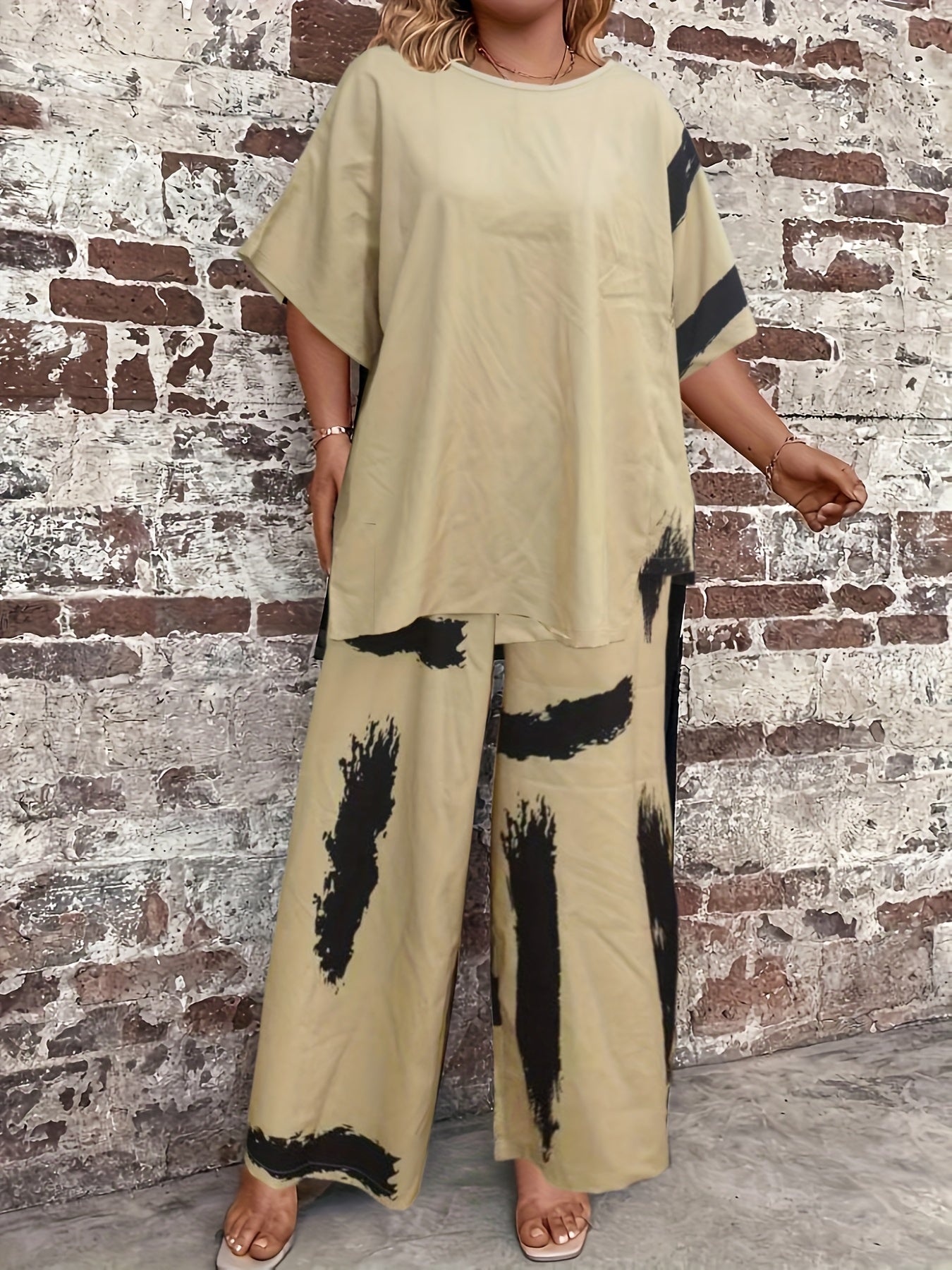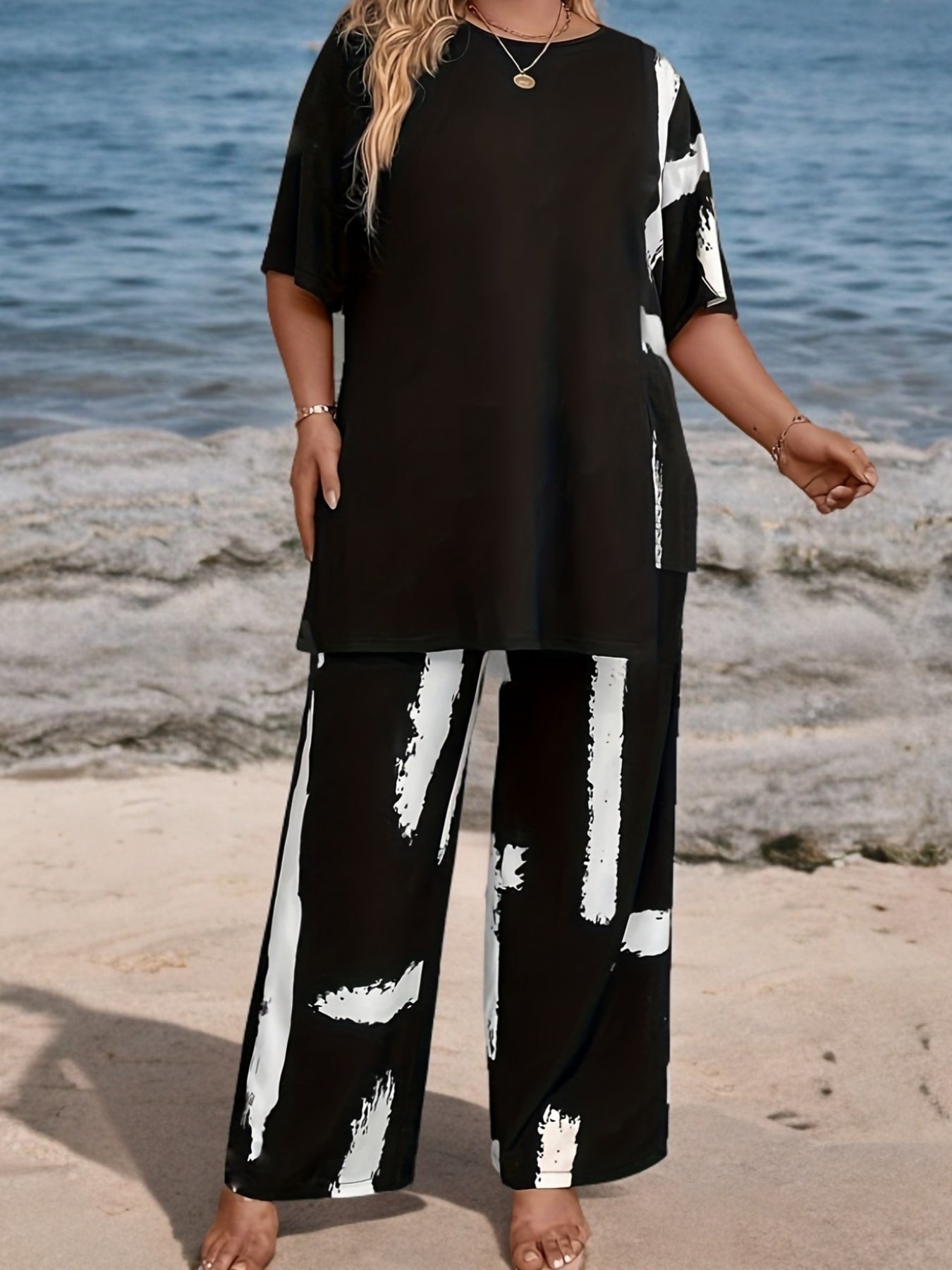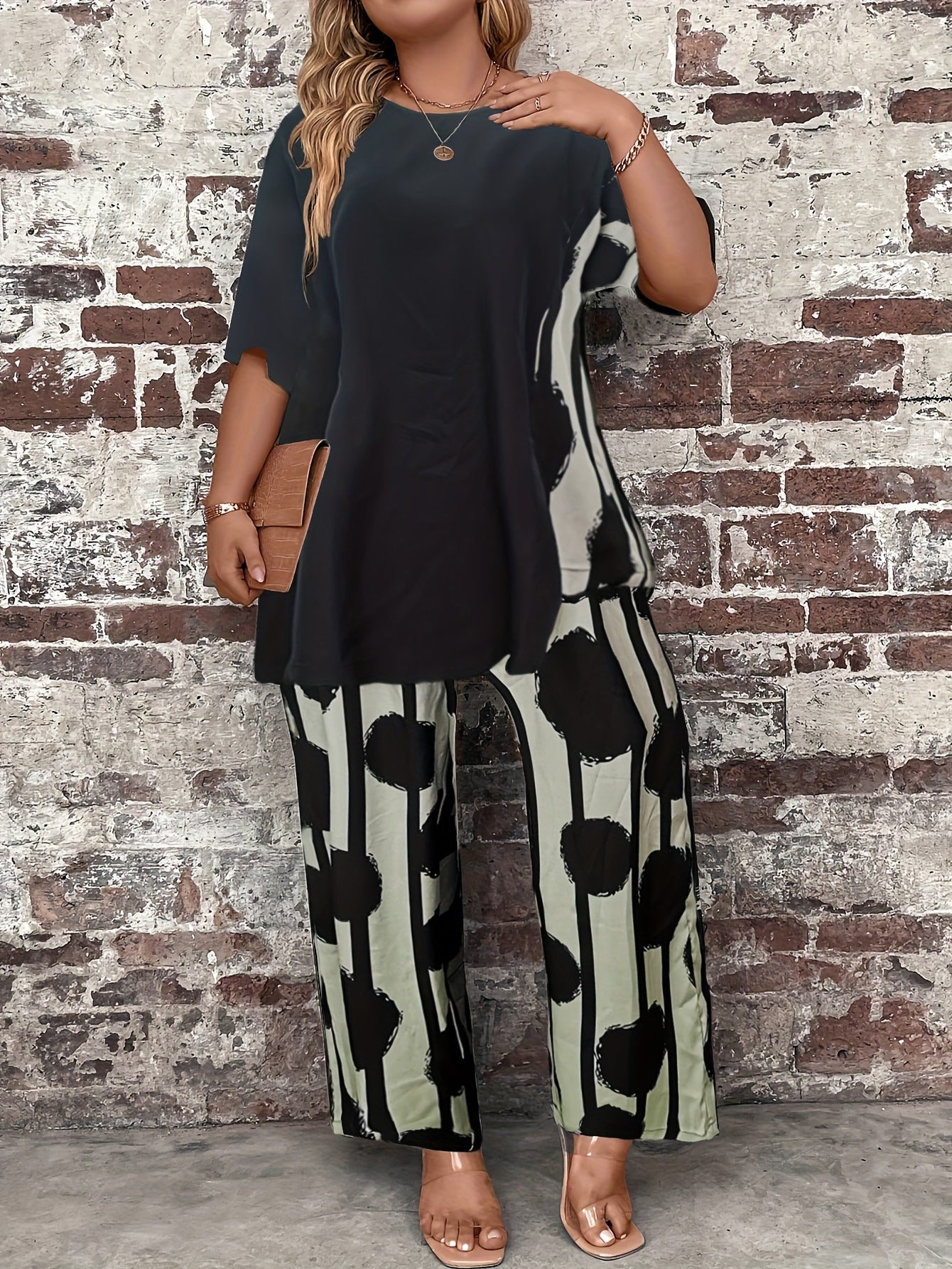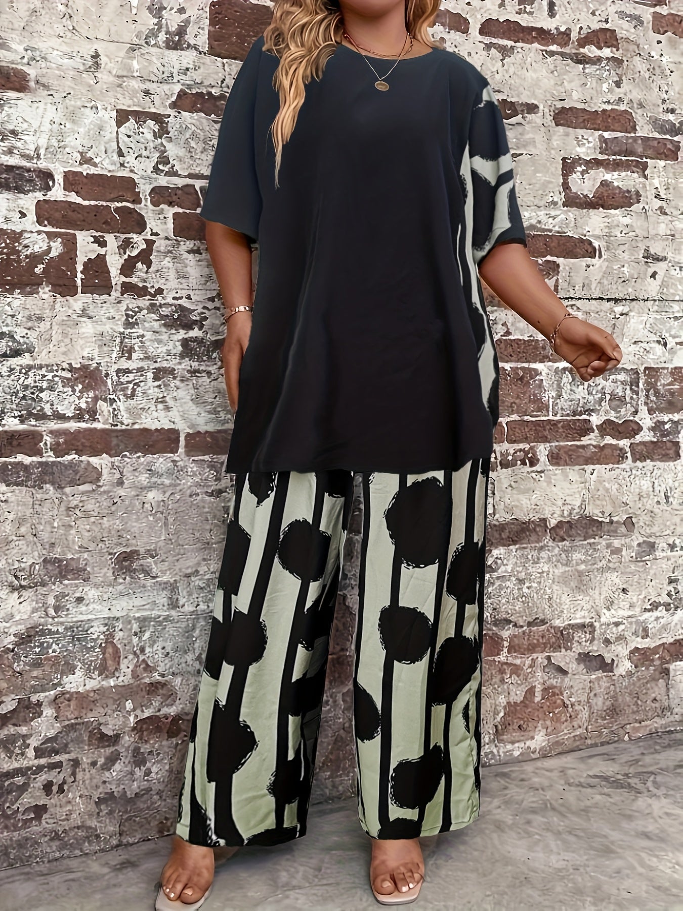 Plus Size Women'S Black Printed Sweater Set - Casual Long Sleeve Pullover with "LOVE" Design, Wide Leg Pants, Non-Stretch Fabric, Perfect for Fall & Winter, Autumn Winter Wear|Casual Style|Comfortable Fit