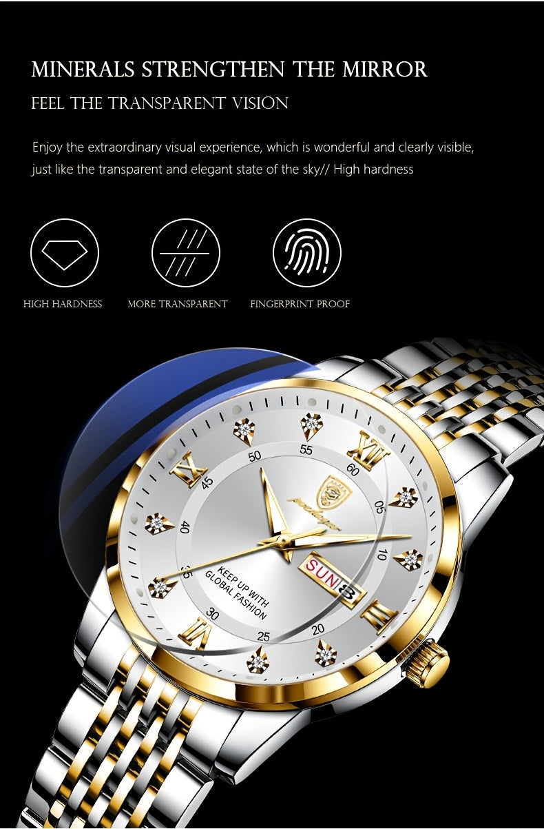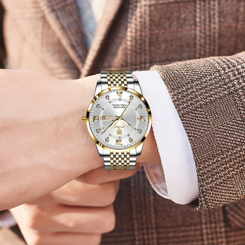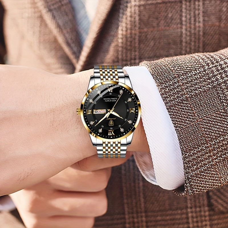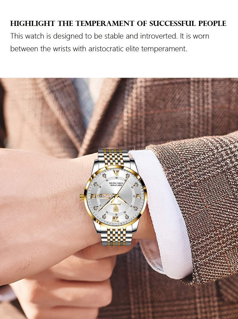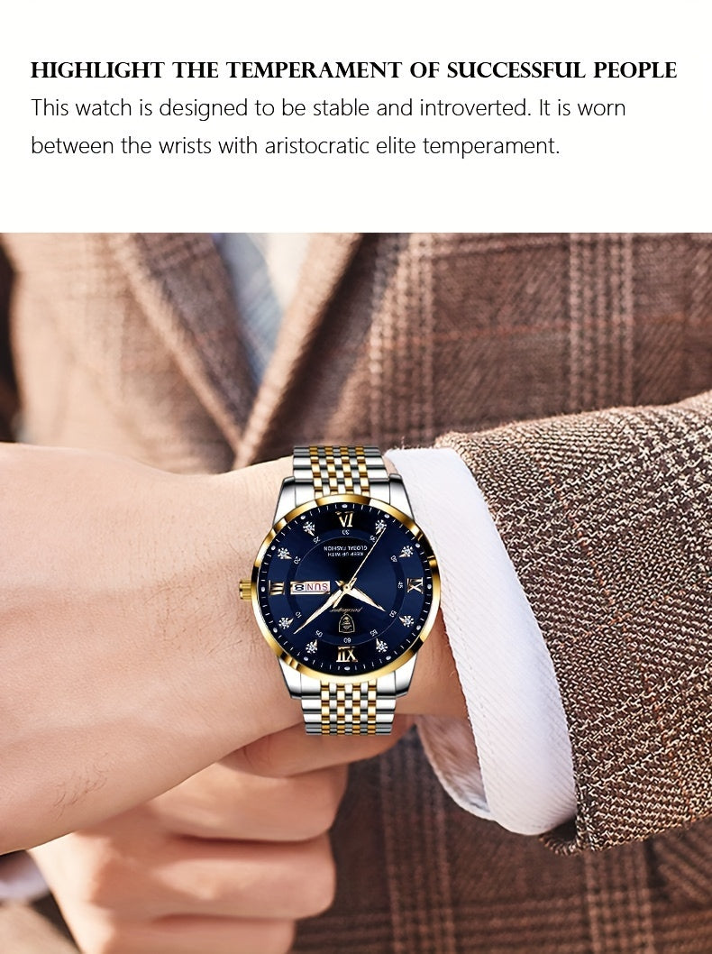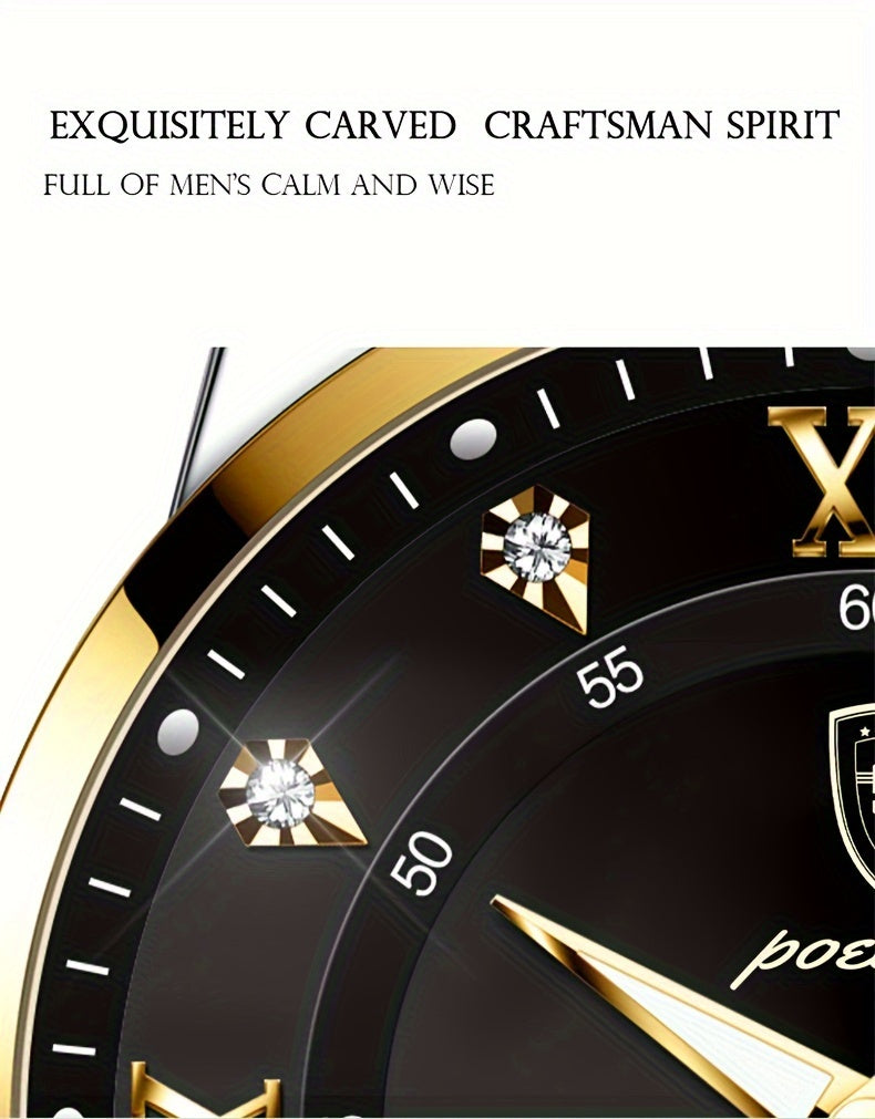 POEDAGAR Classic Men'S Stainless Steel Quartz Watch, IPX8 Luminous Weekly Calendar Watch for Men, Perfect Gift Option, Suitable for Women