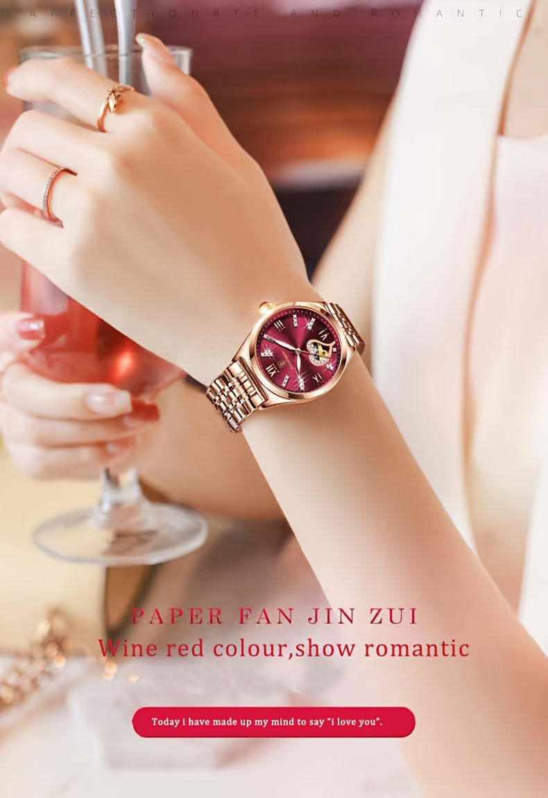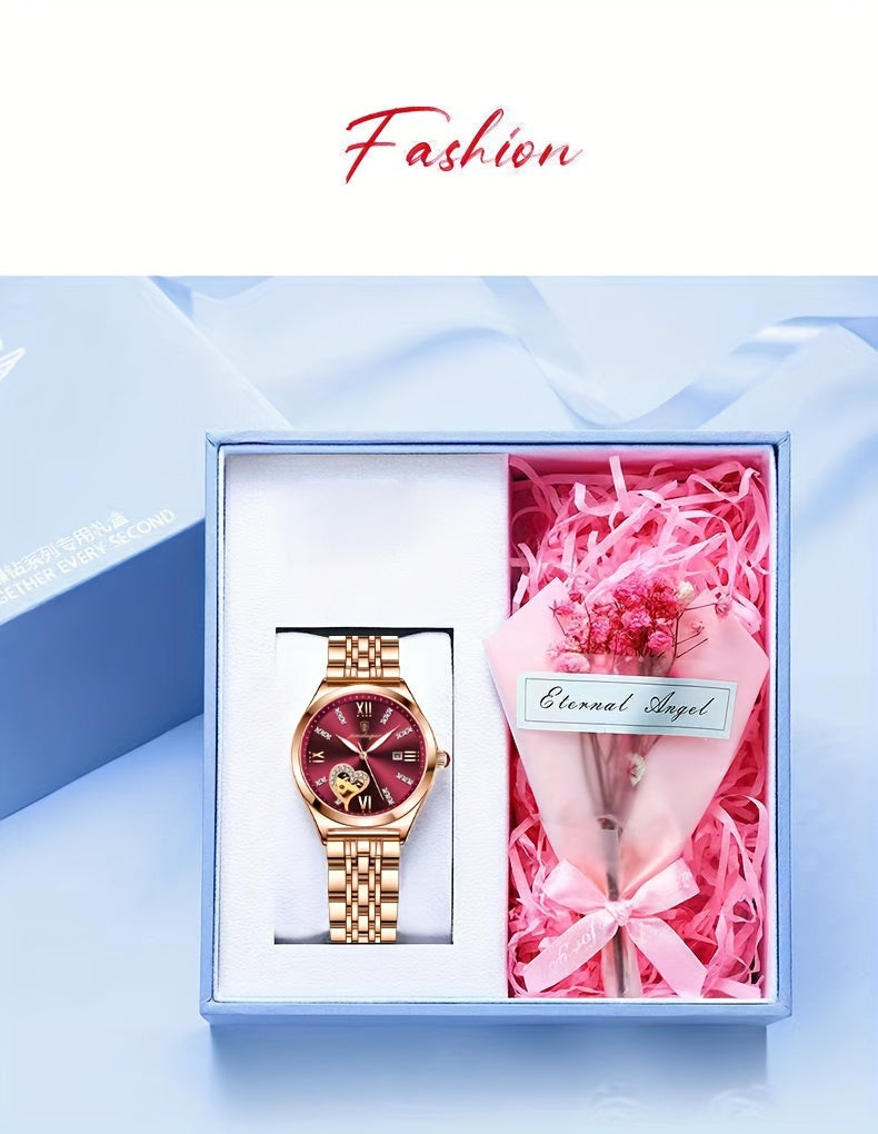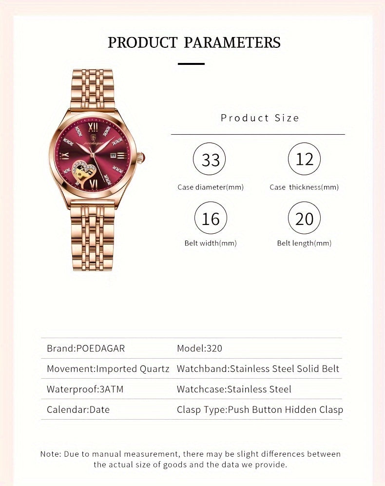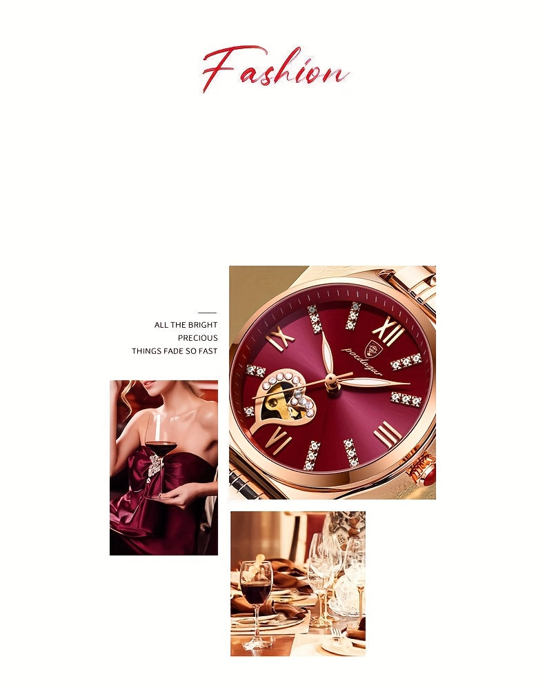 POEDAGAR Elegant Women's Quartz Watch - Rose Golden-Tone Stainless Steel, Luminous Hands & Calendar,, Date Display with Heart Detail
