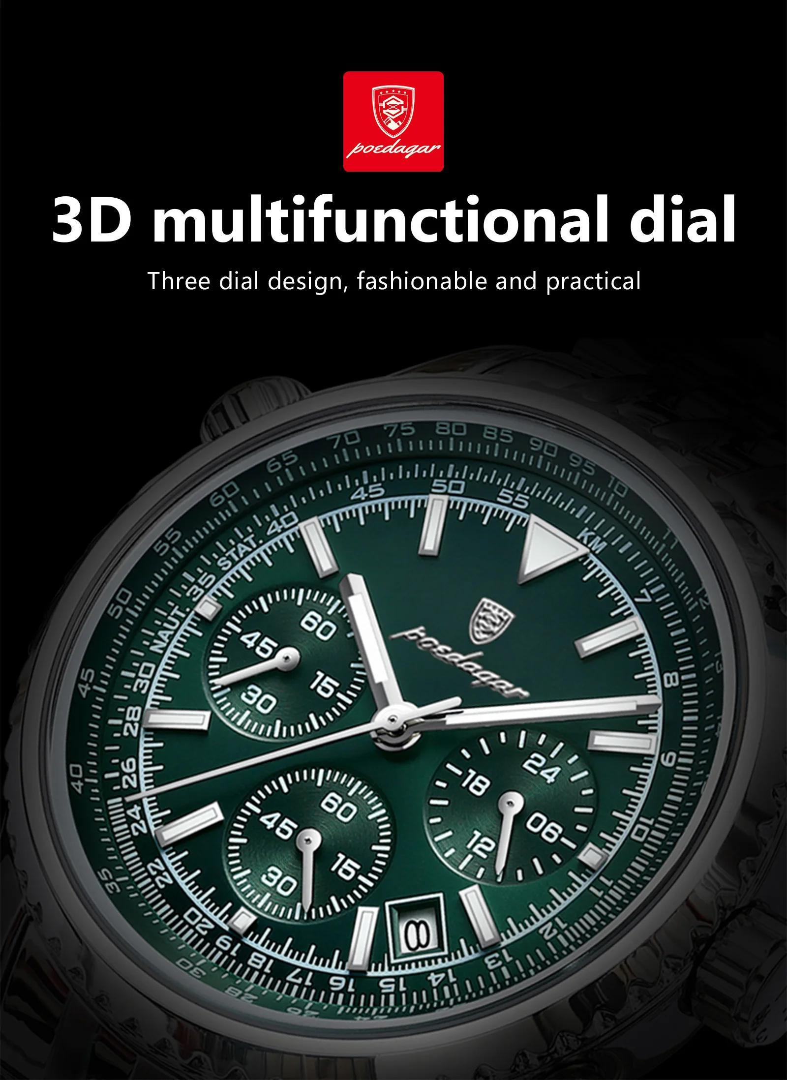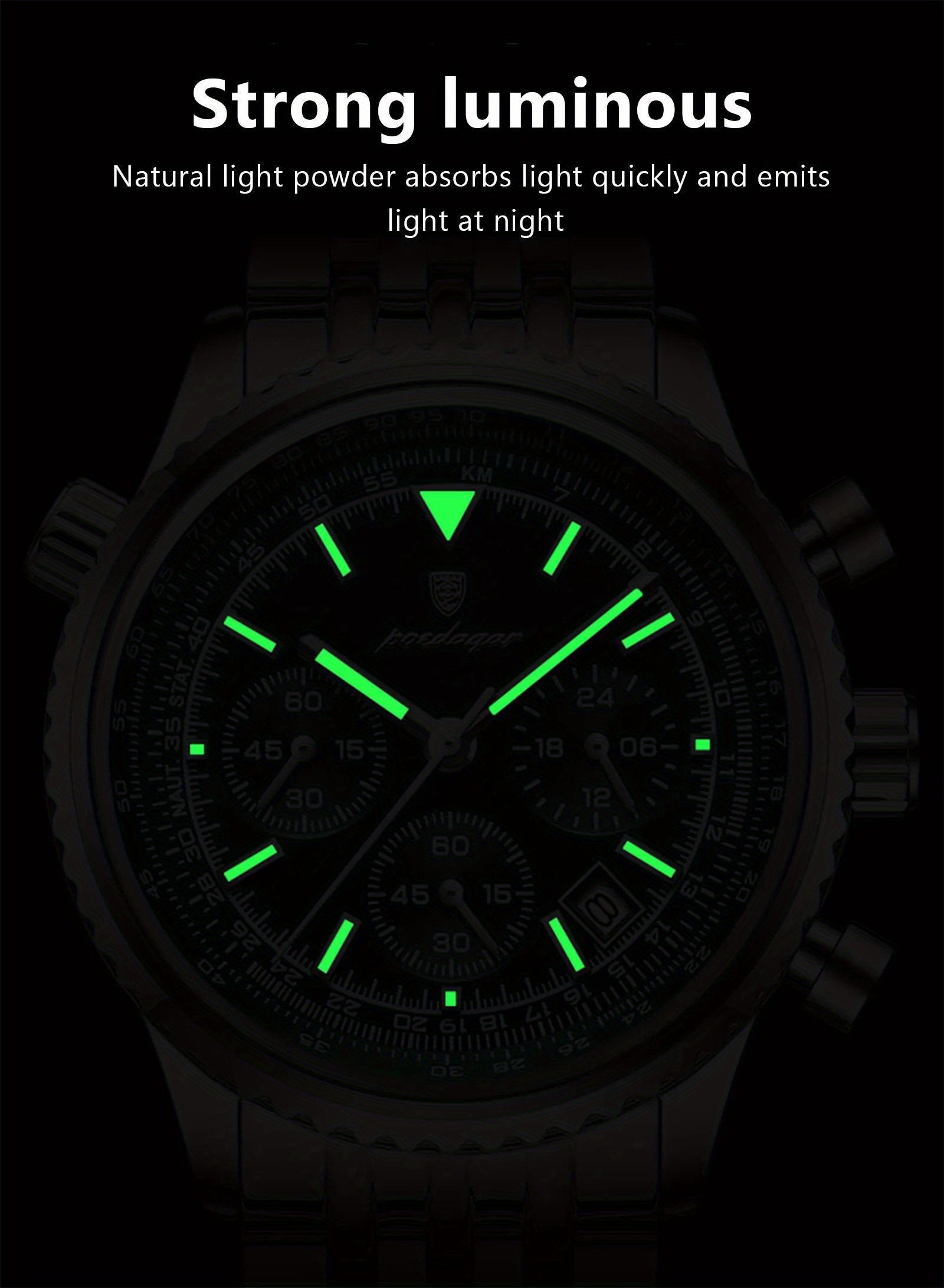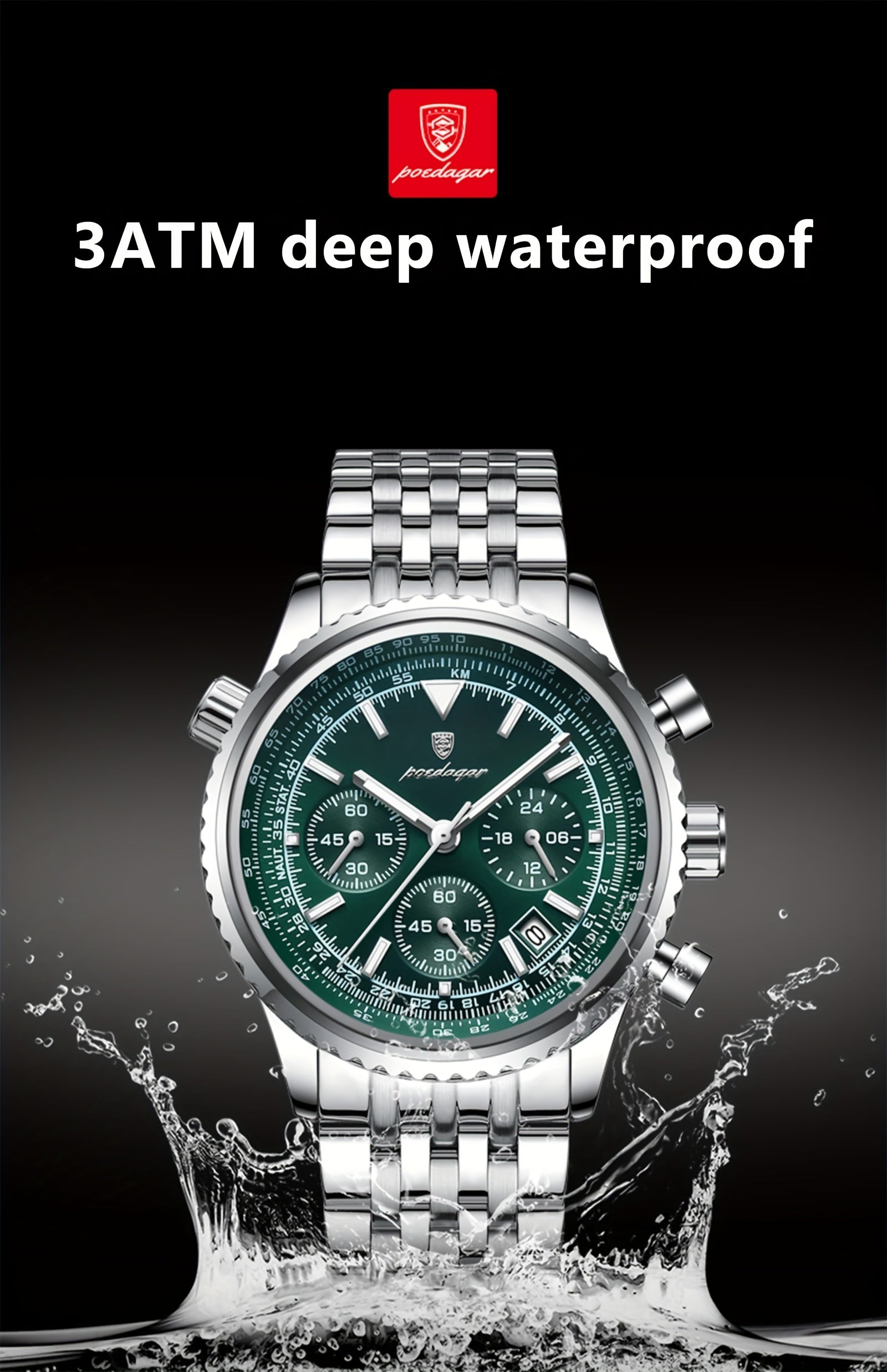 POEDAGAR Luxury Men's Quartz Watch -, Luminous Chronograph with Date Function, Stainless Steel Band & Zinc Alloy Case