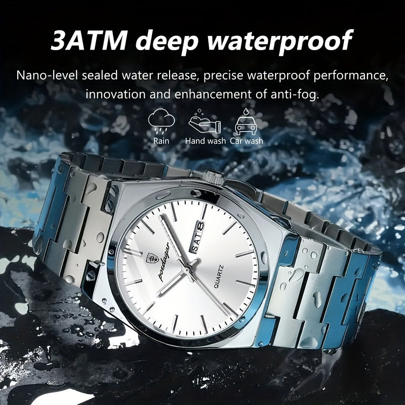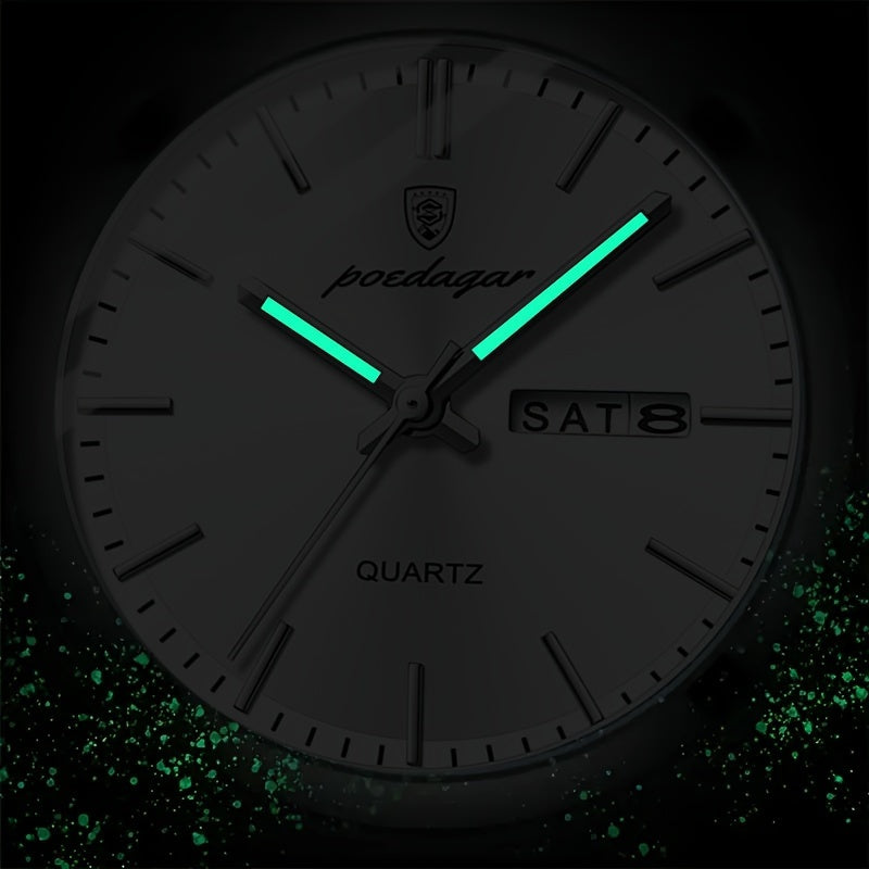 POEDAGAR Men&Women&Apos;S Casual Business Date Night-Glow Quartz Watch, Stainless Steel Band, Alloy Case, Non-Wireless, Non-Rechargeable Battery, Party Style Wristwatch
